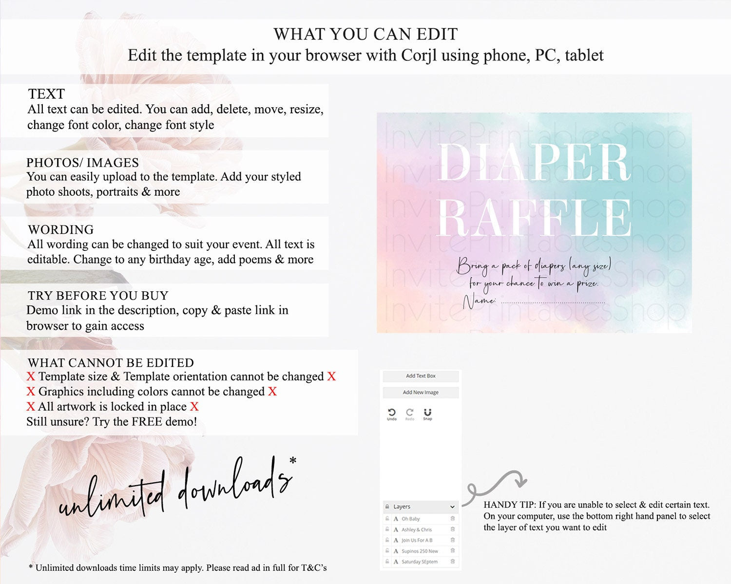 • After purchase, Corjl emails your editing link. Allow up to 15 minutes for delivery.