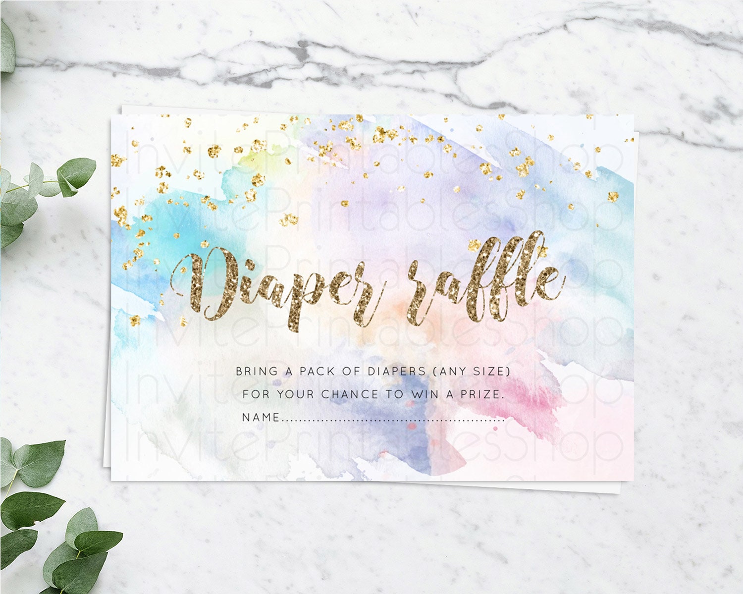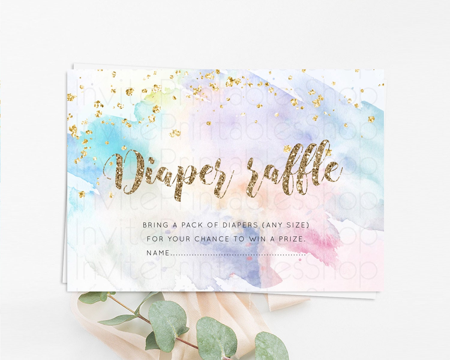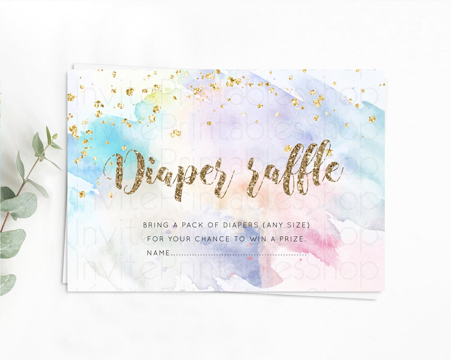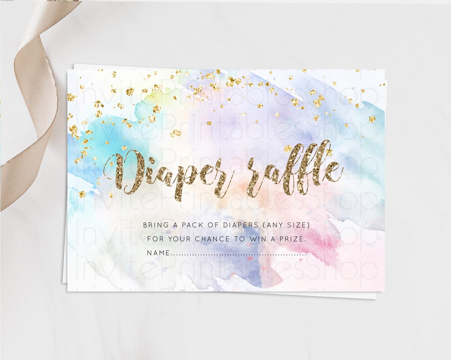 Pastel Diaper Raffle Card Pastel Rainbow Diaper Raffle Insert Colorful Ombre Watercolor Diaper Ticket Confetti Glitter Raffle Game D10421
