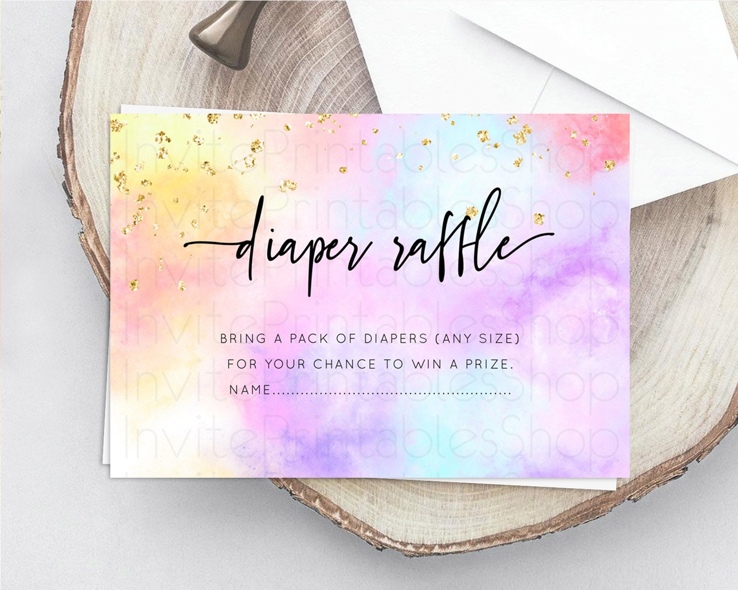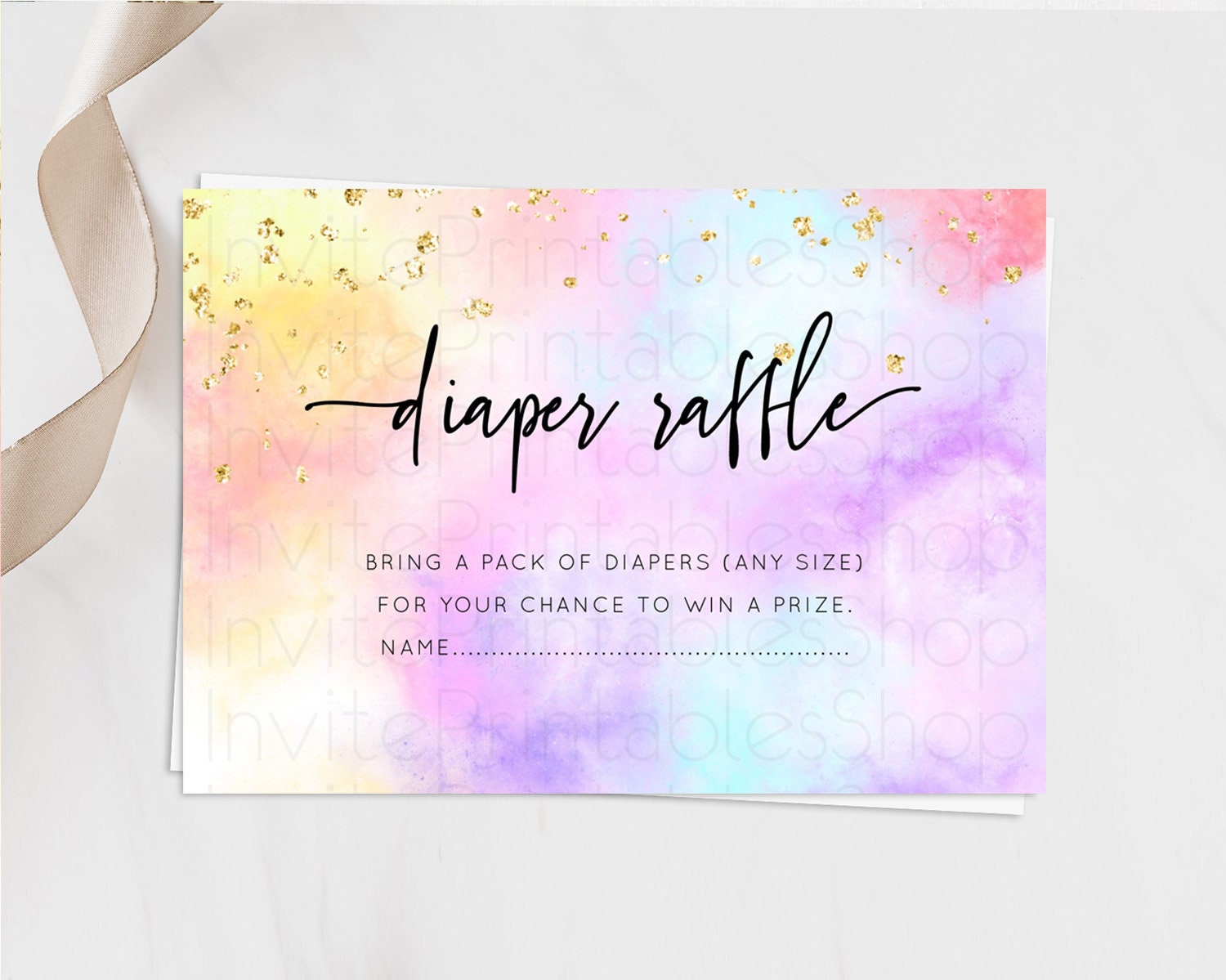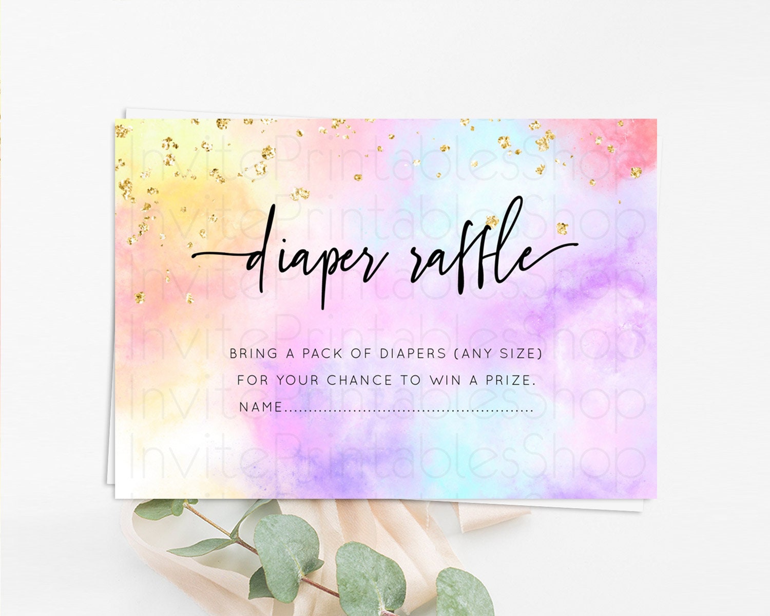 Pastel Diaper Raffle Card Pastel Rainbow Diaper Raffle Insert Colorful Ombre Watercolor Diaper Ticket Confetti Glitter Raffle Game D10437