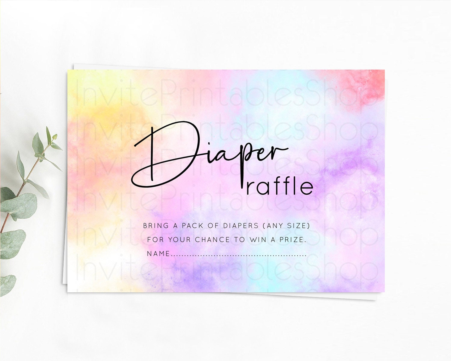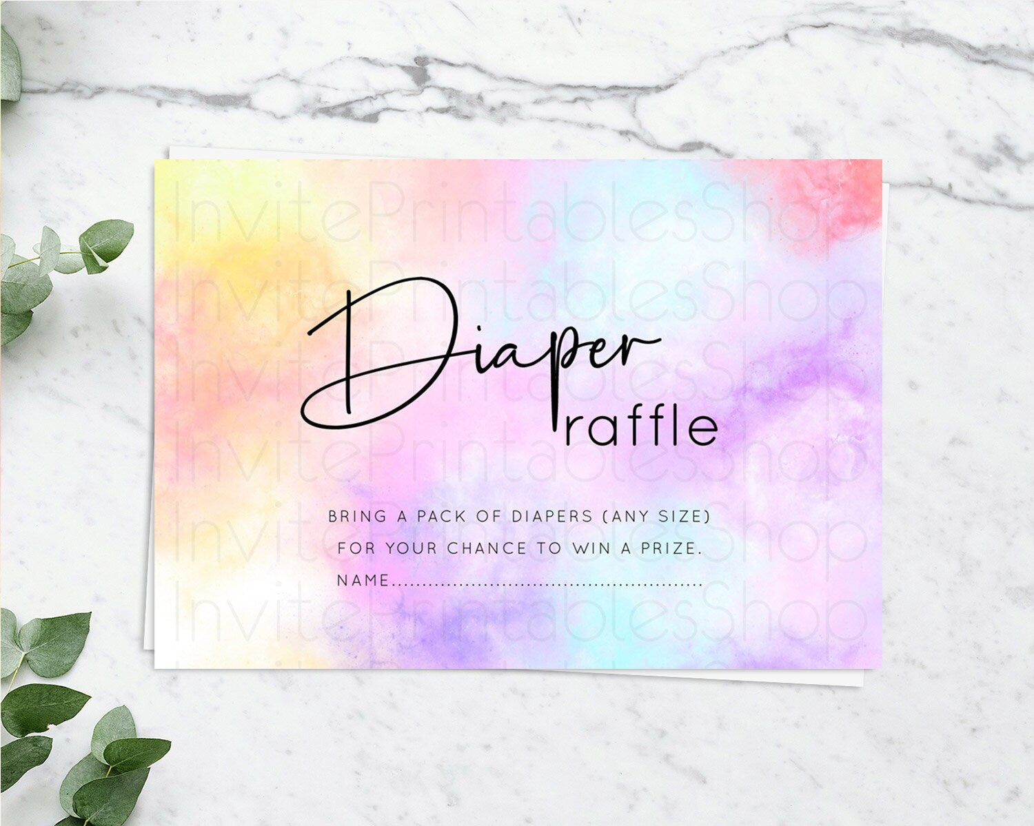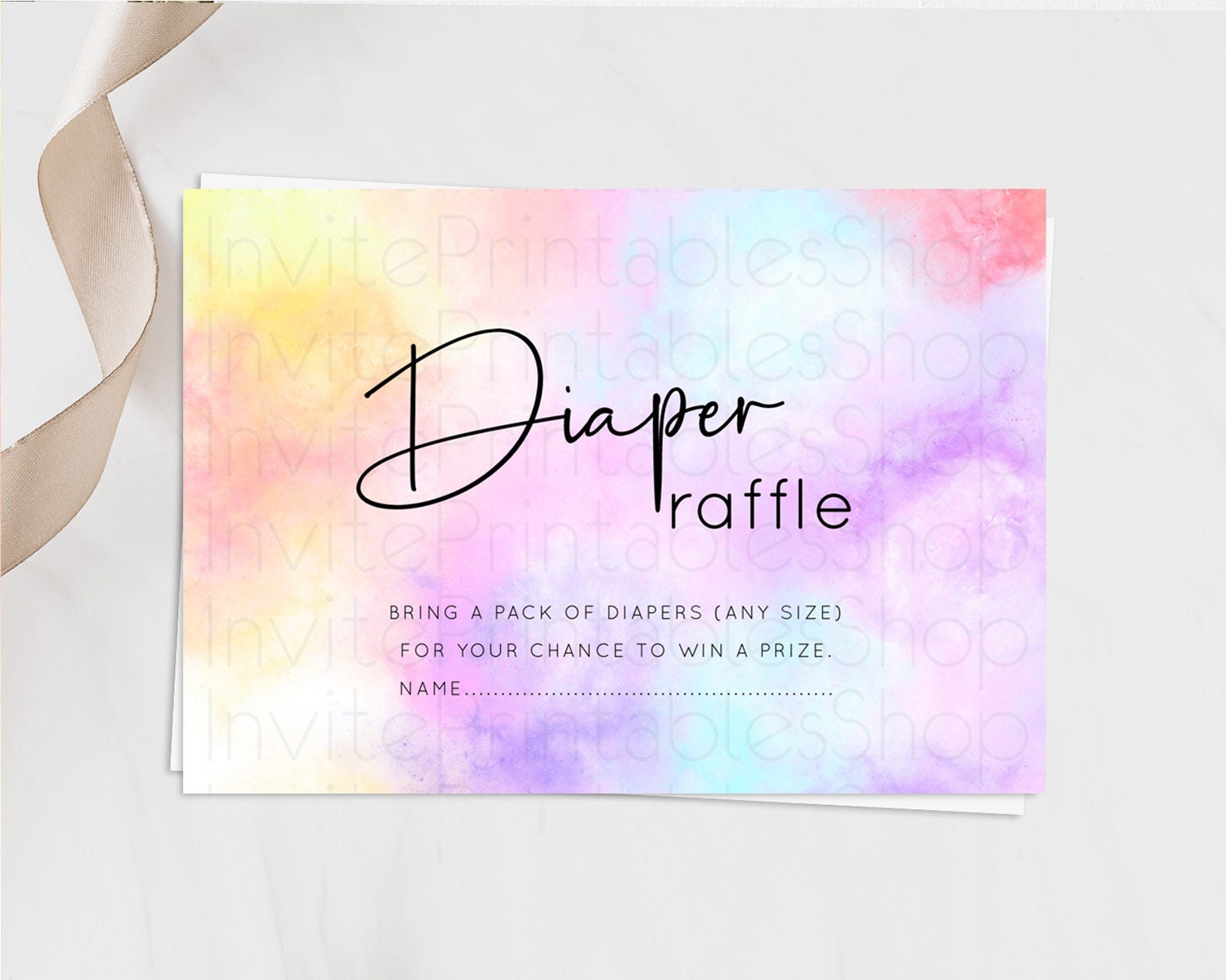 Pastel Diaper Raffle Card Pastel Rainbow Diaper Raffle Insert Colorful Ombre Watercolor Diaper Ticket Confetti Glitter Raffle Game D10438