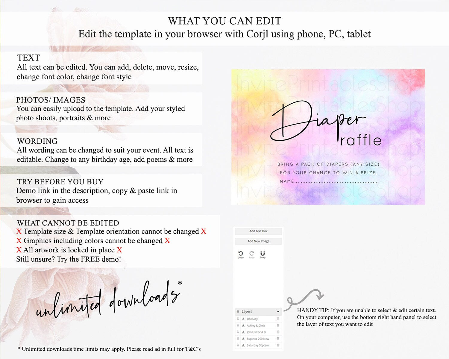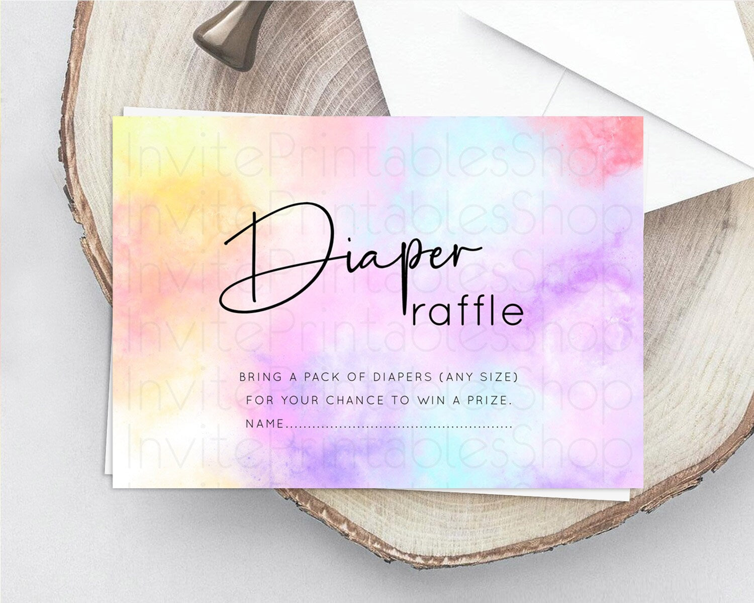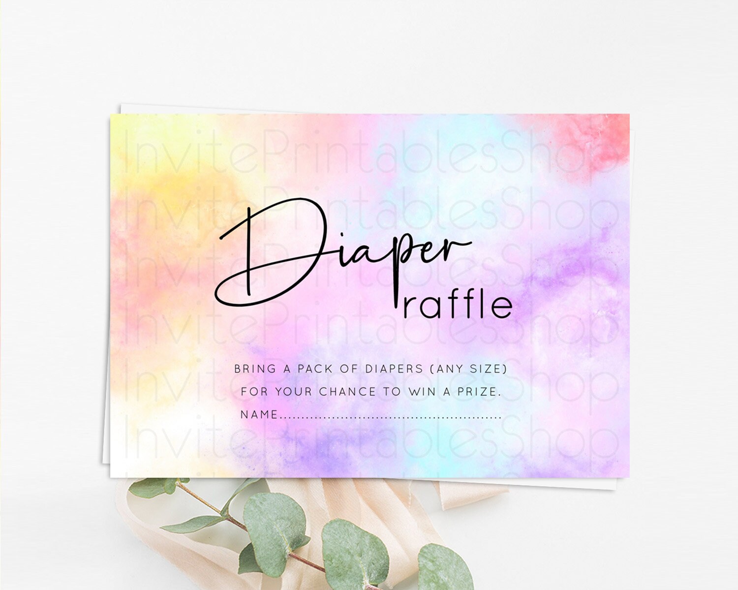 Pastel Diaper Raffle Card Pastel Rainbow Diaper Raffle Insert Colorful Ombre Watercolor Diaper Ticket Confetti Glitter Raffle Game D10438