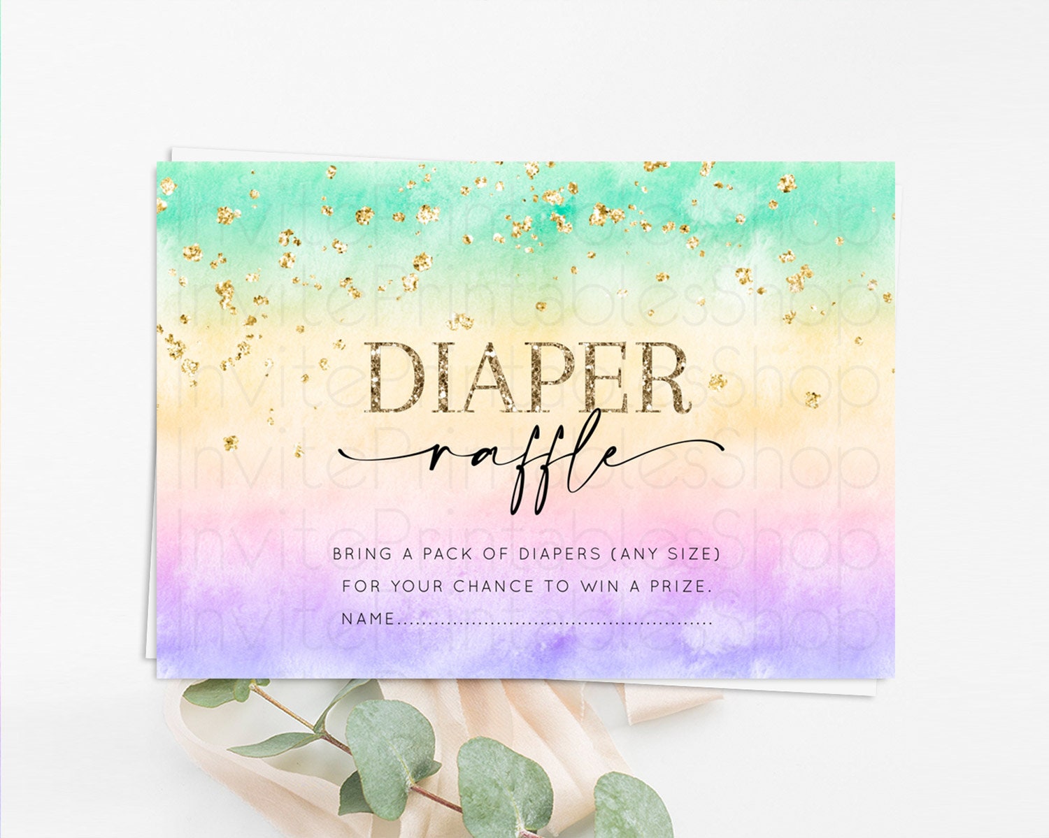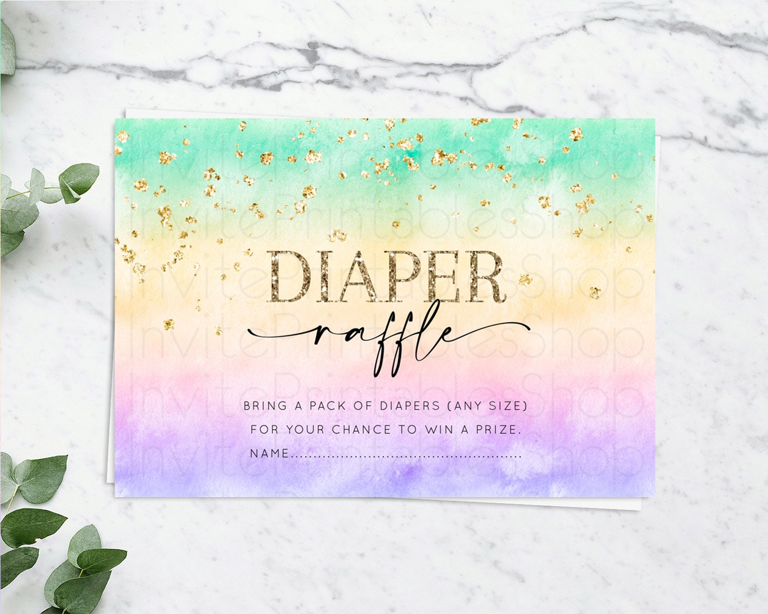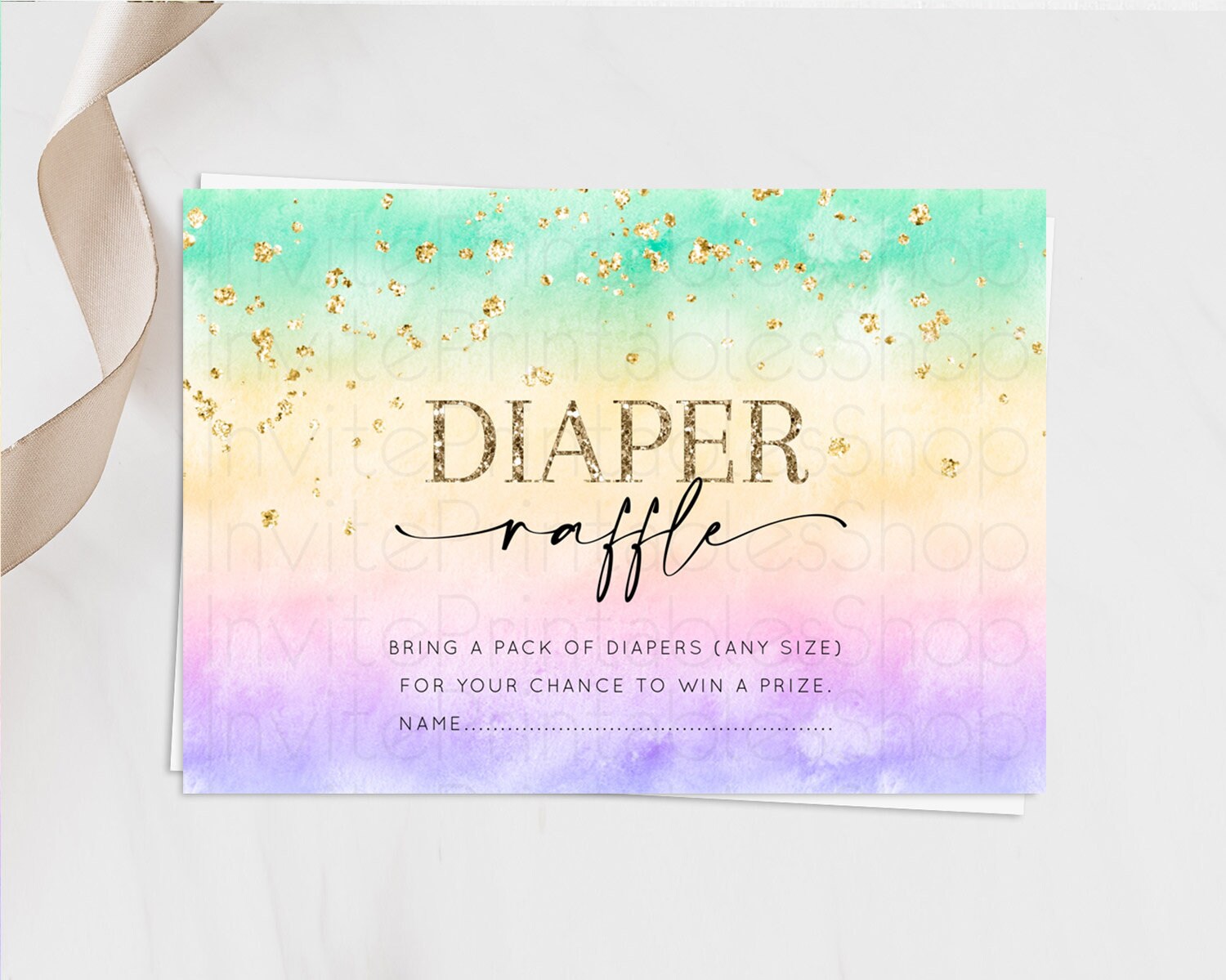 Pastel Diaper Raffle Card Pastel Rainbow Diaper Raffle Insert Colorful Ombre Watercolor Diaper Ticket Confetti Glitter Raffle Game D10481
