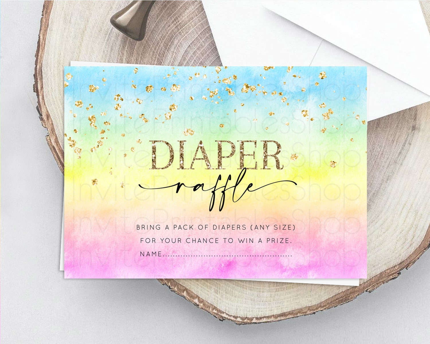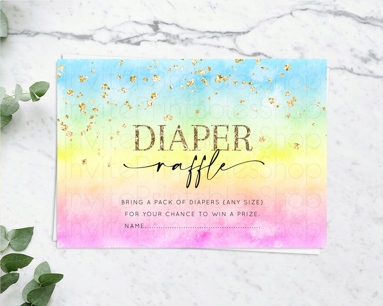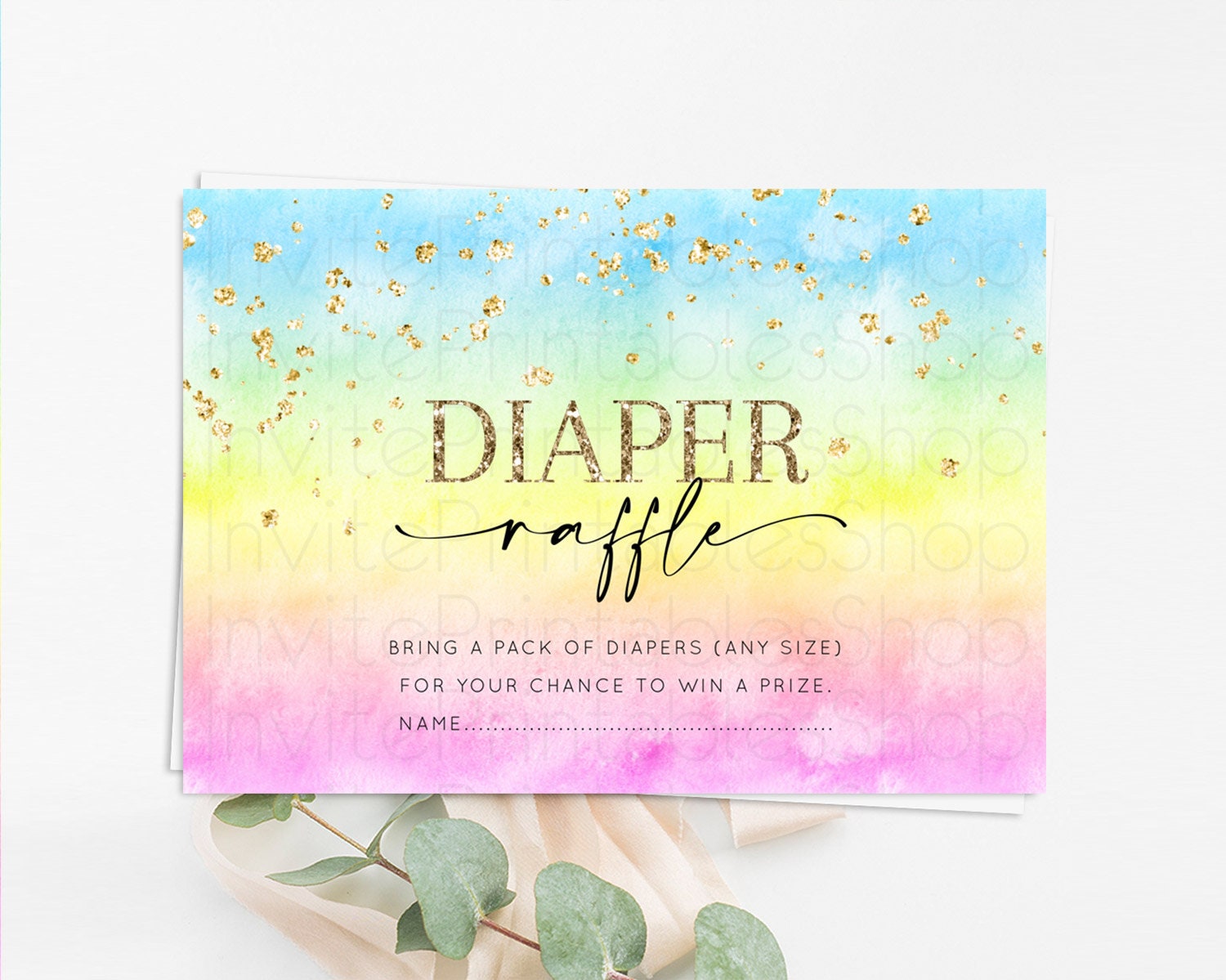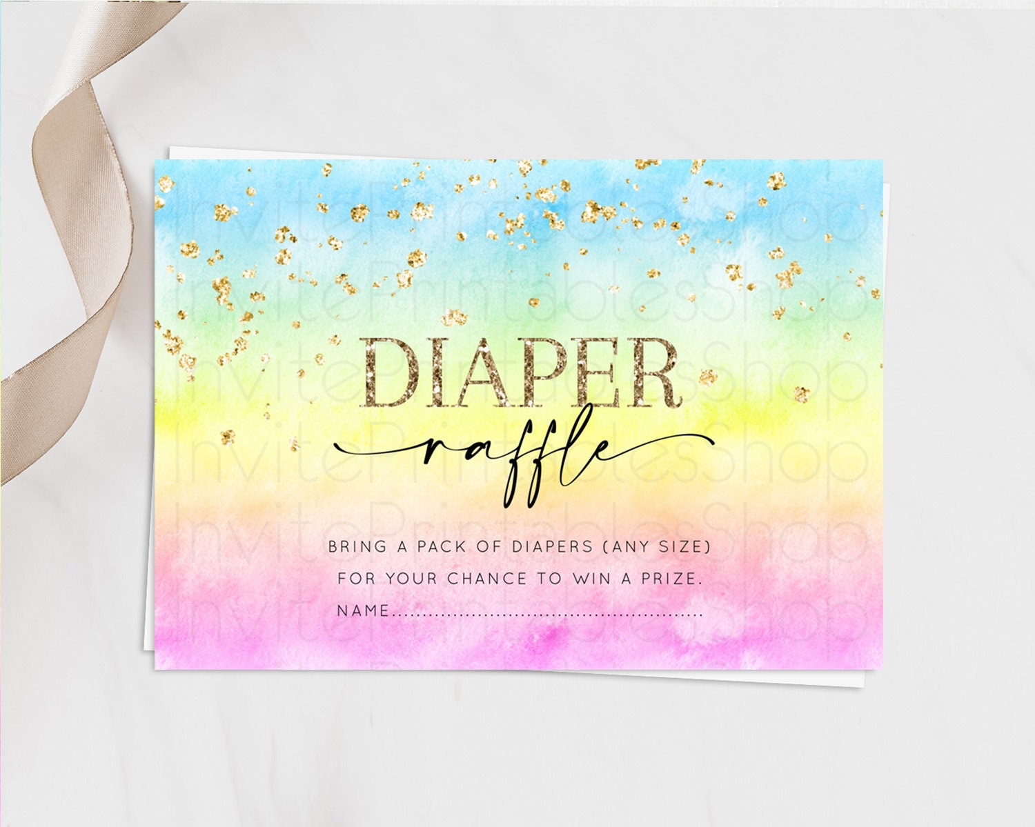 Pastel Diaper Raffle Card Pastel Rainbow Diaper Raffle Insert Colorful Ombre Watercolor Diaper Ticket Confetti Glitter Raffle Game D10483