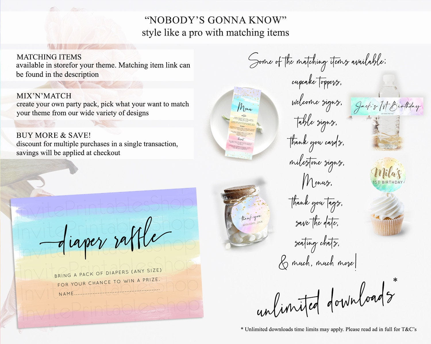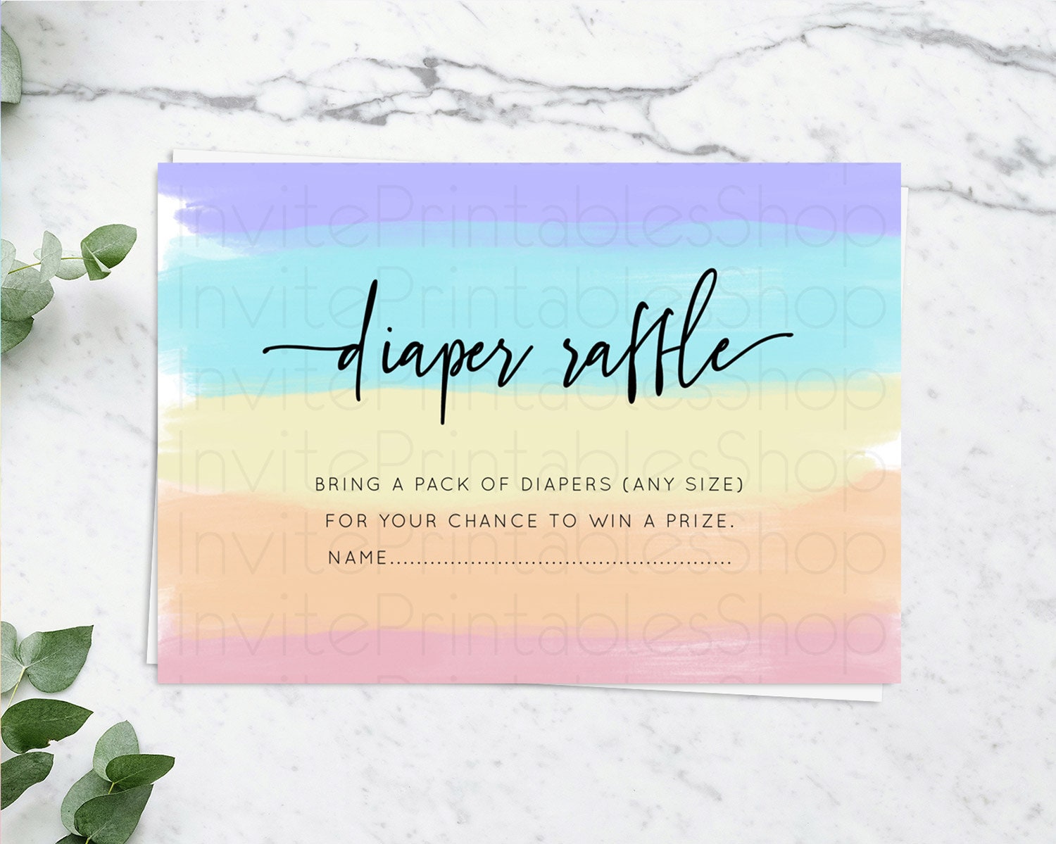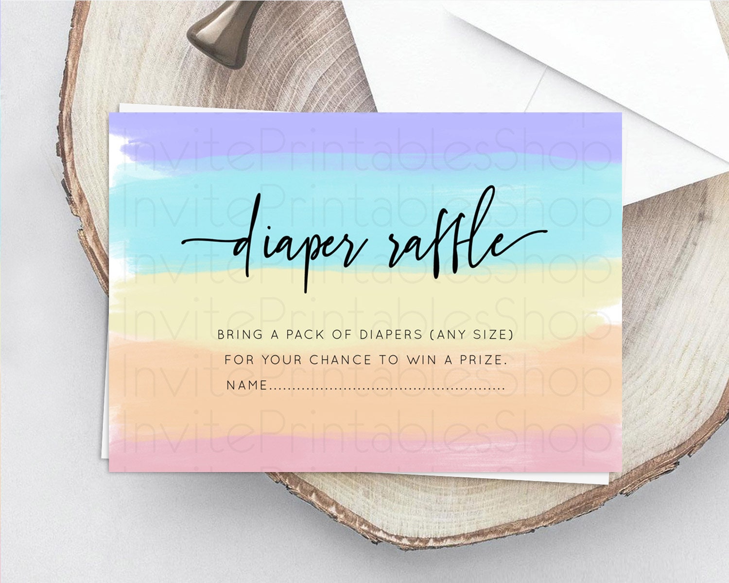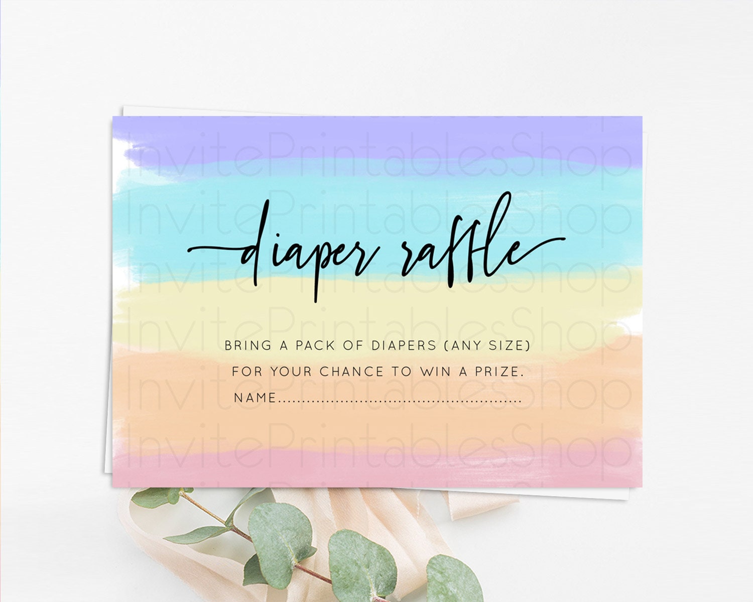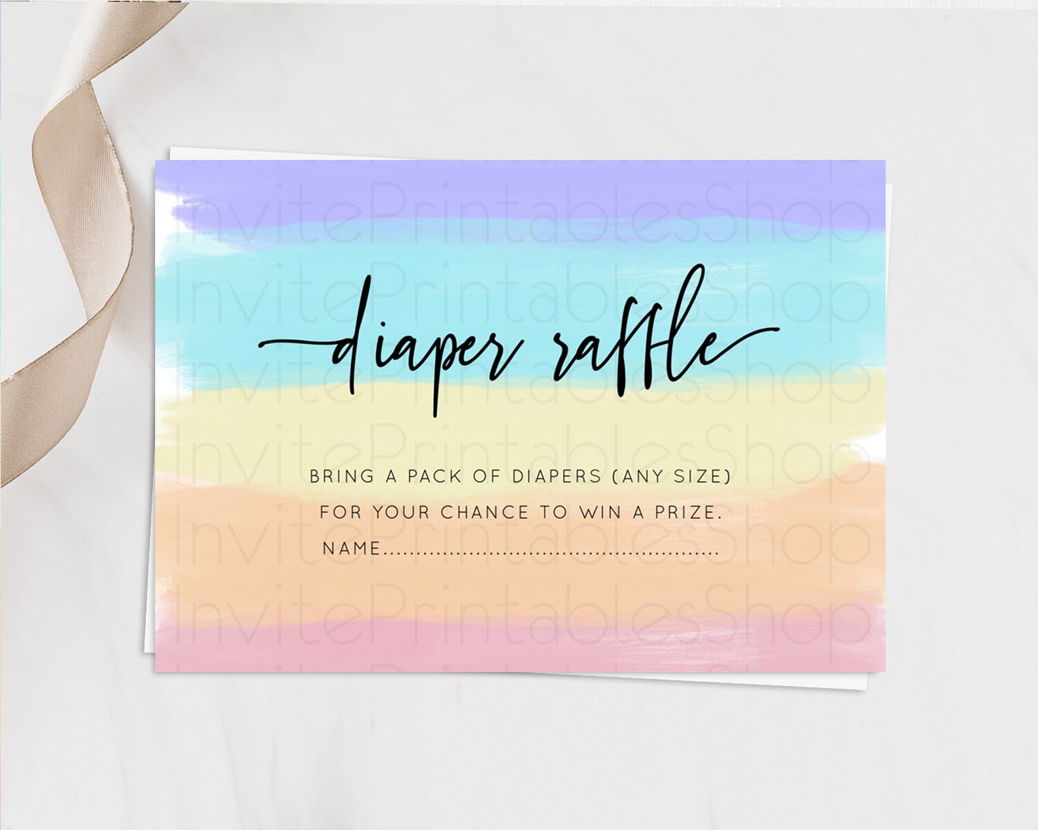 Pastel Diaper Raffle Card Pastel Rainbow Diaper Raffle Insert Colorful Ombre Watercolor Diaper Ticket Confetti Glitter Raffle Game D10510