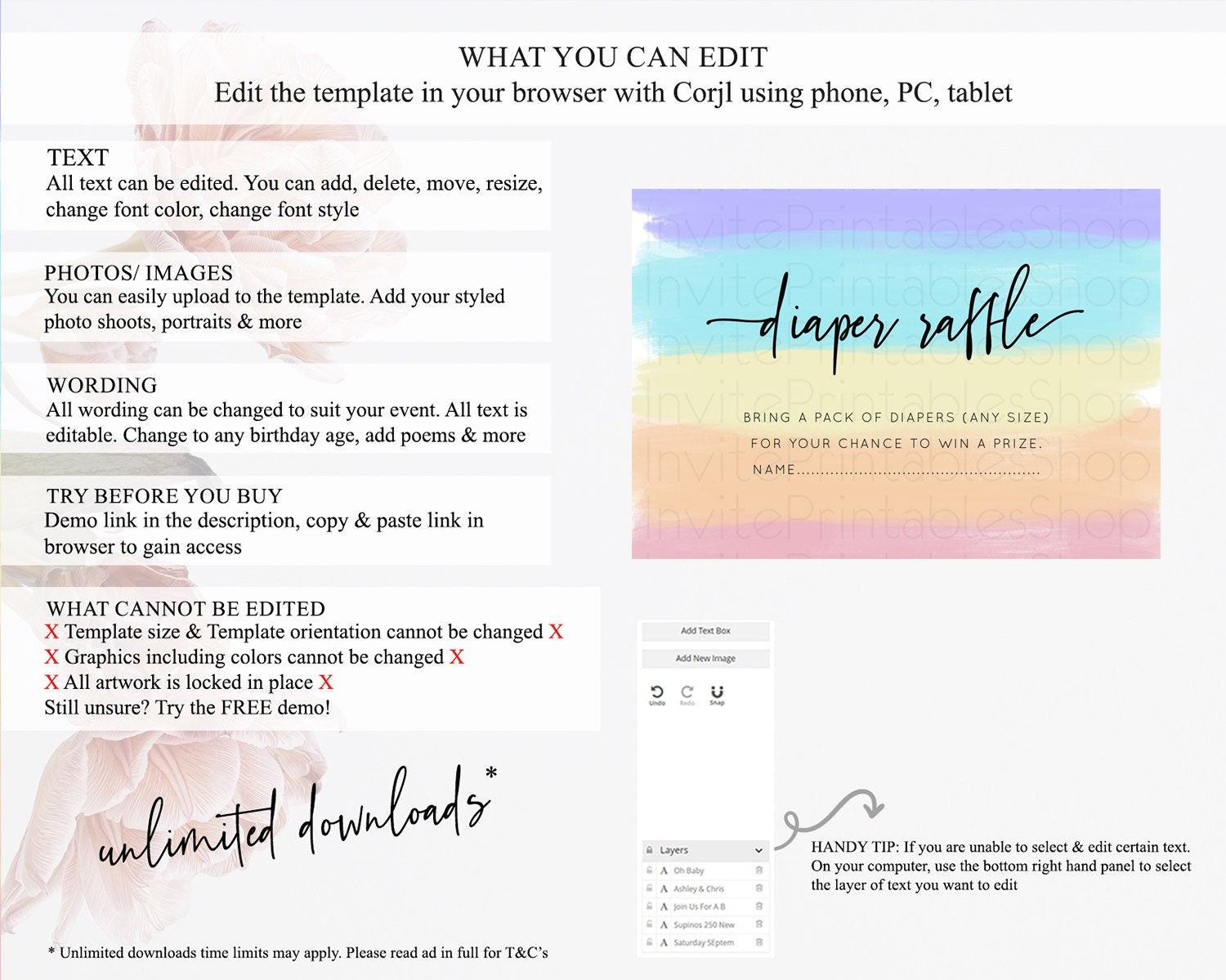 • After purchase, Corjl emails your editing link. Allow up to 15 minutes for delivery.