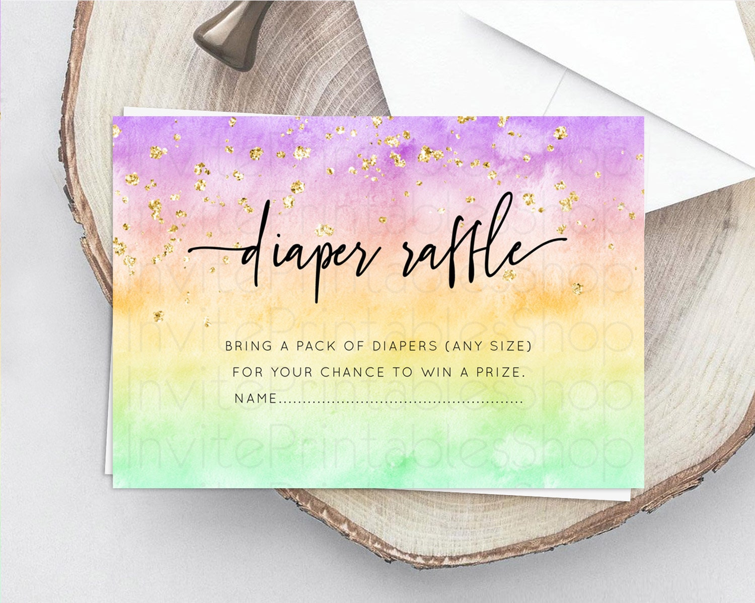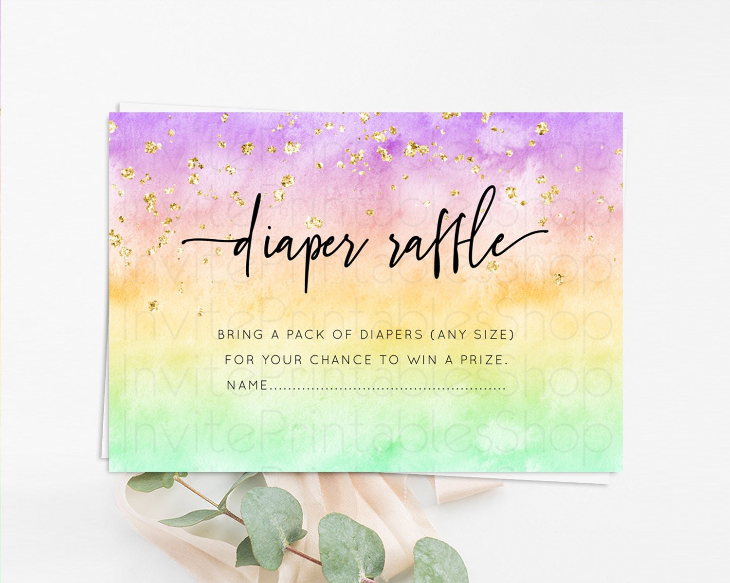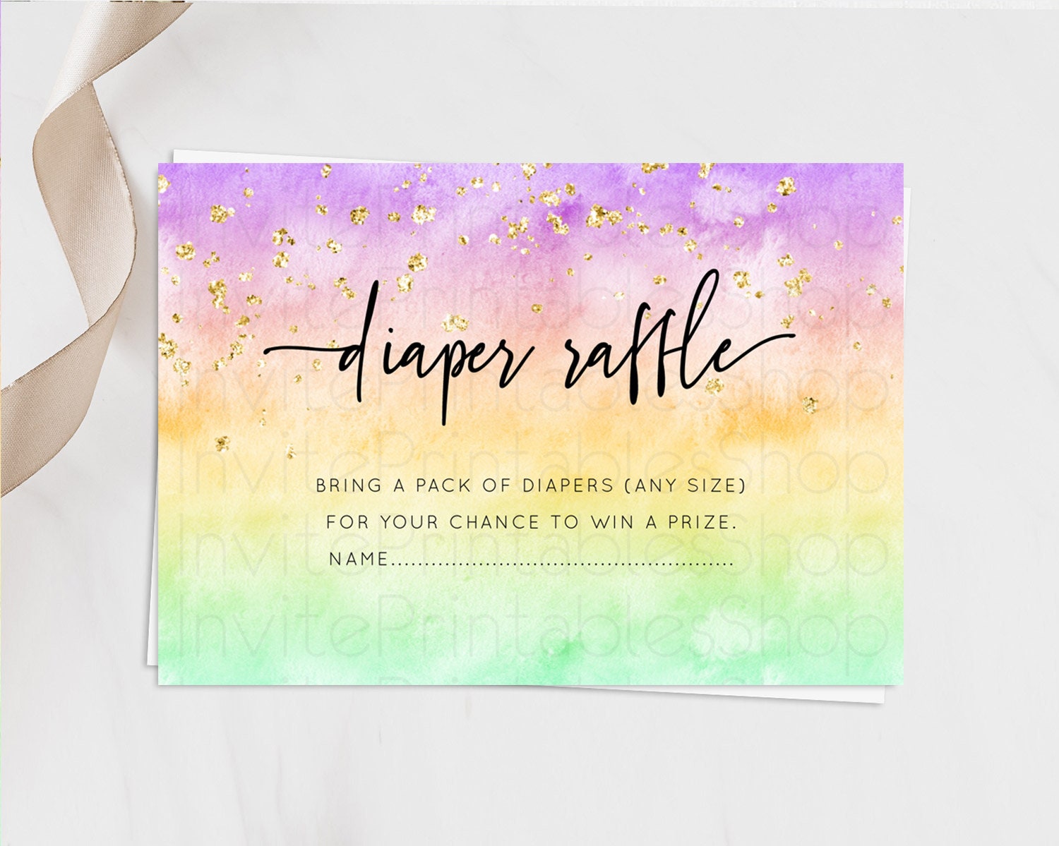 Pastel Diaper Raffle Card Pastel Rainbow Diaper Raffle Insert Colorful Ombre Watercolor Diaper Ticket Confetti Glitter Raffle Game D10514