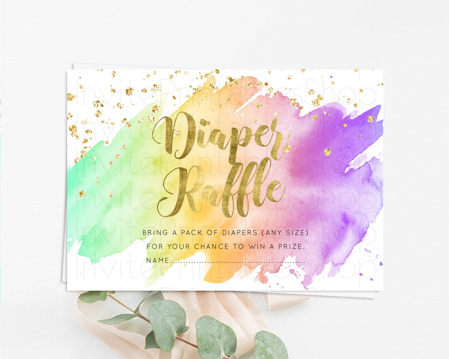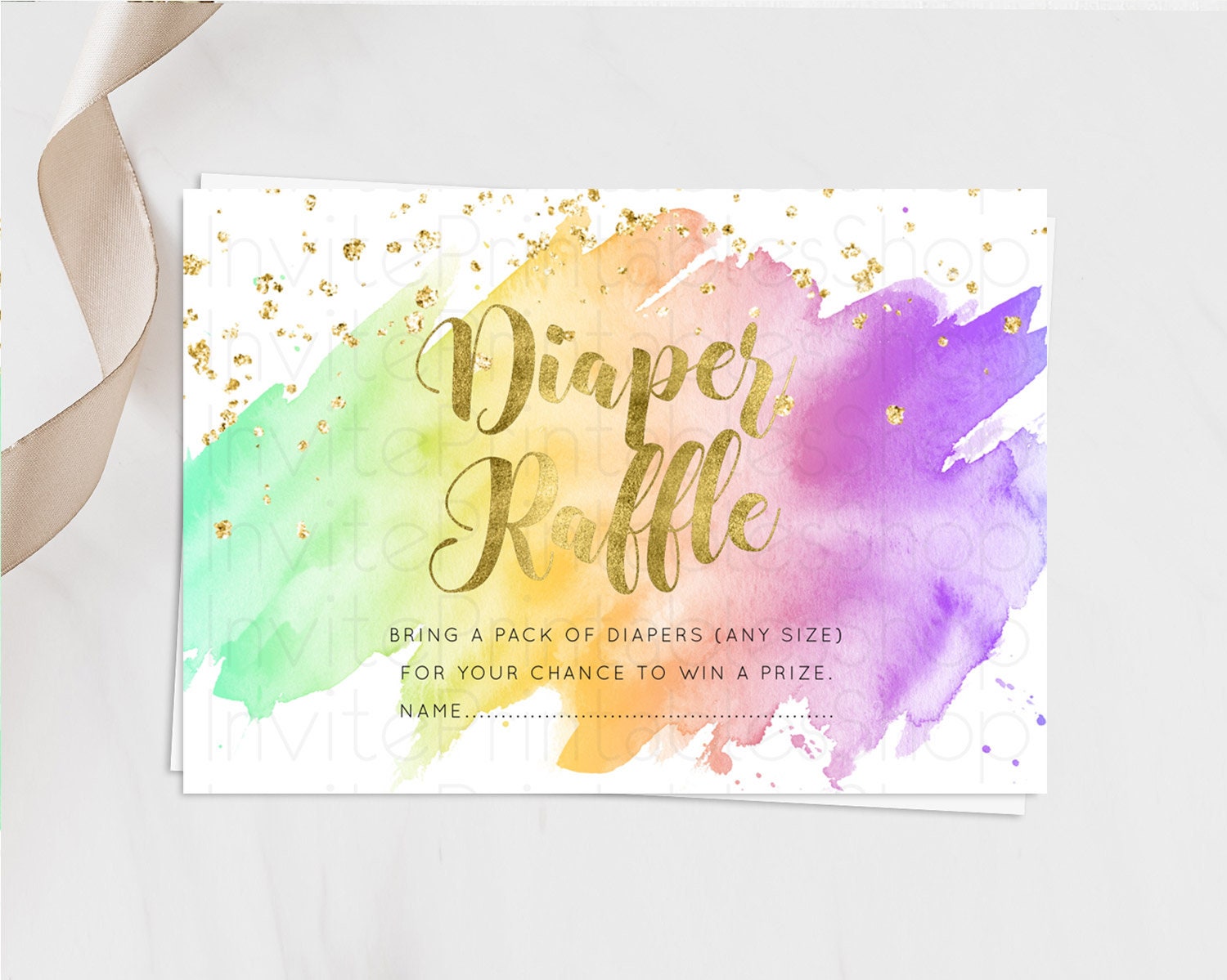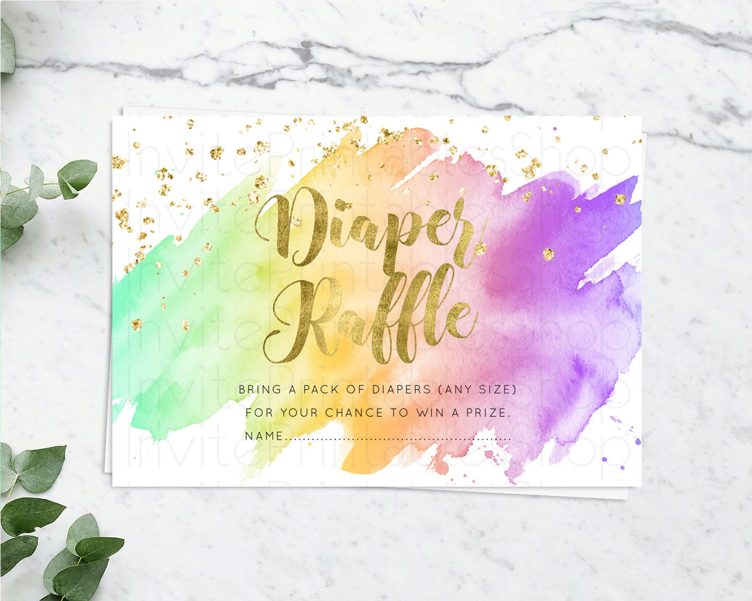 Pastel Diaper Raffle Card Pastel Rainbow Diaper Raffle Insert Colorful Ombre Watercolor Diaper Ticket Confetti Glitter Raffle Game D10517