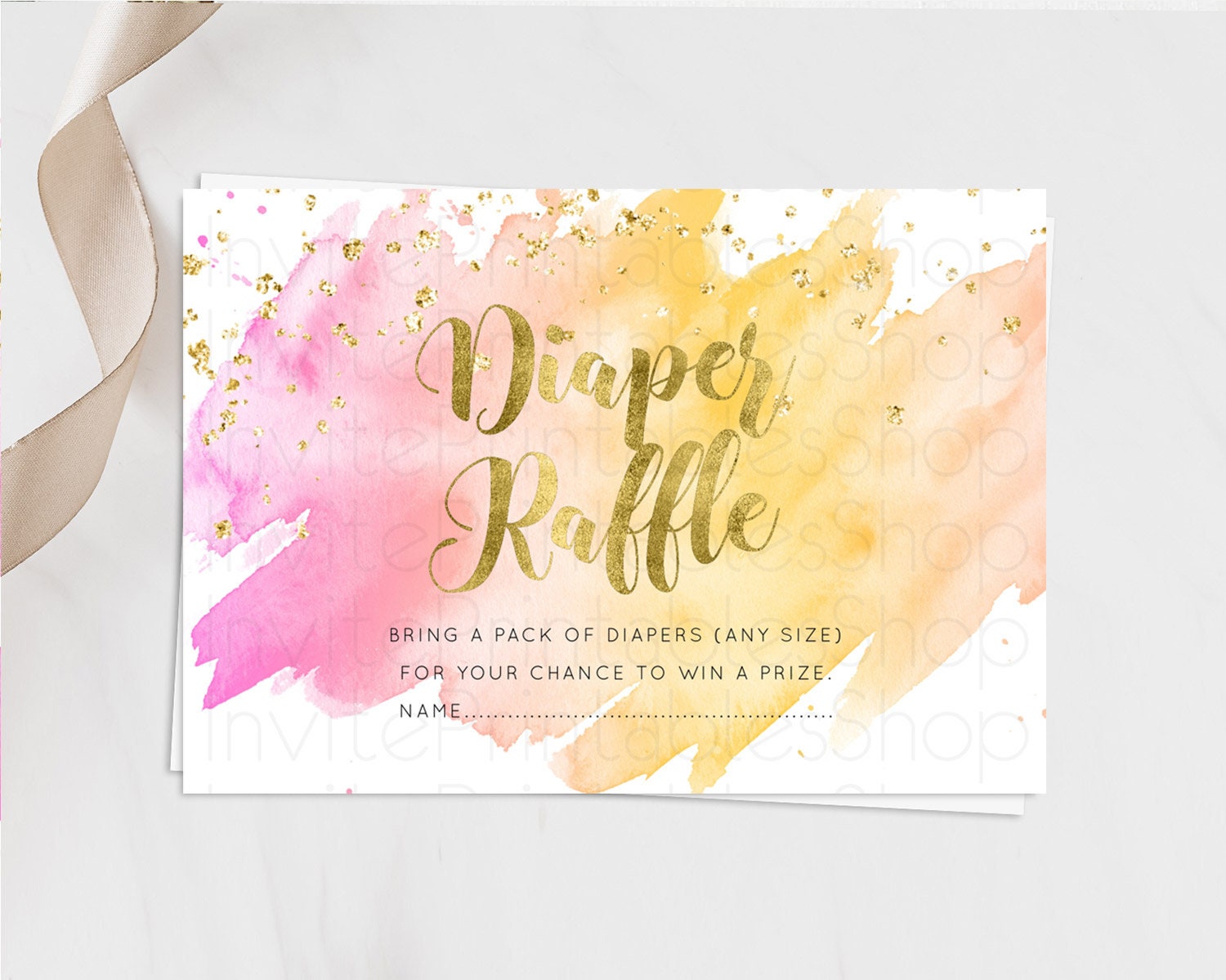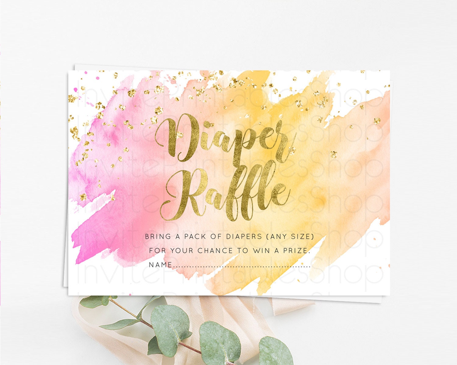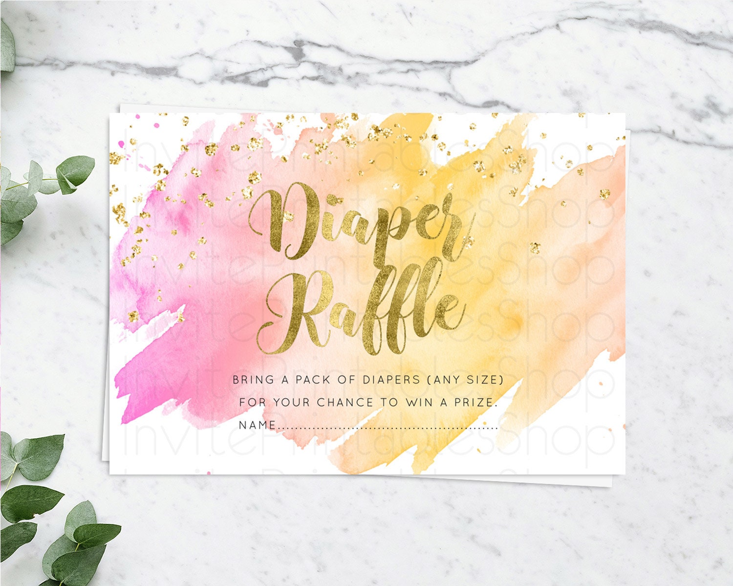 Pastel Diaper Raffle Card Pastel Rainbow Diaper Raffle Insert Colorful Ombre Watercolor Diaper Ticket Confetti Glitter Raffle Game D10526