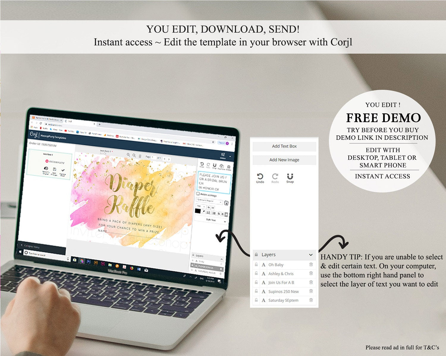 • After purchase, Corjl emails your editing link. Allow up to 15 minutes for delivery.