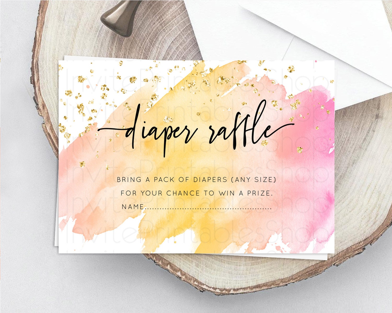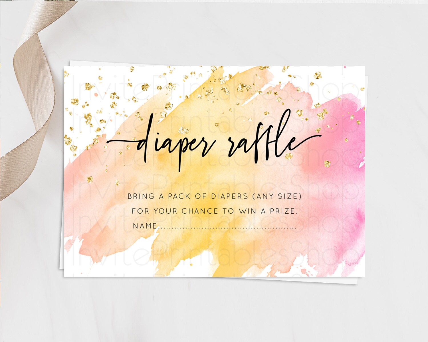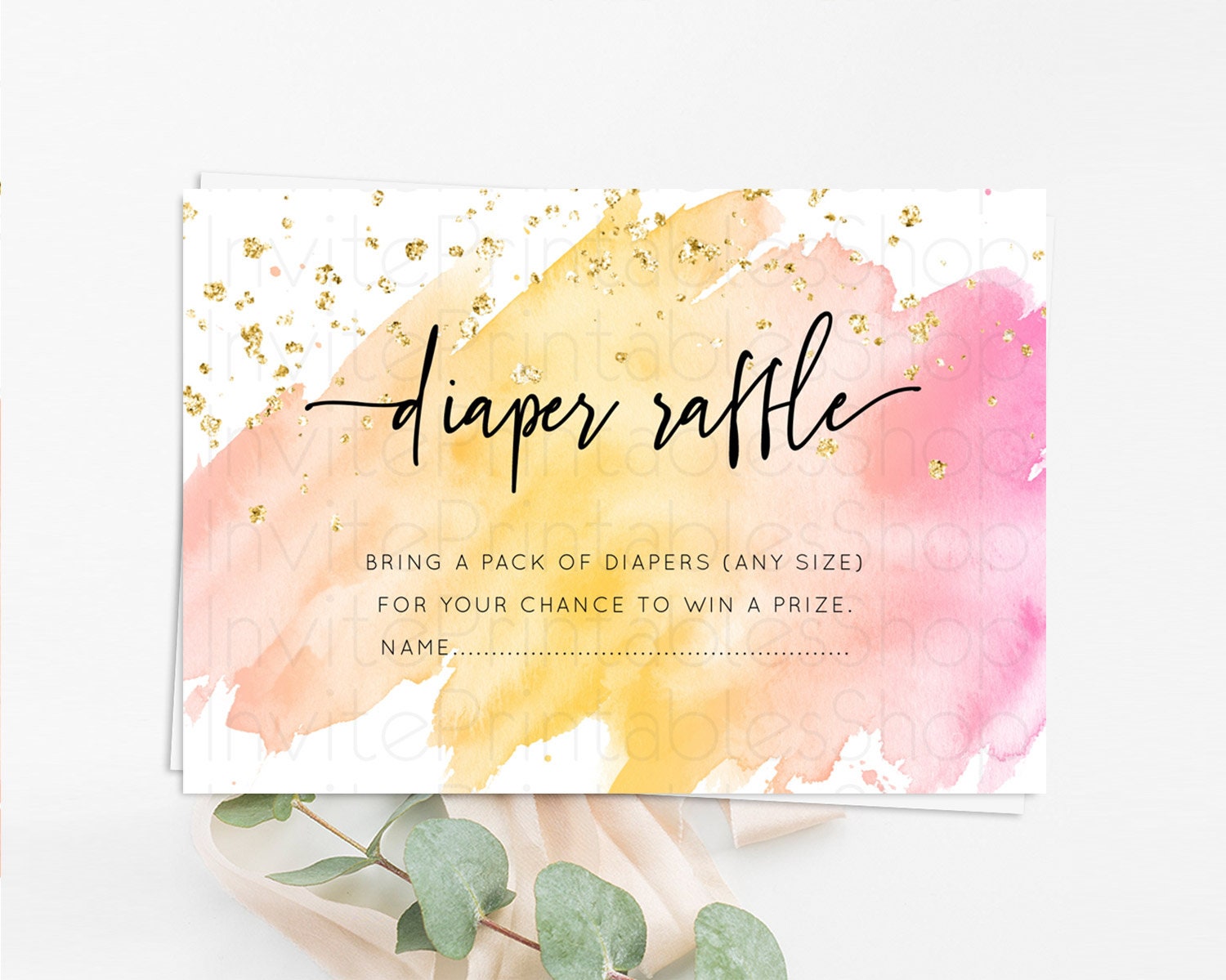 Pastel Diaper Raffle Card Pastel Rainbow Diaper Raffle Insert Colorful Ombre Watercolor Diaper Ticket Confetti Glitter Raffle Game D10527