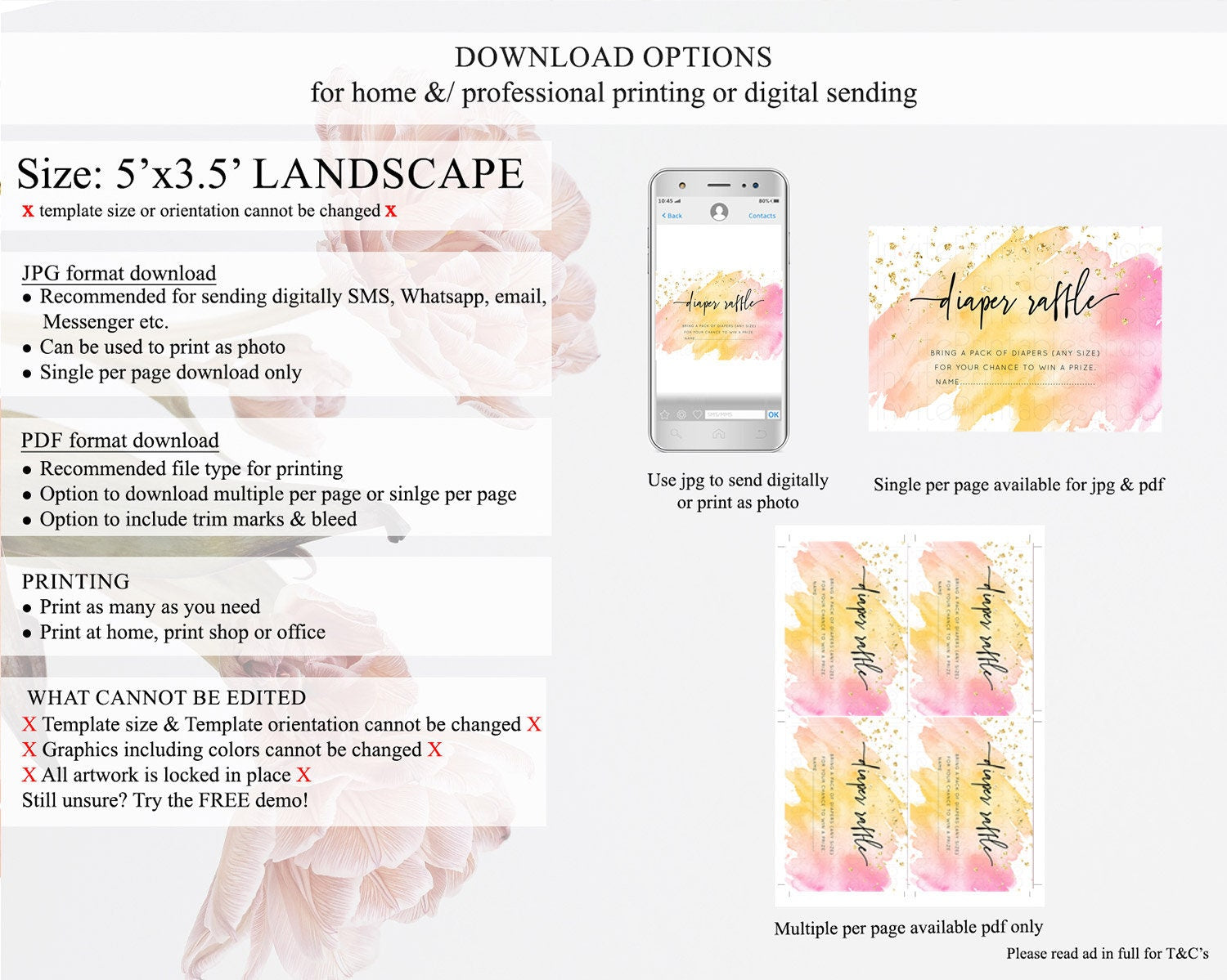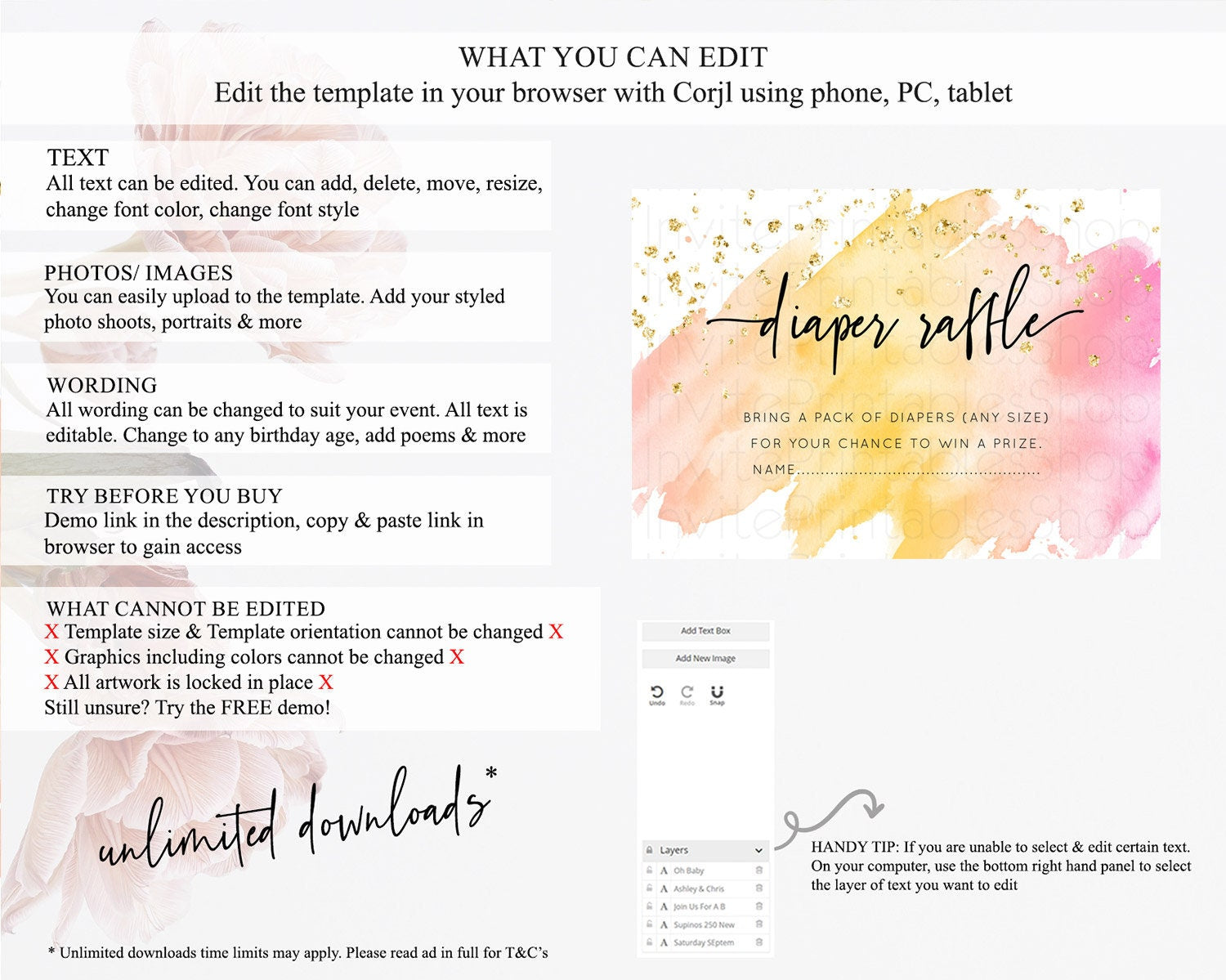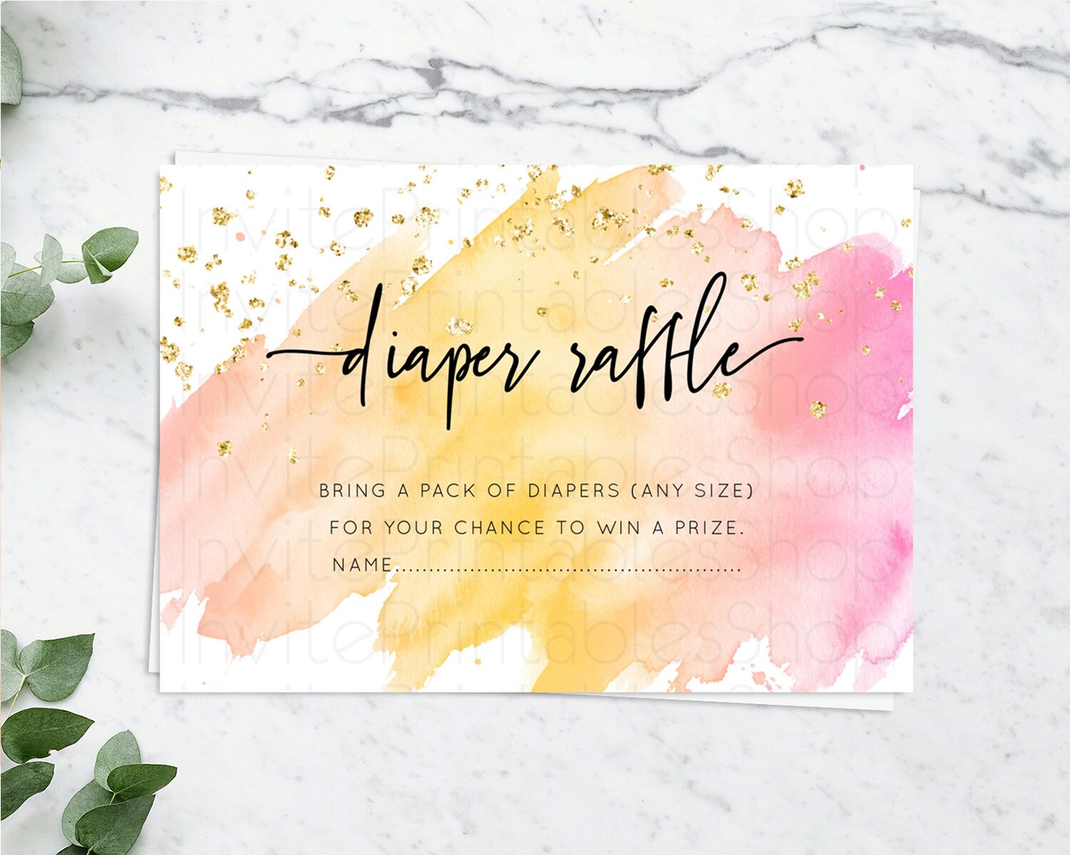 Pastel Diaper Raffle Card Pastel Rainbow Diaper Raffle Insert Colorful Ombre Watercolor Diaper Ticket Confetti Glitter Raffle Game D10527