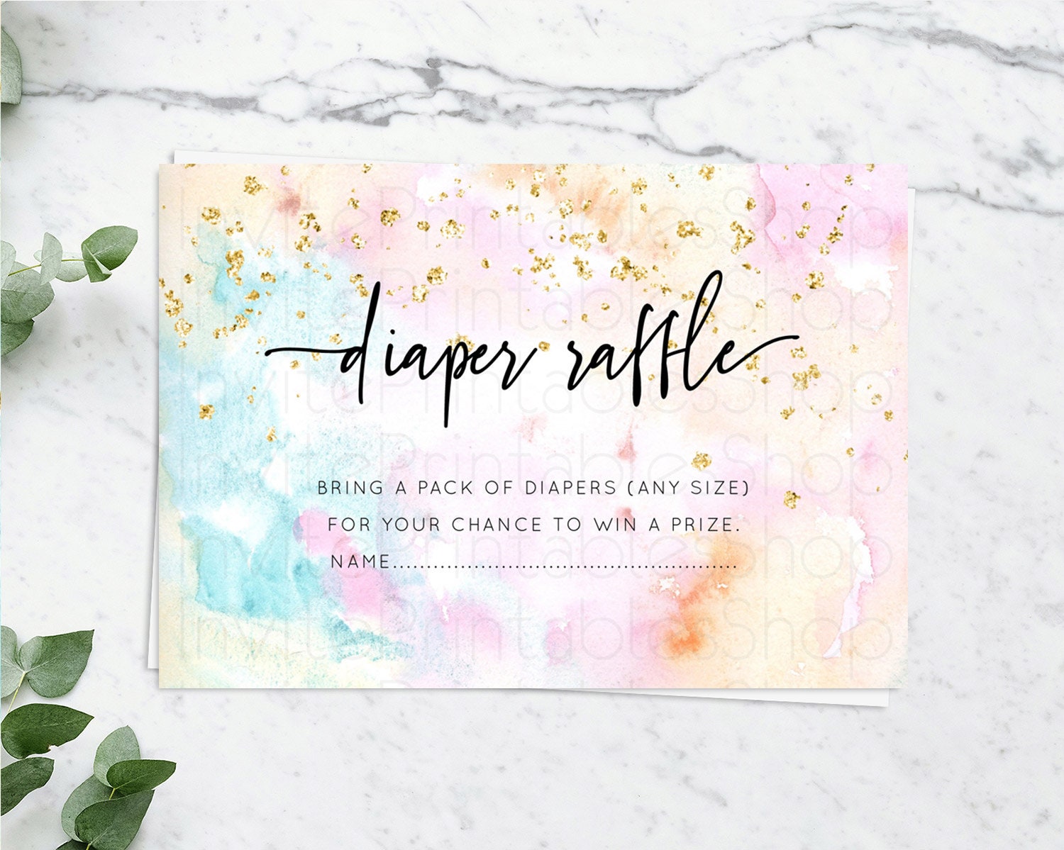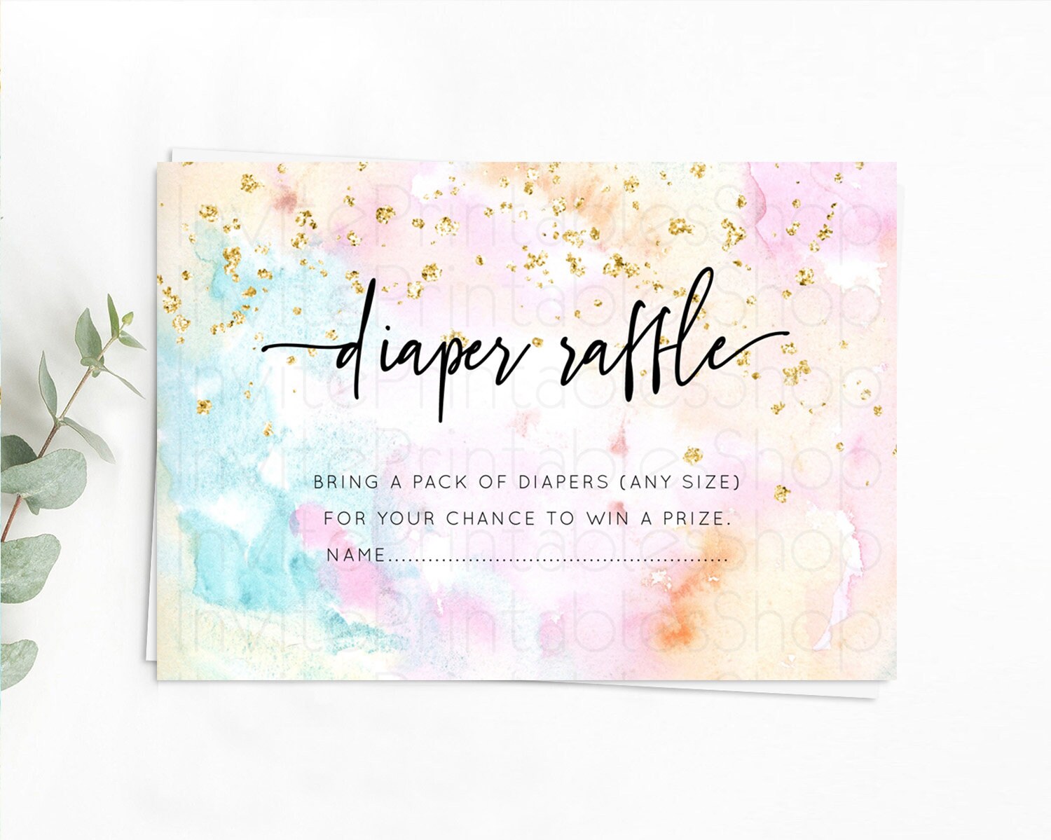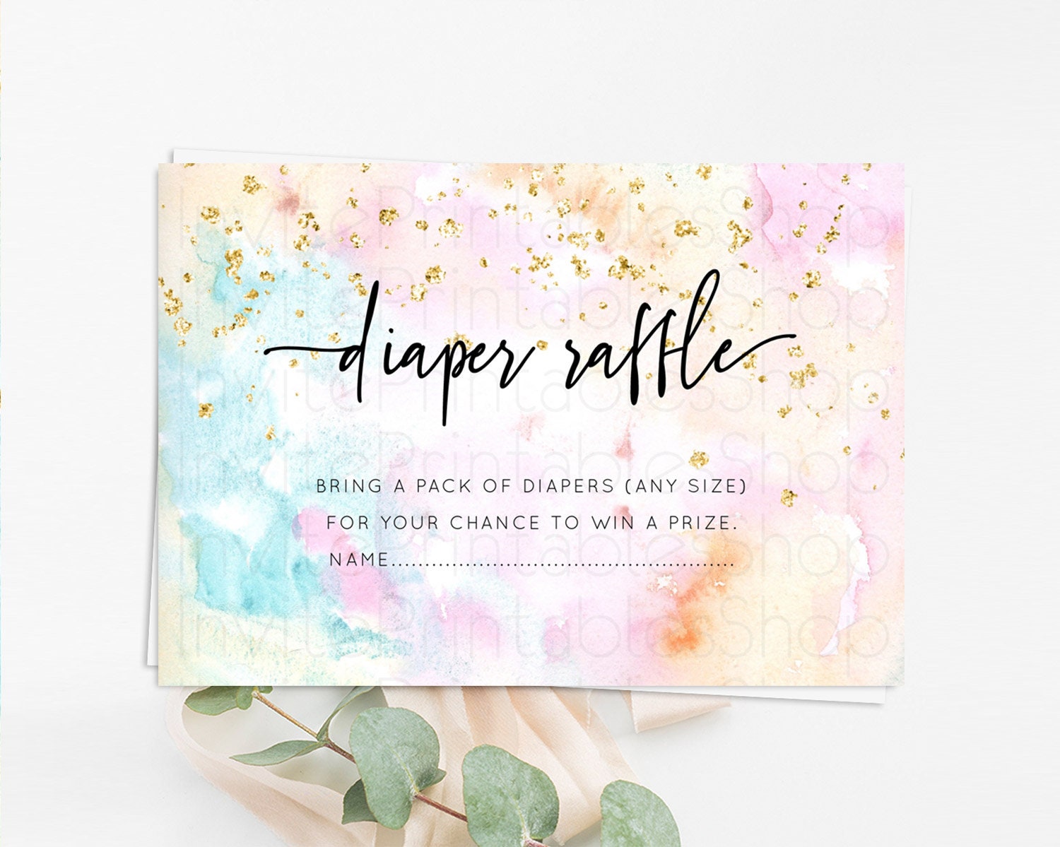 Pastel Diaper Raffle Card Pastel Rainbow Diaper Raffle Insert Colorful Ombre Watercolor Diaper Ticket Confetti Glitter Raffle Game D10548