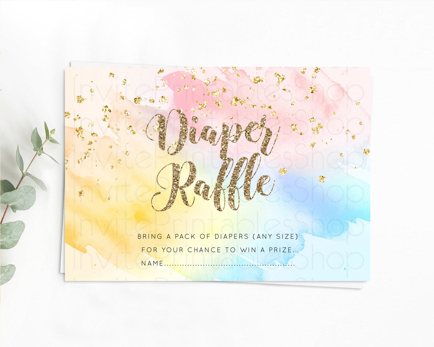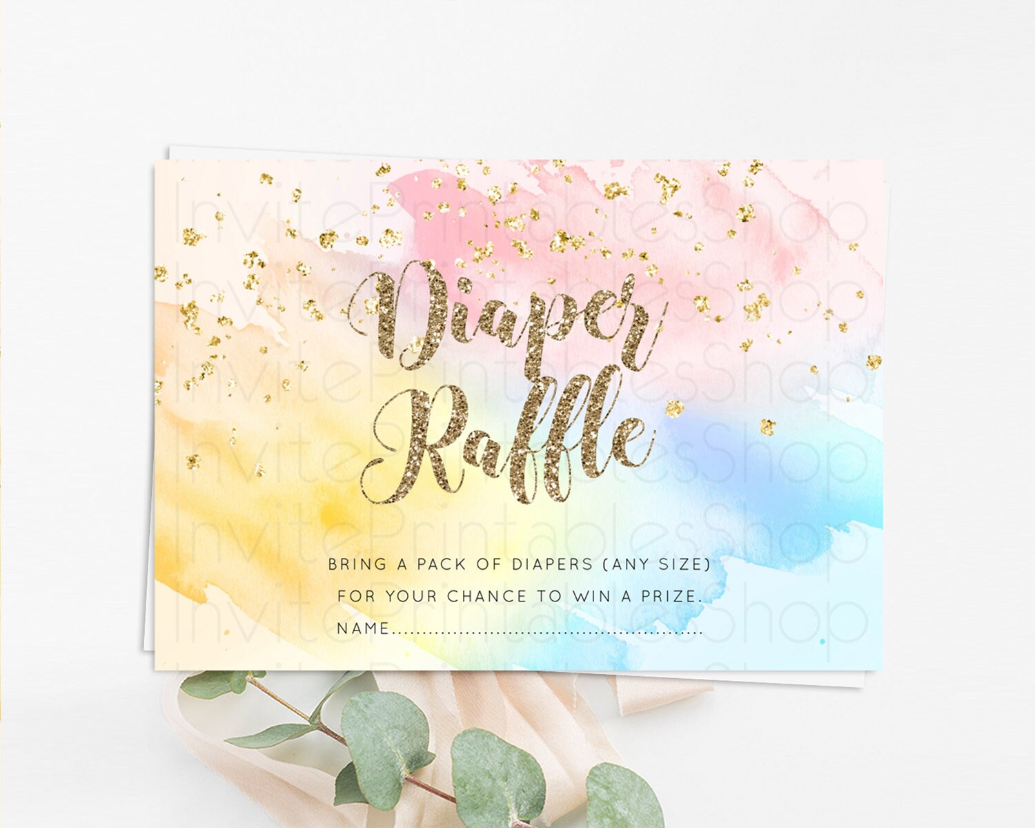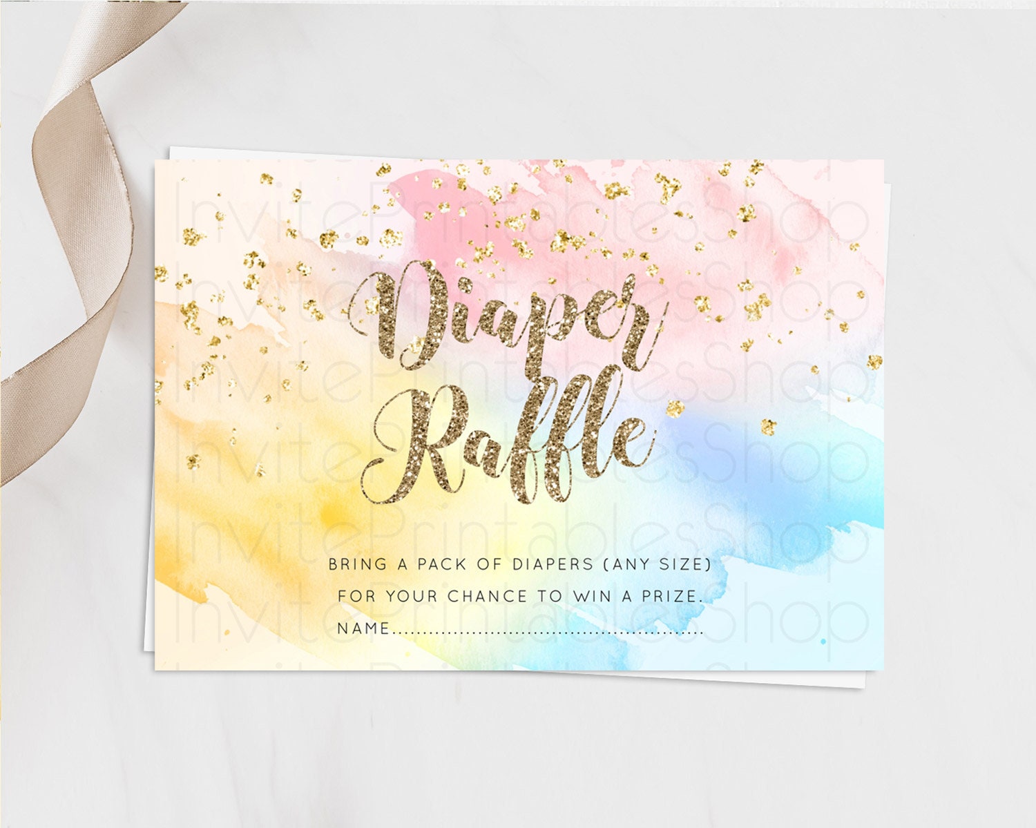 Pastel Diaper Raffle Card Pastel Rainbow Diaper Raffle Insert Colorful Ombre Watercolor Diaper Ticket Confetti Glitter Raffle Game D10556