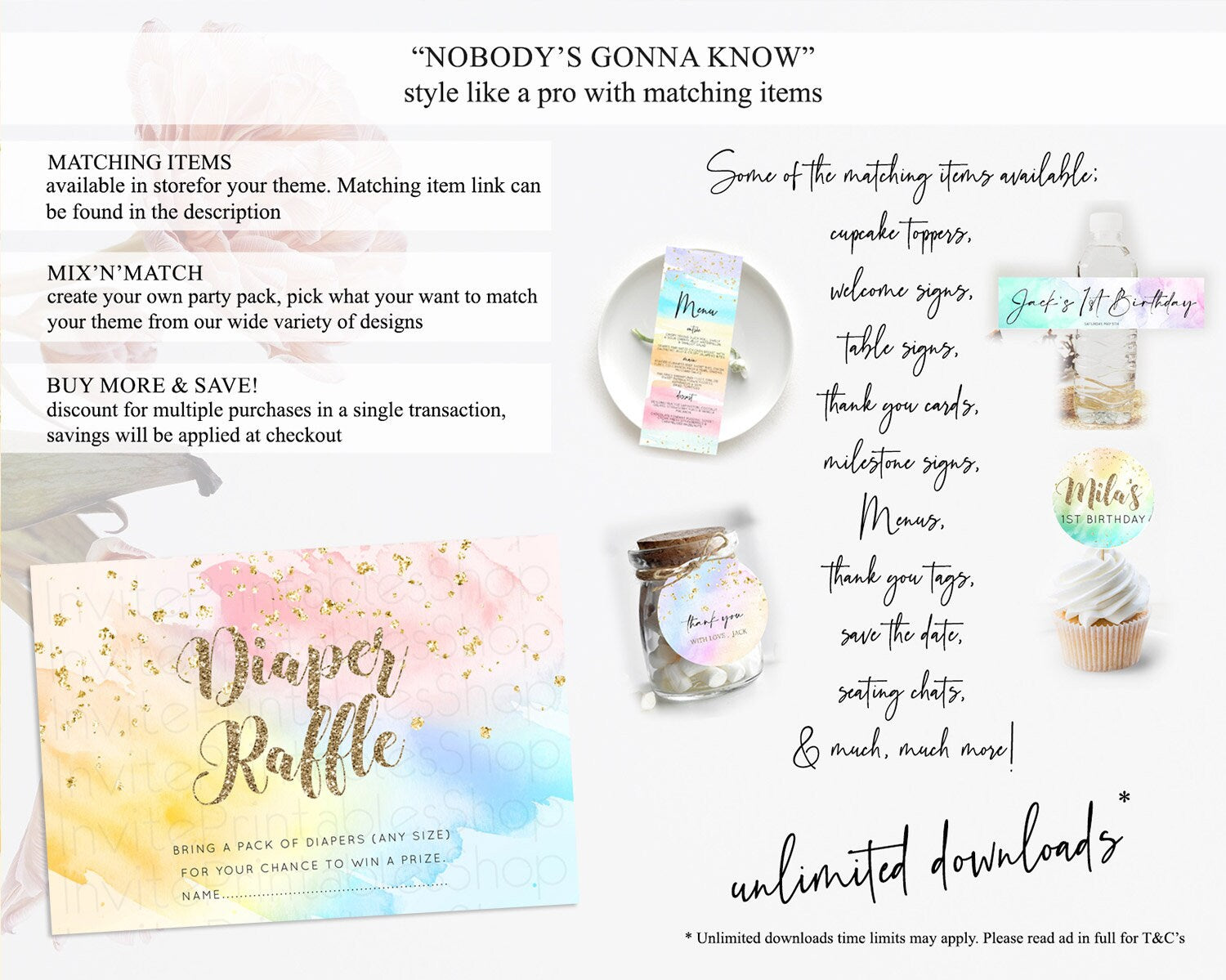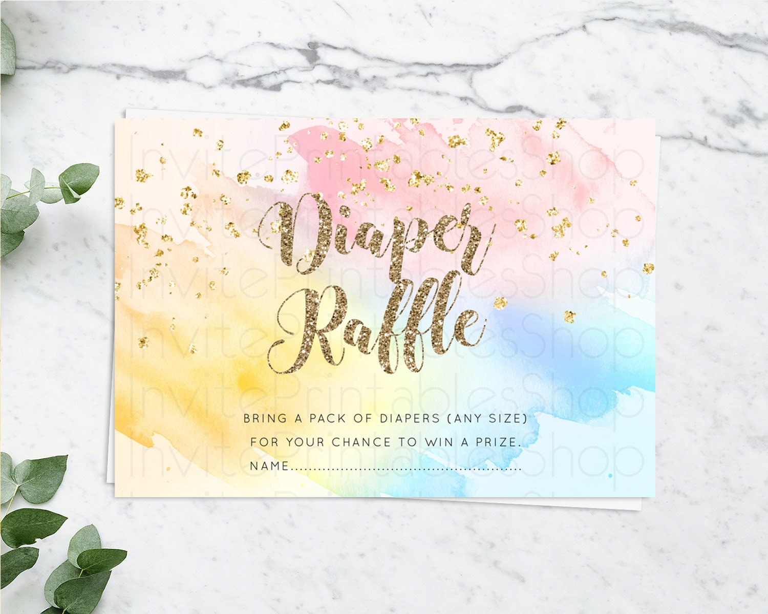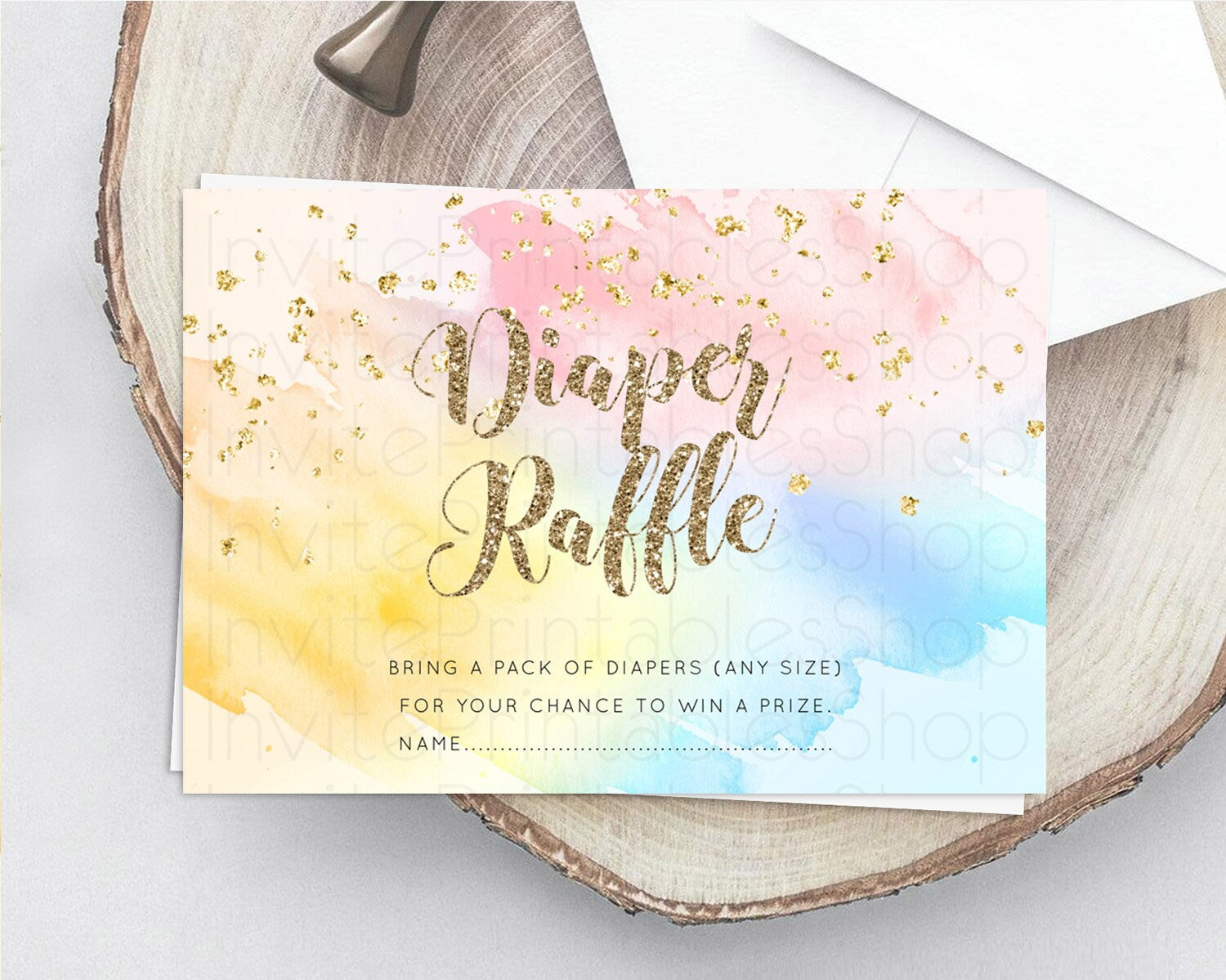 Pastel Diaper Raffle Card Pastel Rainbow Diaper Raffle Insert Colorful Ombre Watercolor Diaper Ticket Confetti Glitter Raffle Game D10556