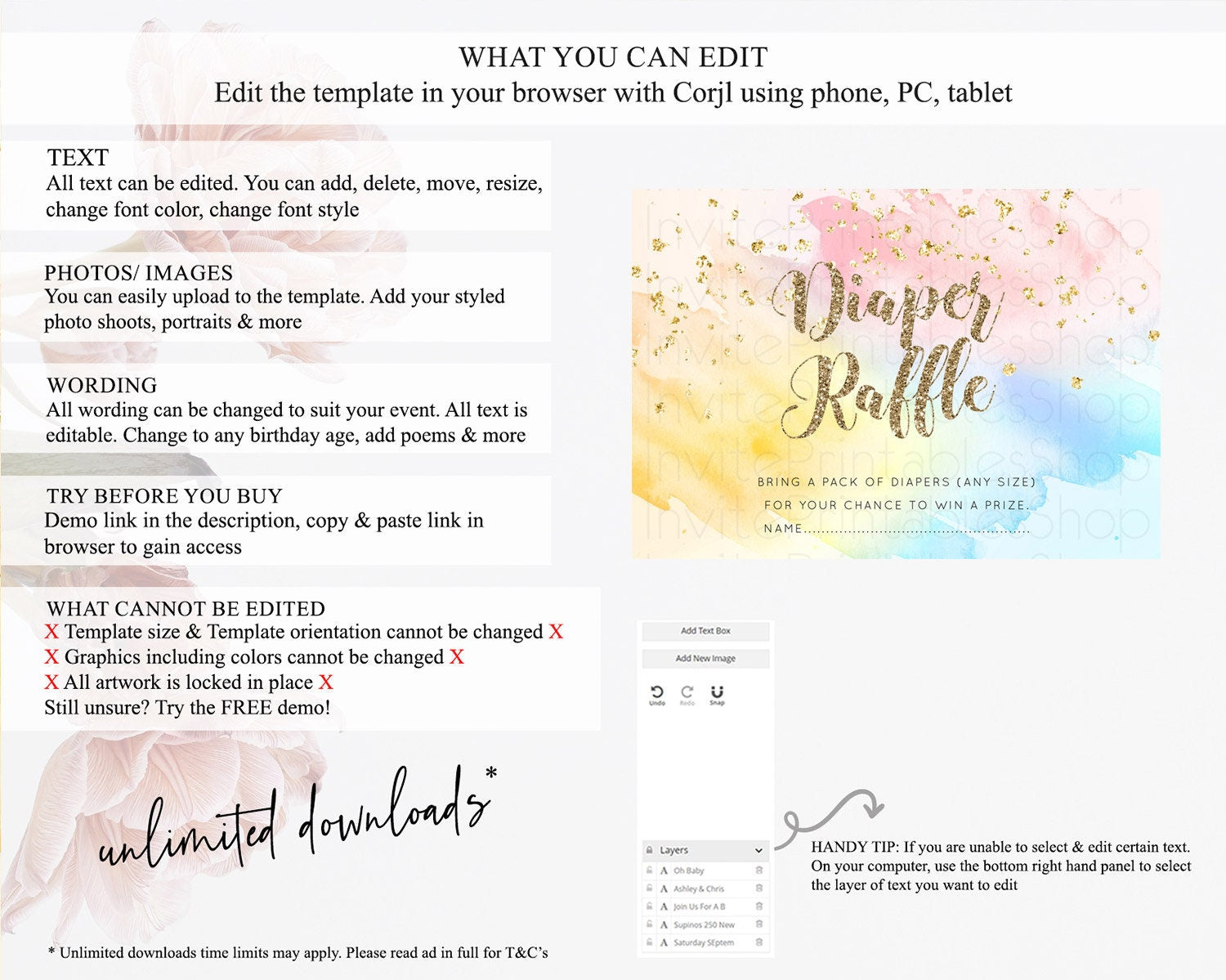 • After purchase, Corjl emails your editing link. Allow up to 15 minutes for delivery.