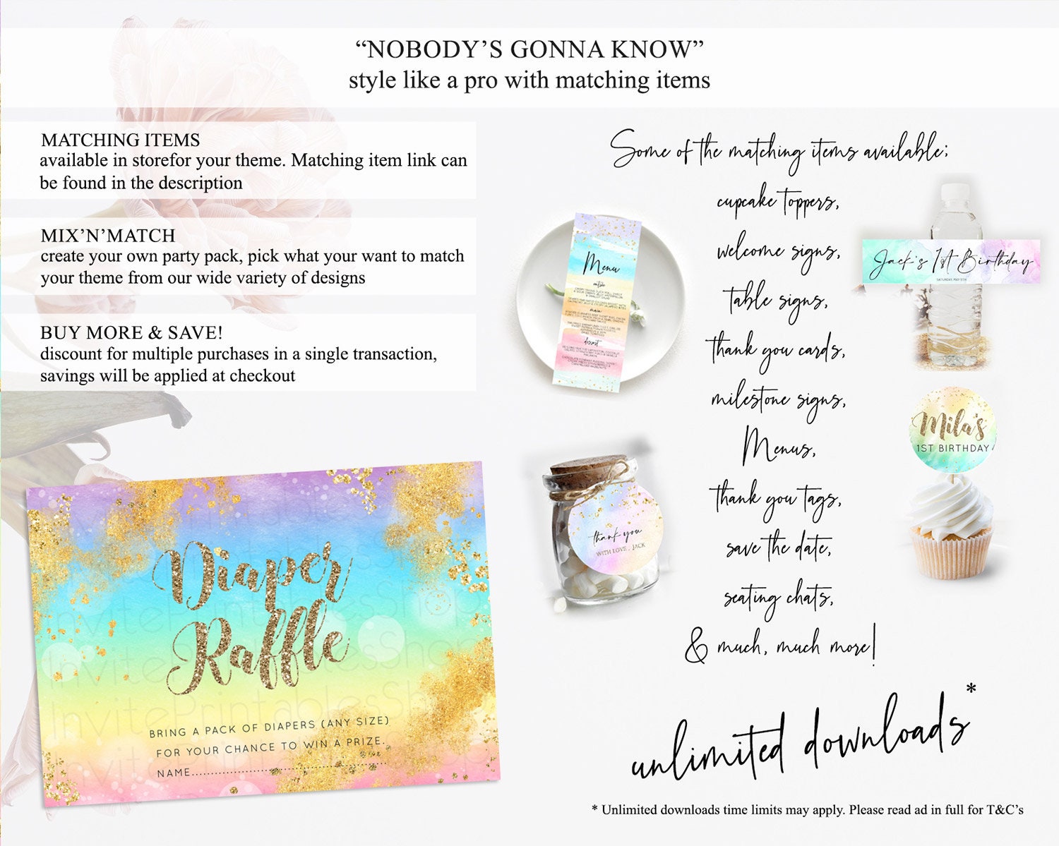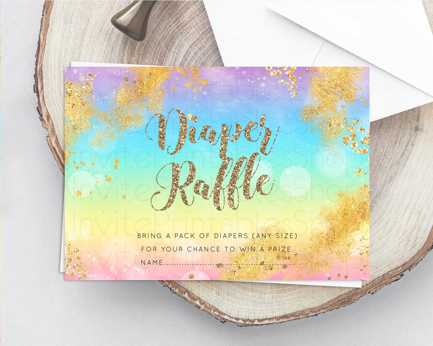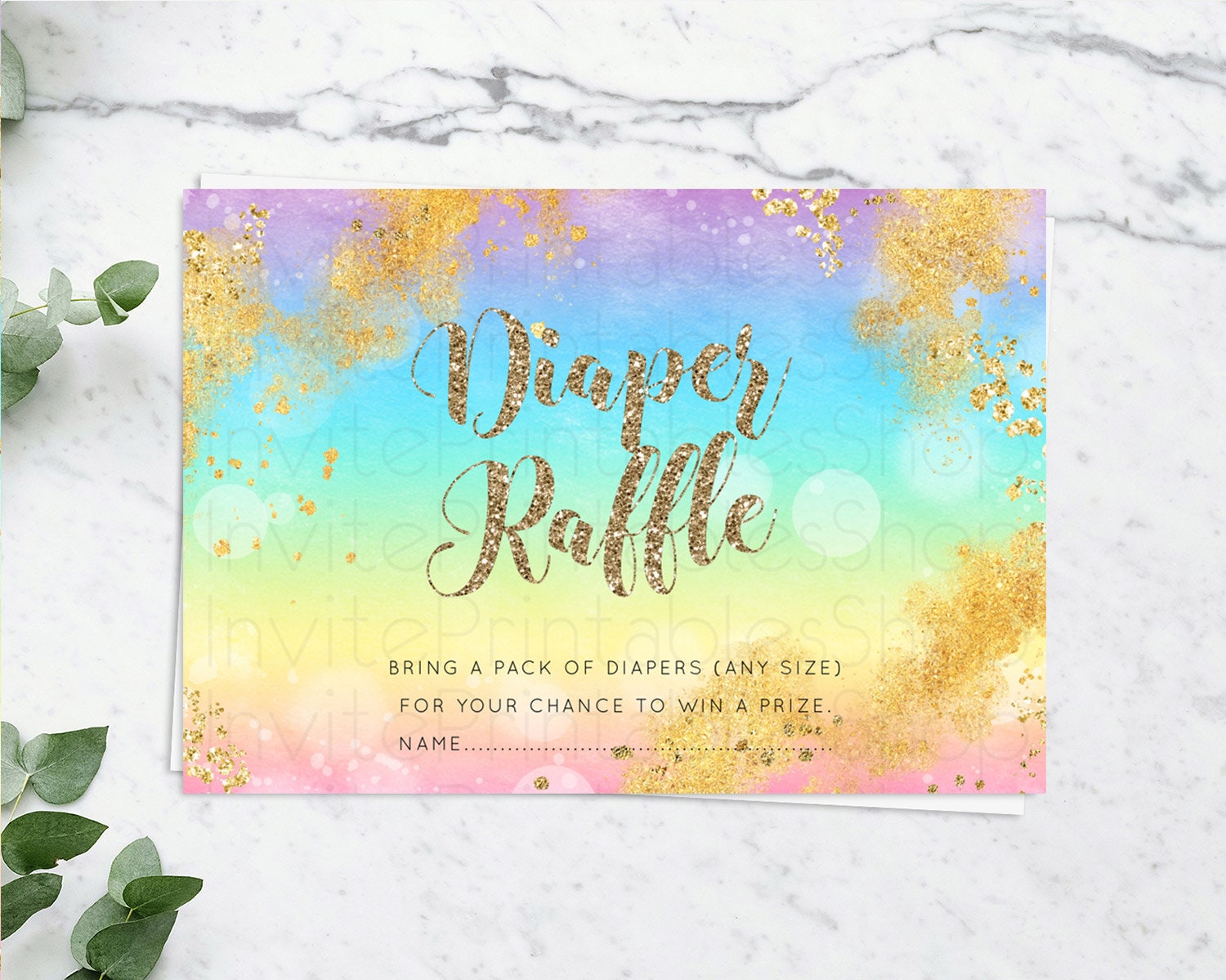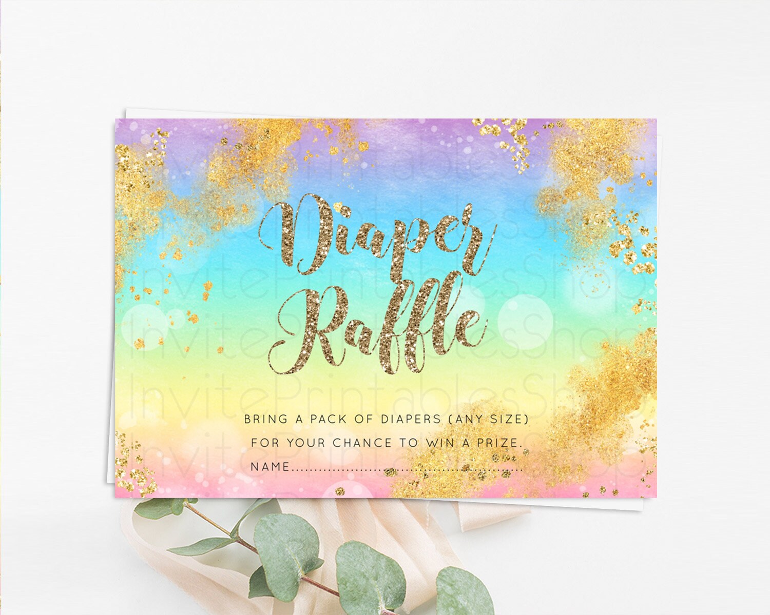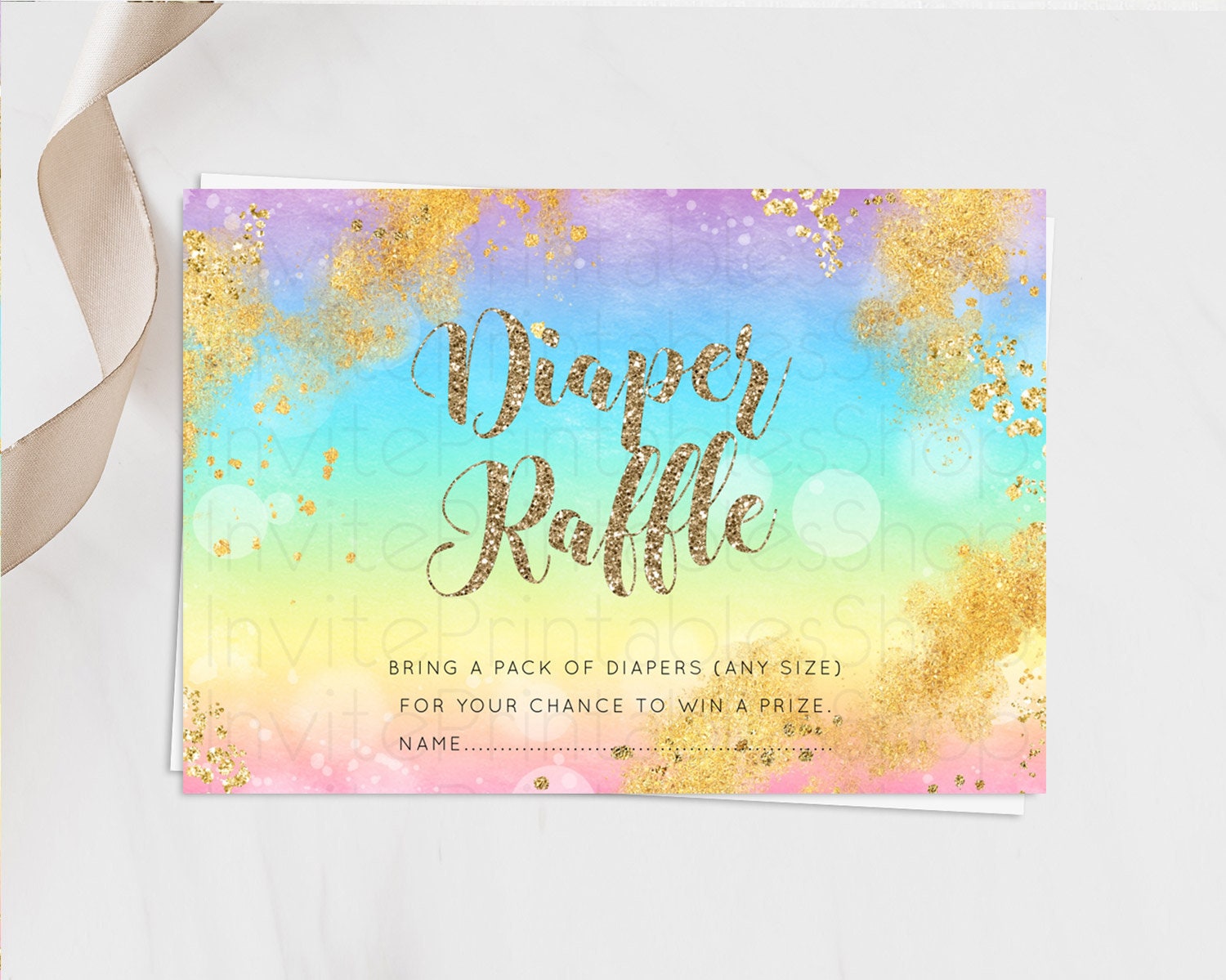 Pastel Diaper Raffle Card Pastel Rainbow Diaper Raffle Insert Colorful Ombre Watercolor Diaper Ticket Confetti Glitter Raffle Game D10561