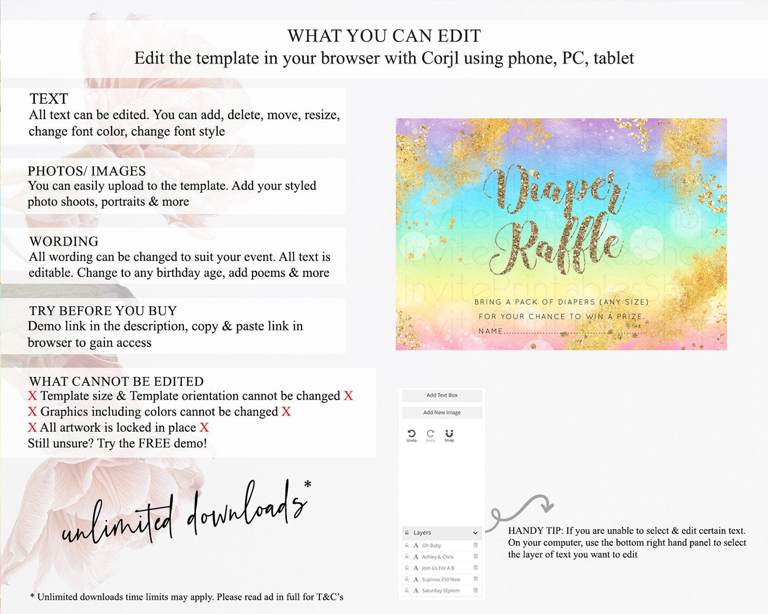 • After purchase, Corjl emails your editing link. Allow up to 15 minutes for delivery.