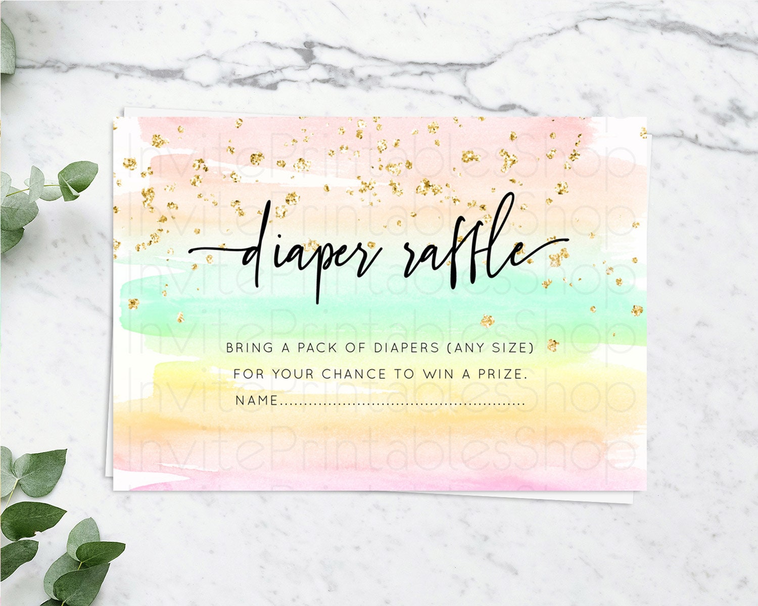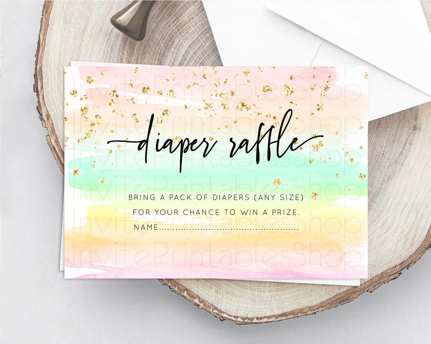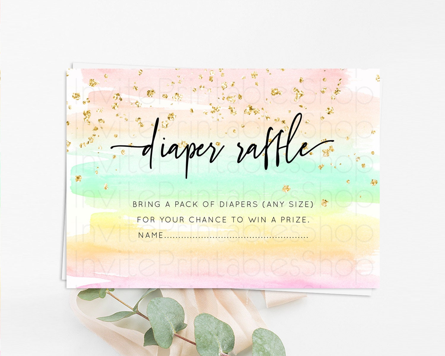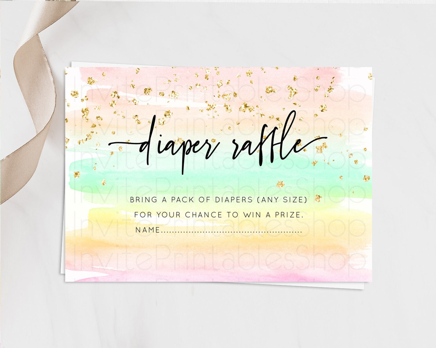 Pastel Diaper Raffle Card Pastel Rainbow Diaper Raffle Insert Colorful Ombre Watercolor Diaper Ticket Confetti Glitter Raffle Game D10591