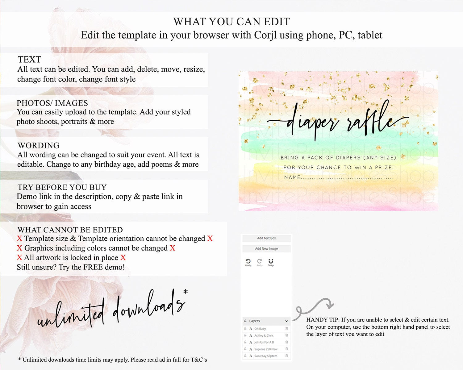 • After purchase, Corjl emails your editing link. Allow up to 15 minutes for delivery.