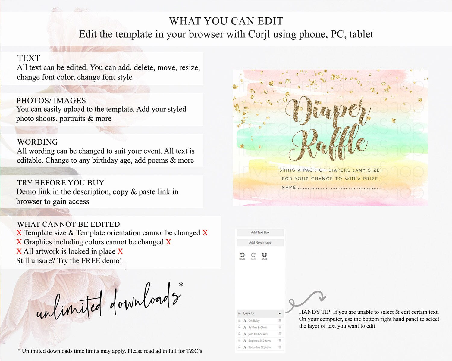 • After purchase, Corjl emails your editing link. Allow up to 15 minutes for delivery.