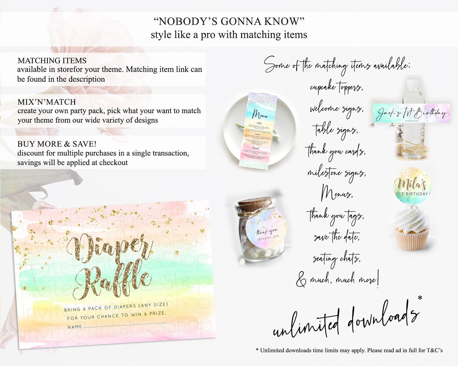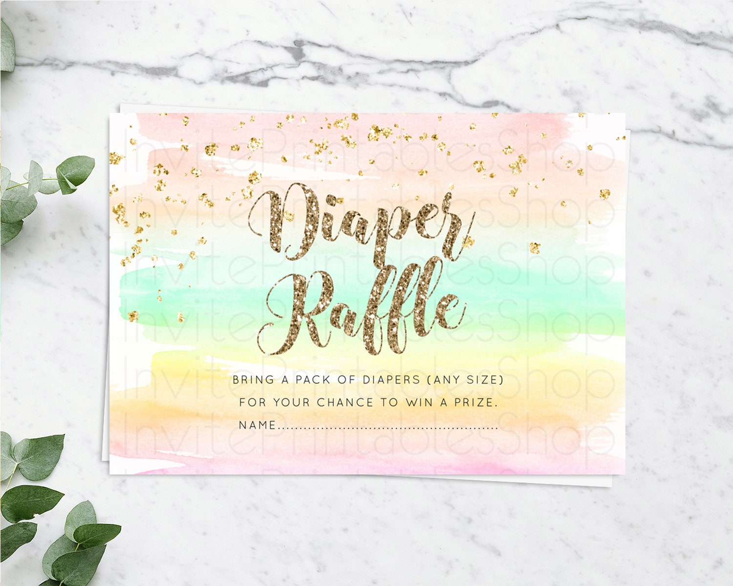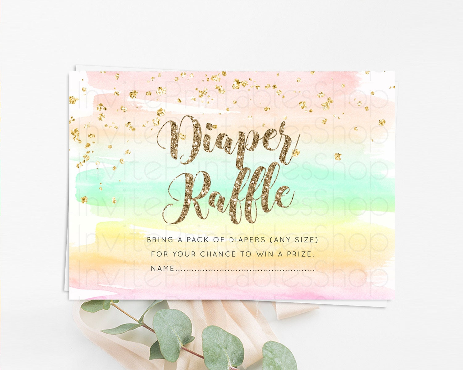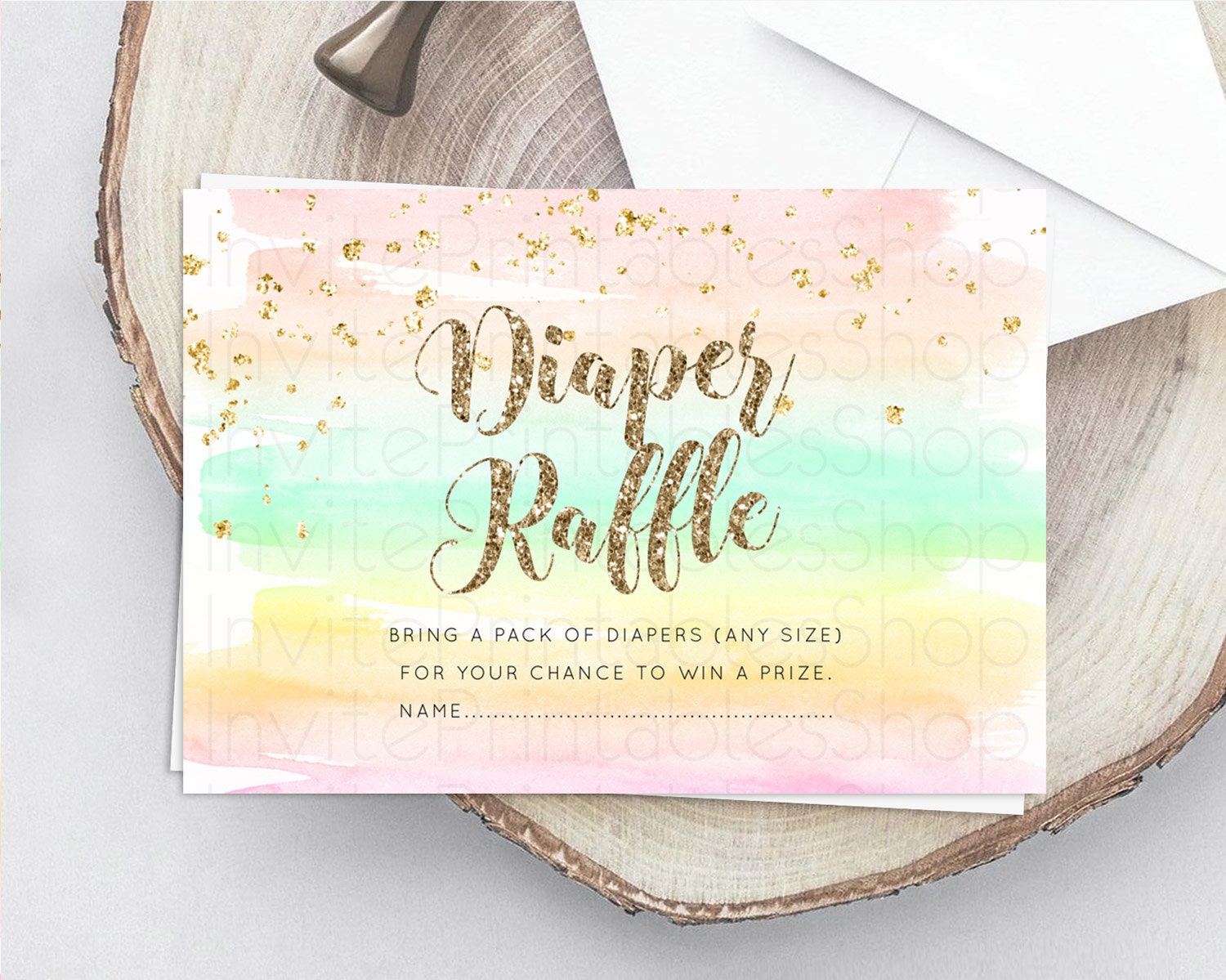 Pastel Diaper Raffle Card Pastel Rainbow Diaper Raffle Insert Colorful Ombre Watercolor Diaper Ticket Confetti Glitter Raffle Game D10592