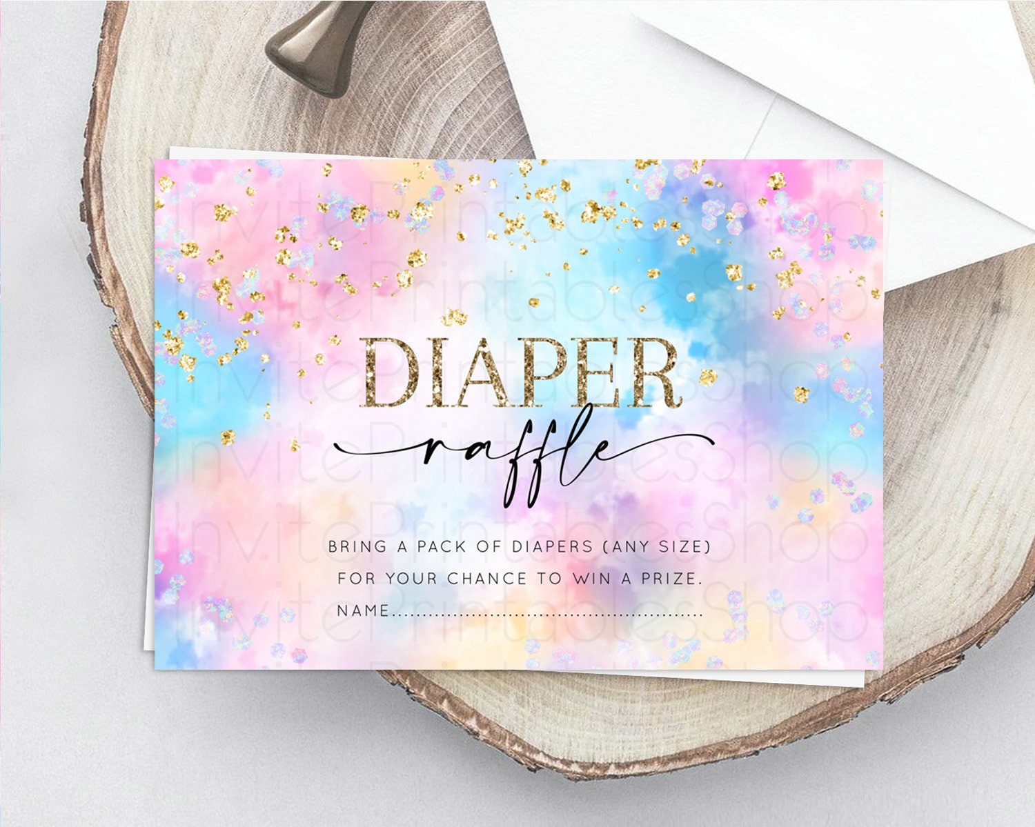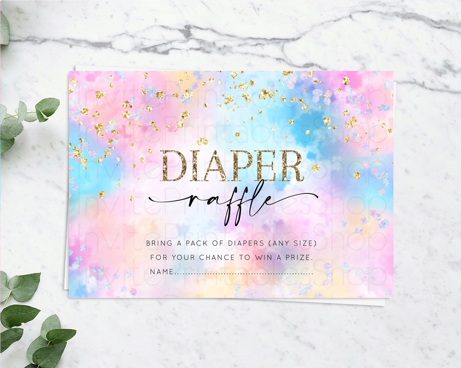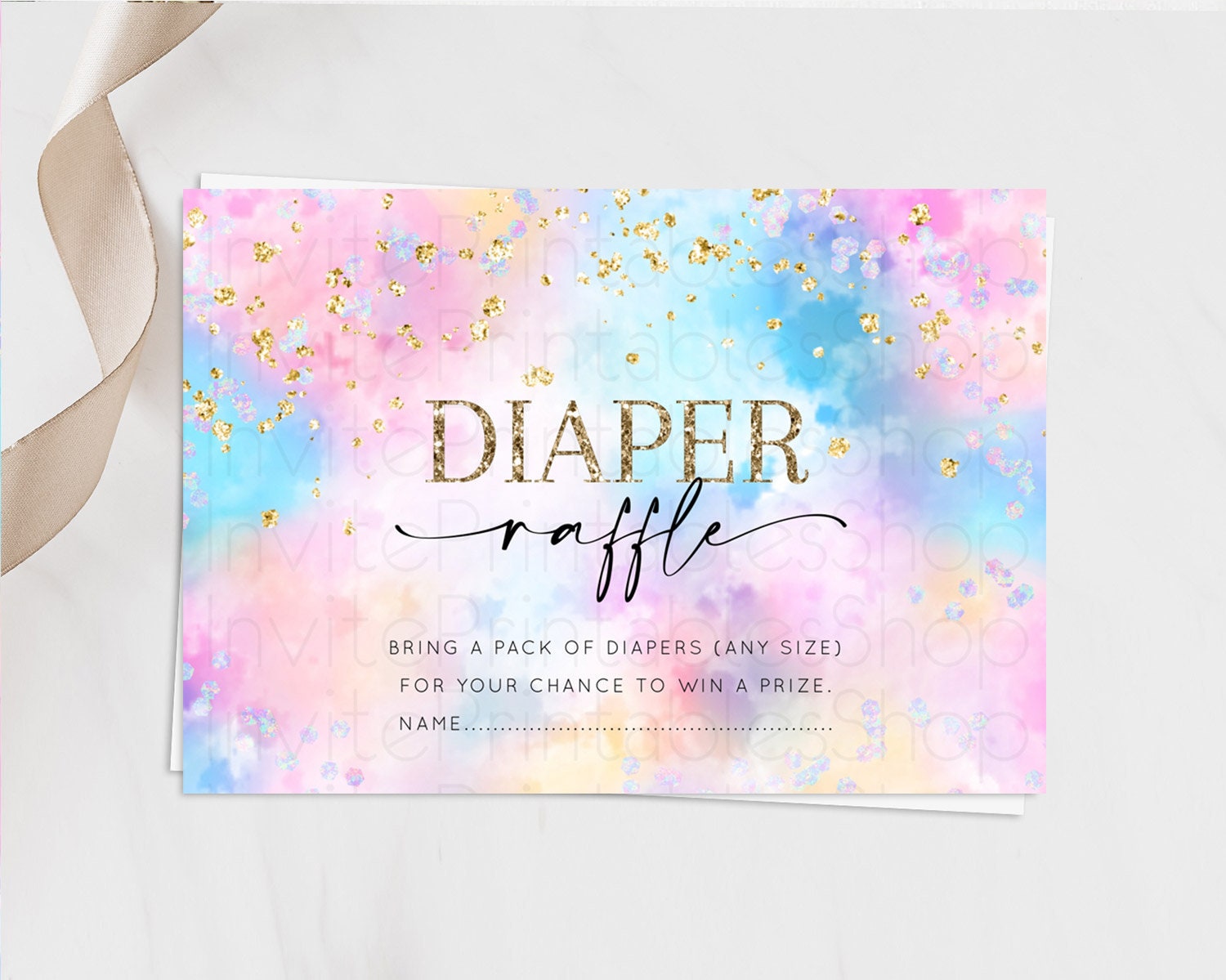 Pastel Diaper Raffle Card Pastel Rainbow Diaper Raffle Insert Colorful Ombre Watercolor Diaper Ticket Confetti Glitter Raffle Game D10607