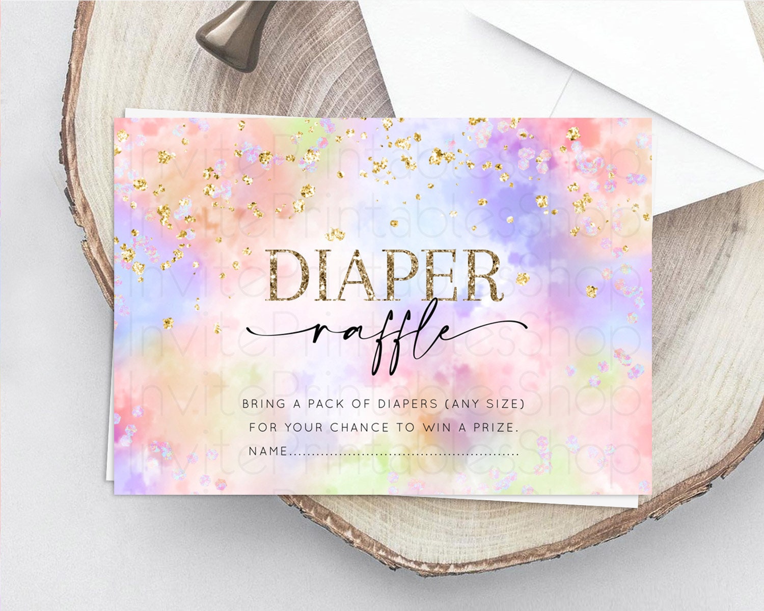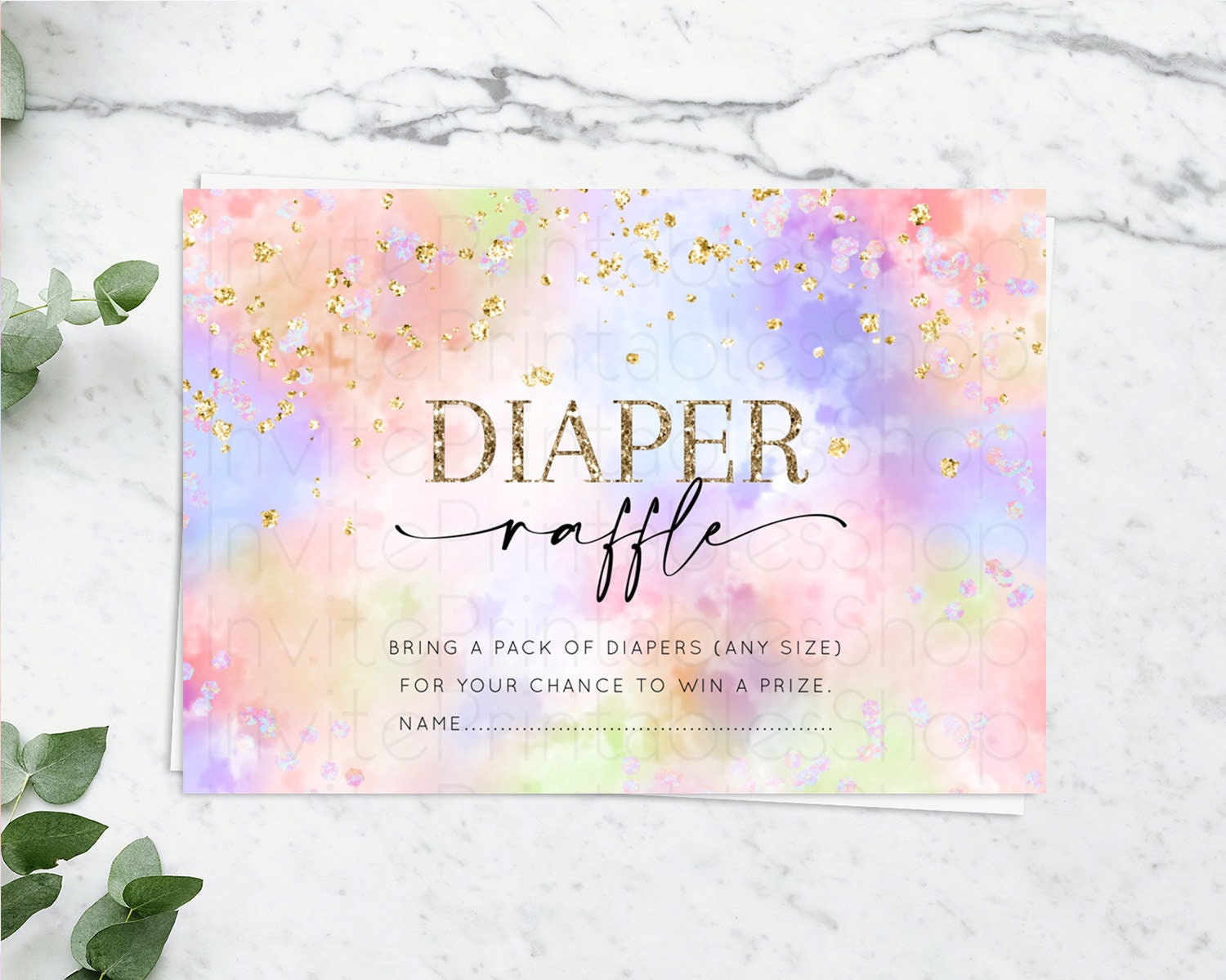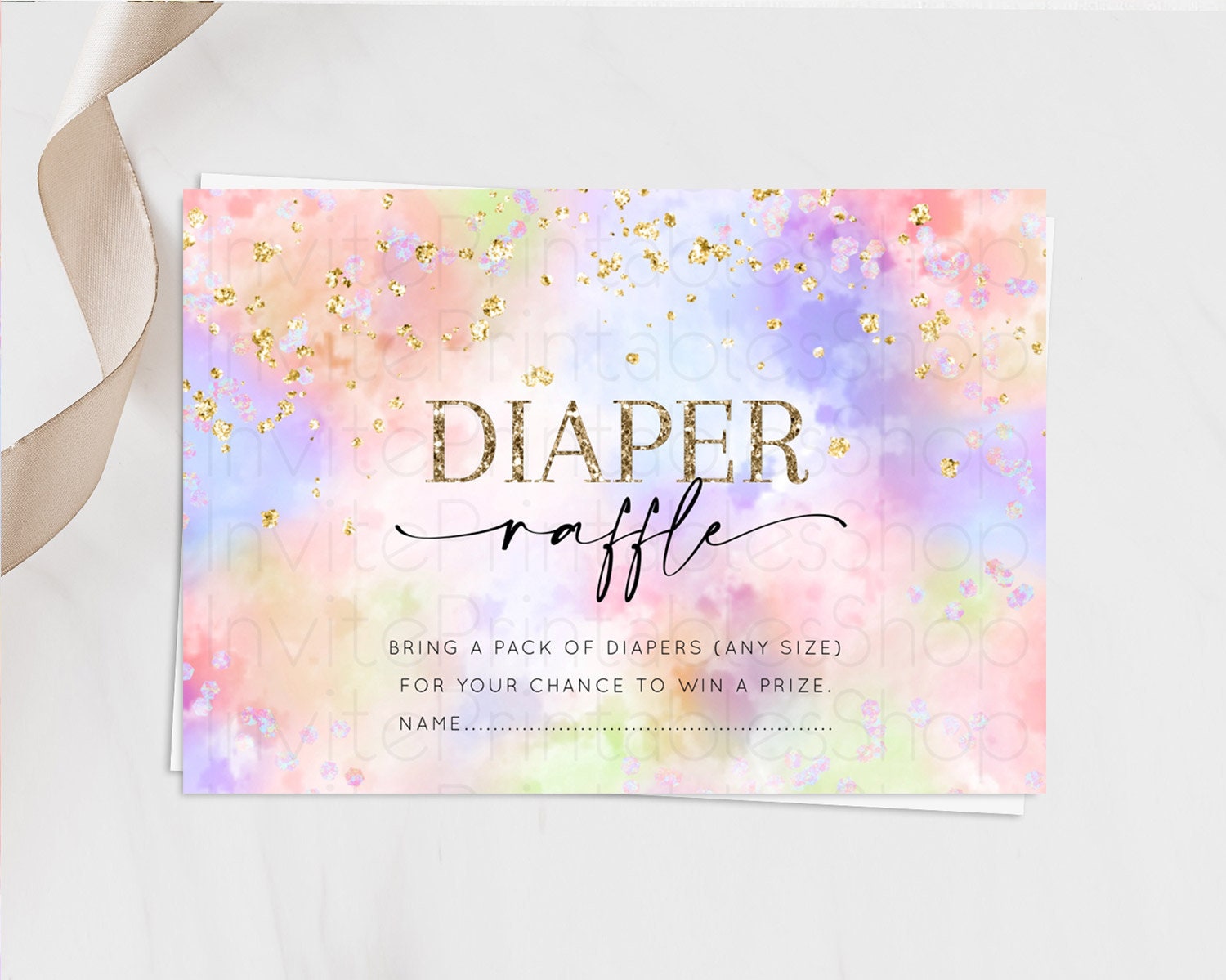 Pastel Diaper Raffle Card Pastel Rainbow Diaper Raffle Insert Colorful Ombre Watercolor Diaper Ticket Confetti Glitter Raffle Game D10610