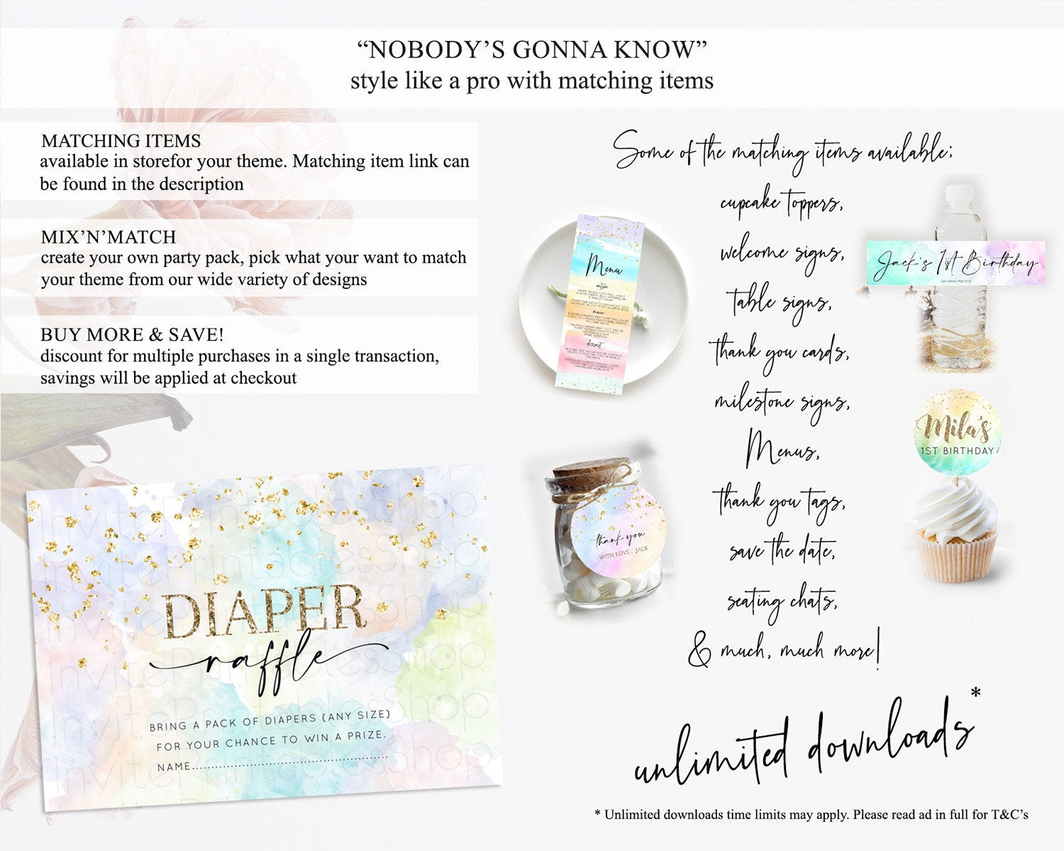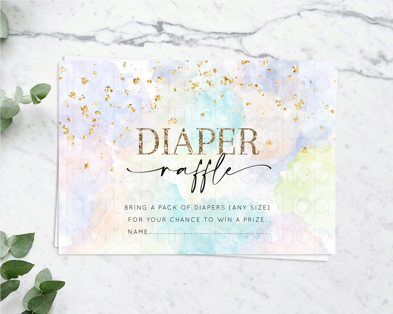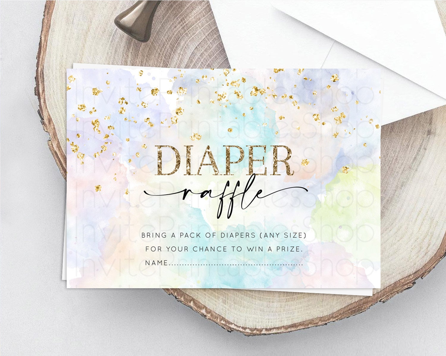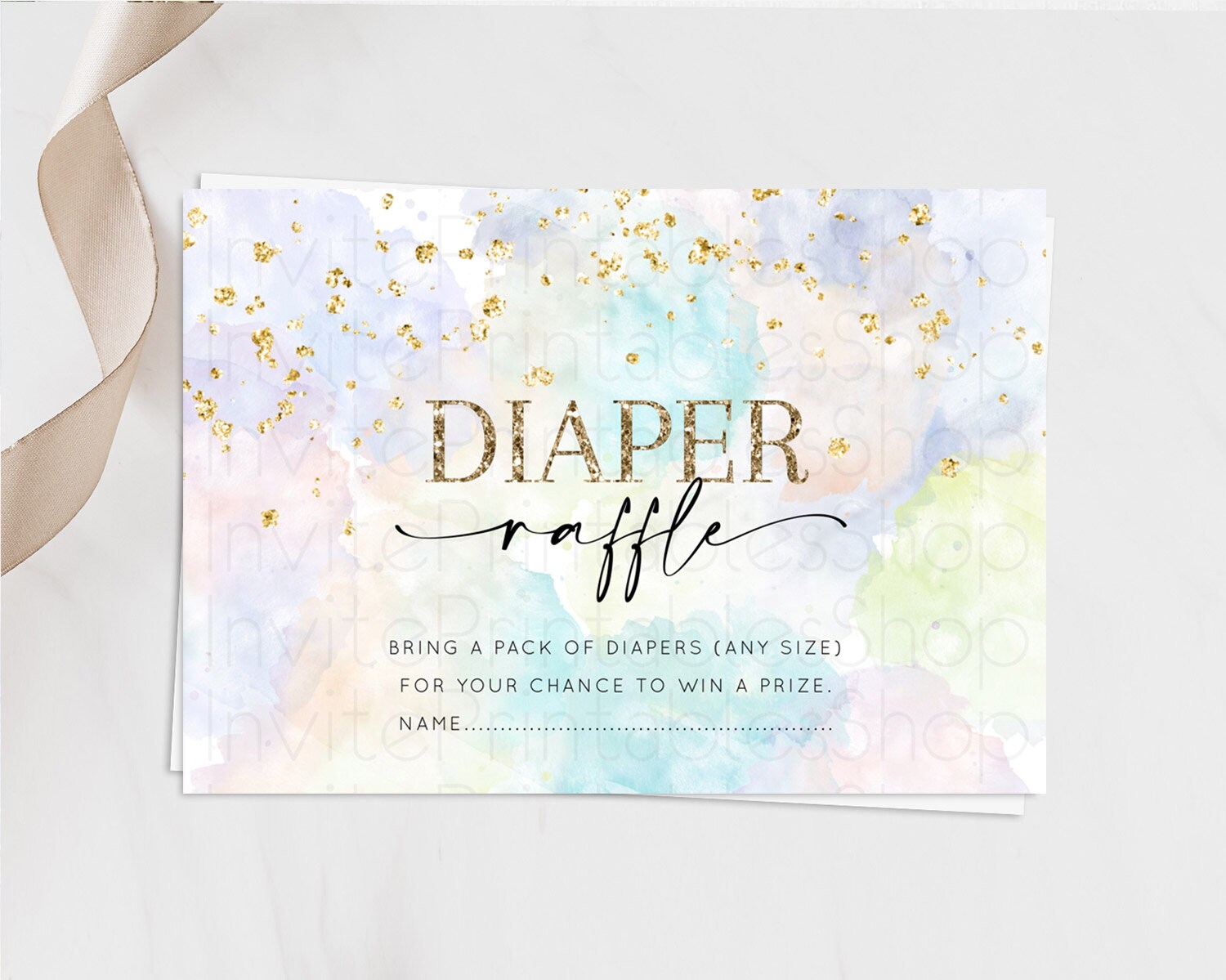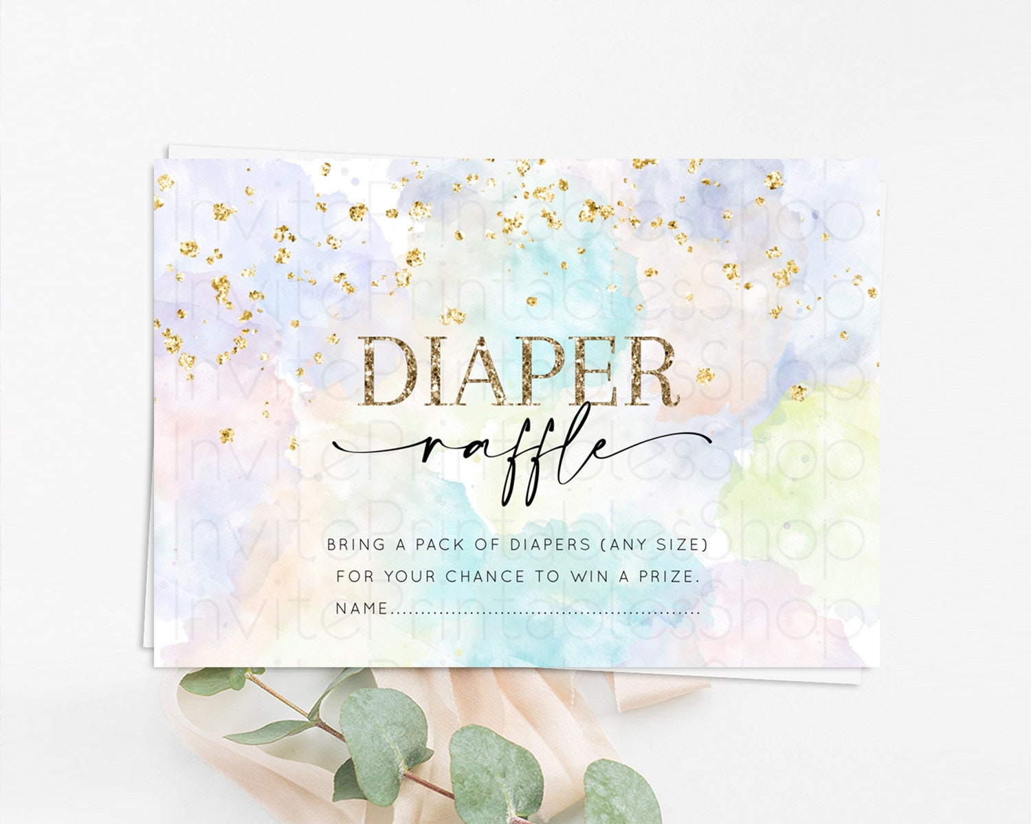 Pastel Diaper Raffle Card Pastel Rainbow Diaper Raffle Insert Colorful Ombre Watercolor Diaper Ticket Confetti Glitter Raffle Game D10613
