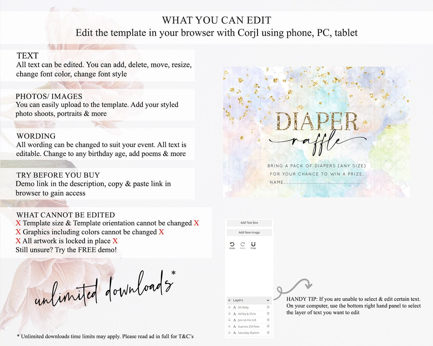 • After purchase, Corjl emails your editing link. Allow up to 15 minutes for delivery.