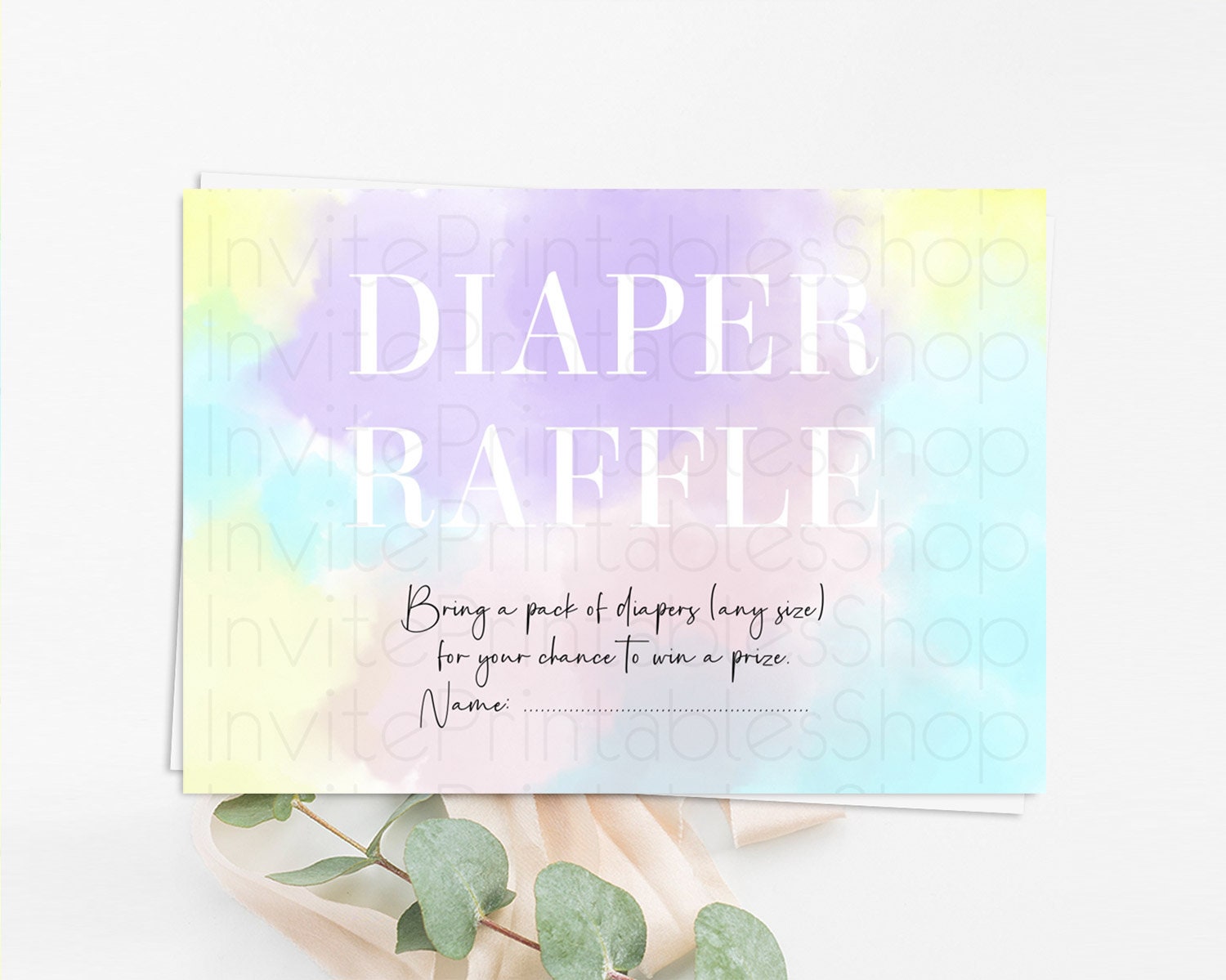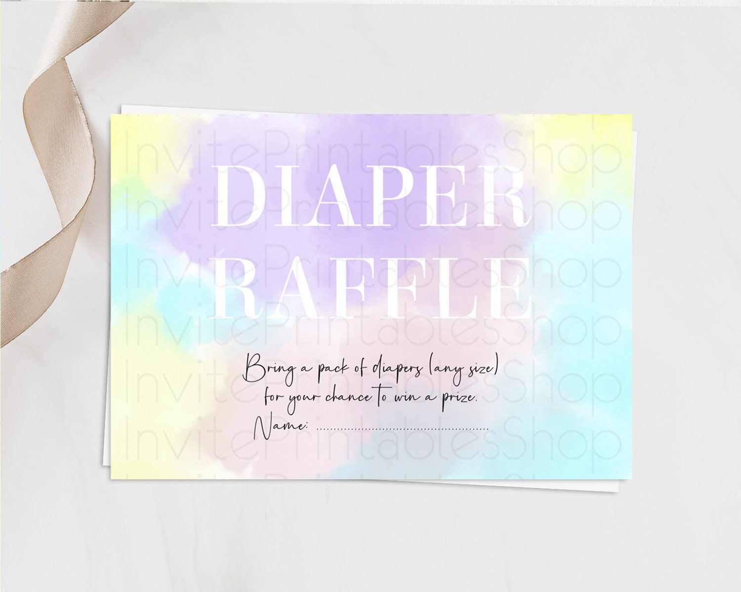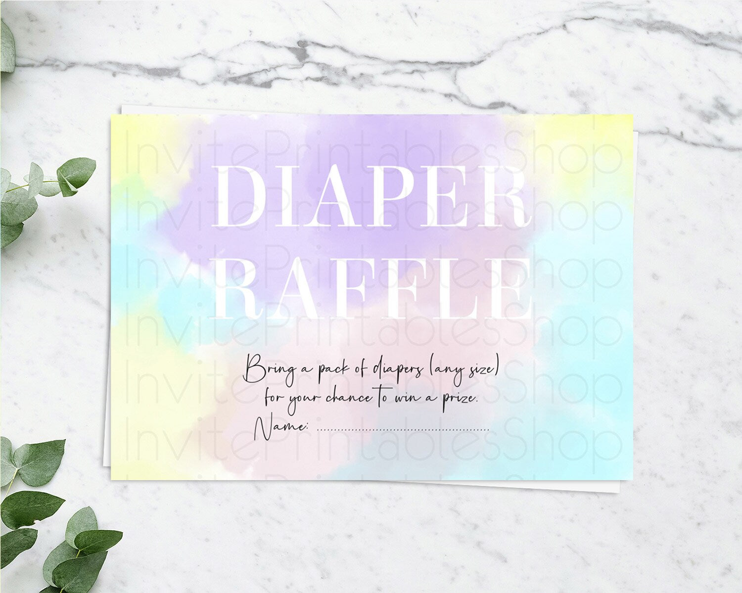 Pastel Diaper Raffle Card Pastel Rainbow Diaper Raffle Insert Colorful Ombre Watercolor Diaper Ticket Confetti Glitter Raffle Game D10617