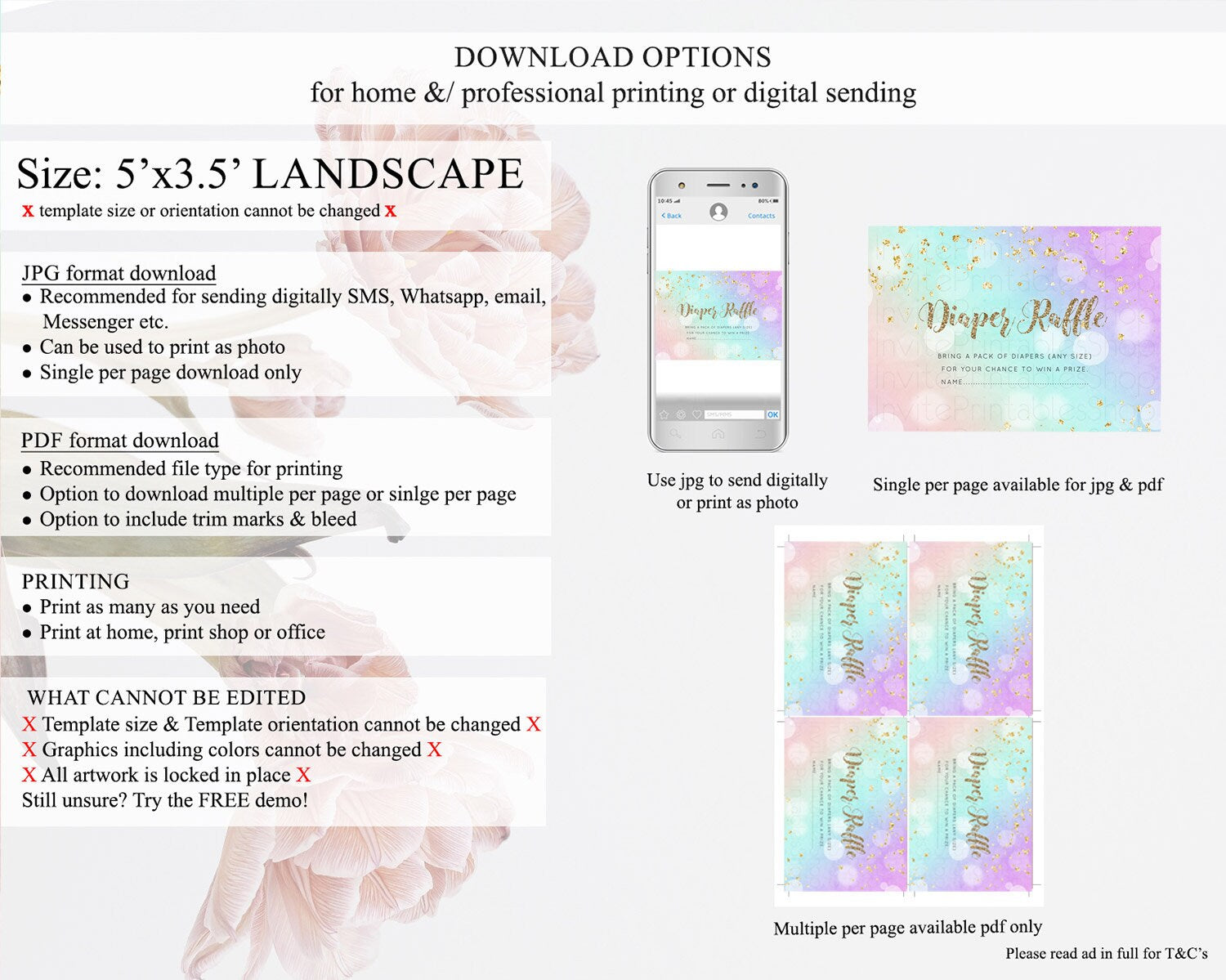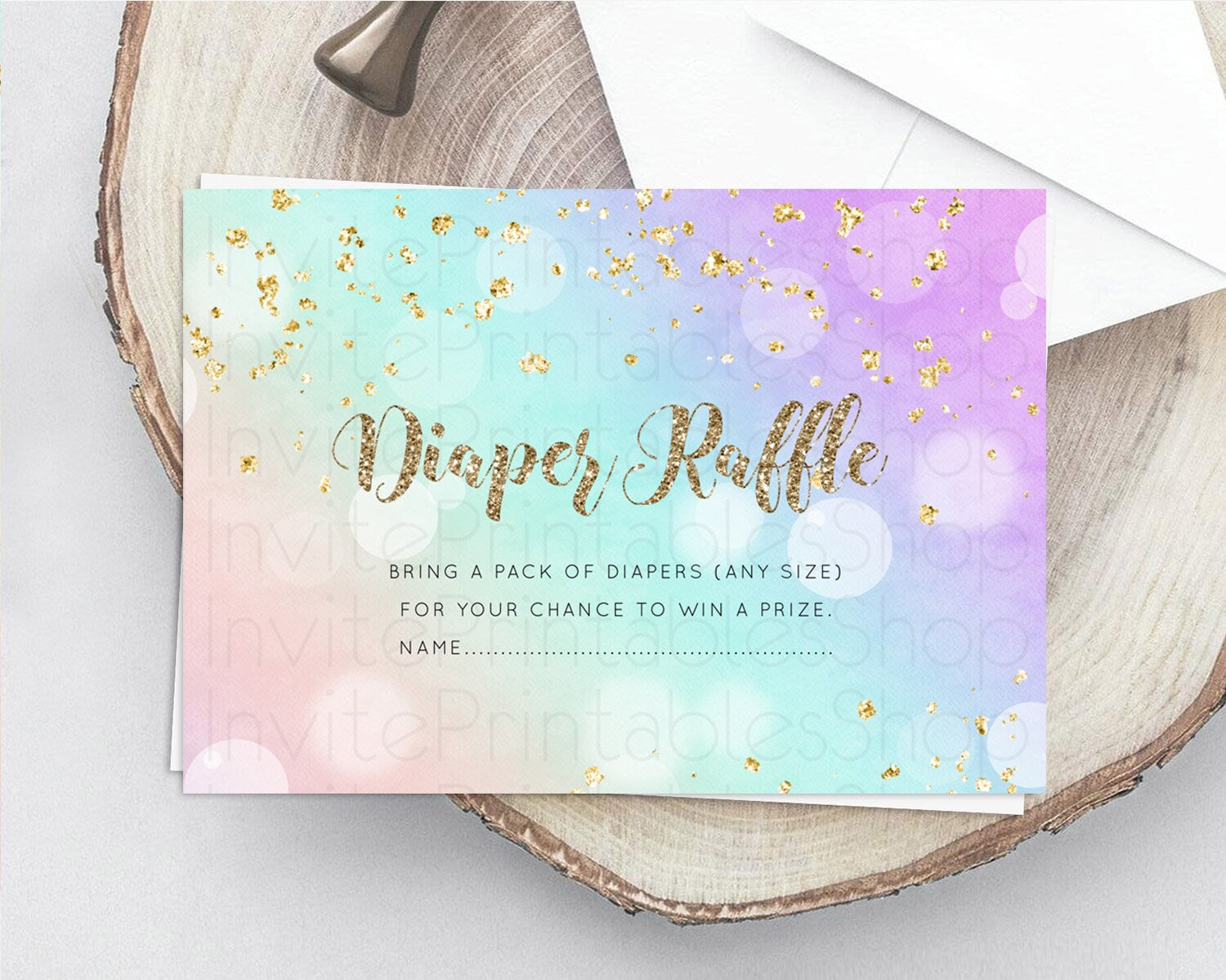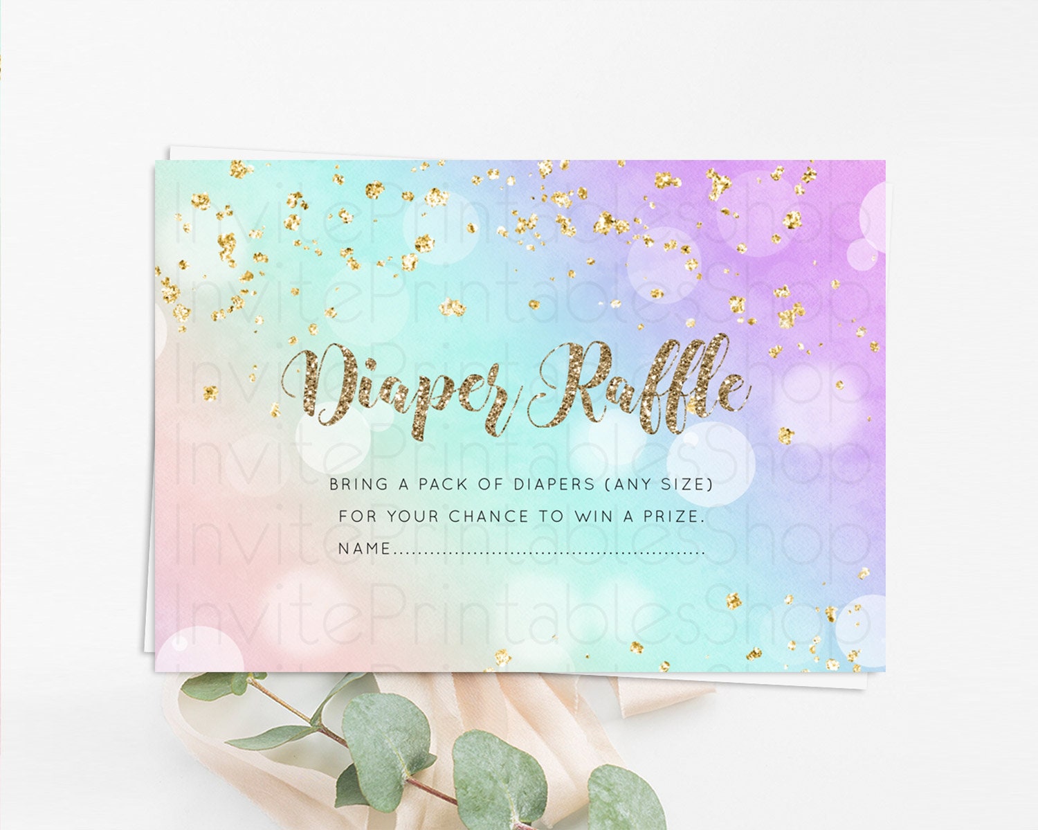 Pastel Diaper Raffle Card Pastel Rainbow Diaper Raffle Insert Colorful Ombre Watercolor Diaper Ticket Confetti Glitter Raffle Game D10621