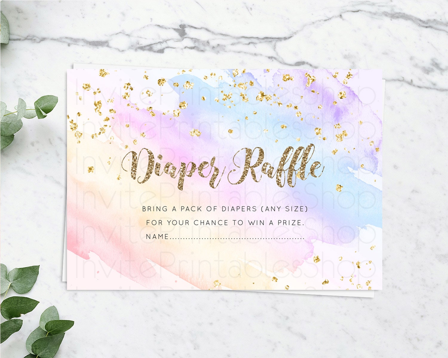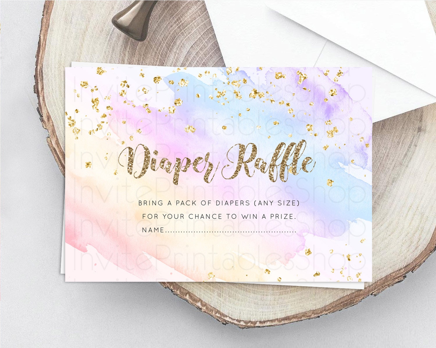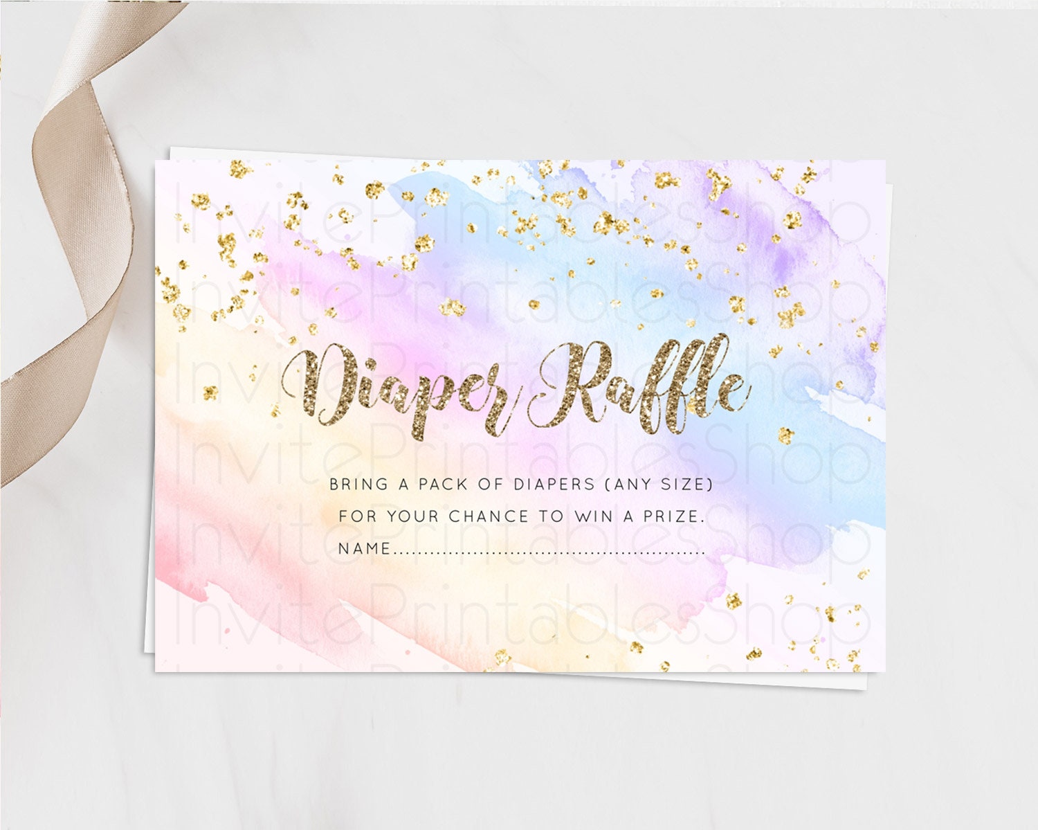 Pastel Diaper Raffle Card Pastel Rainbow Diaper Raffle Insert Colorful Ombre Watercolor Diaper Ticket Confetti Glitter Raffle Game D10633
