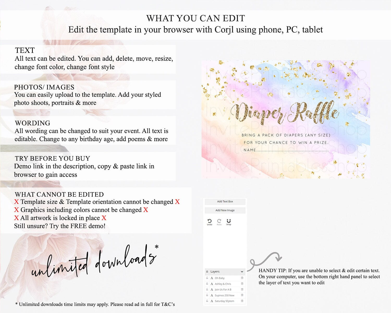 • After purchase, Corjl emails your editing link. Allow up to 15 minutes for delivery.
