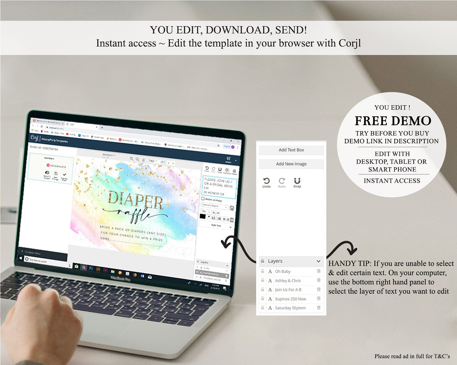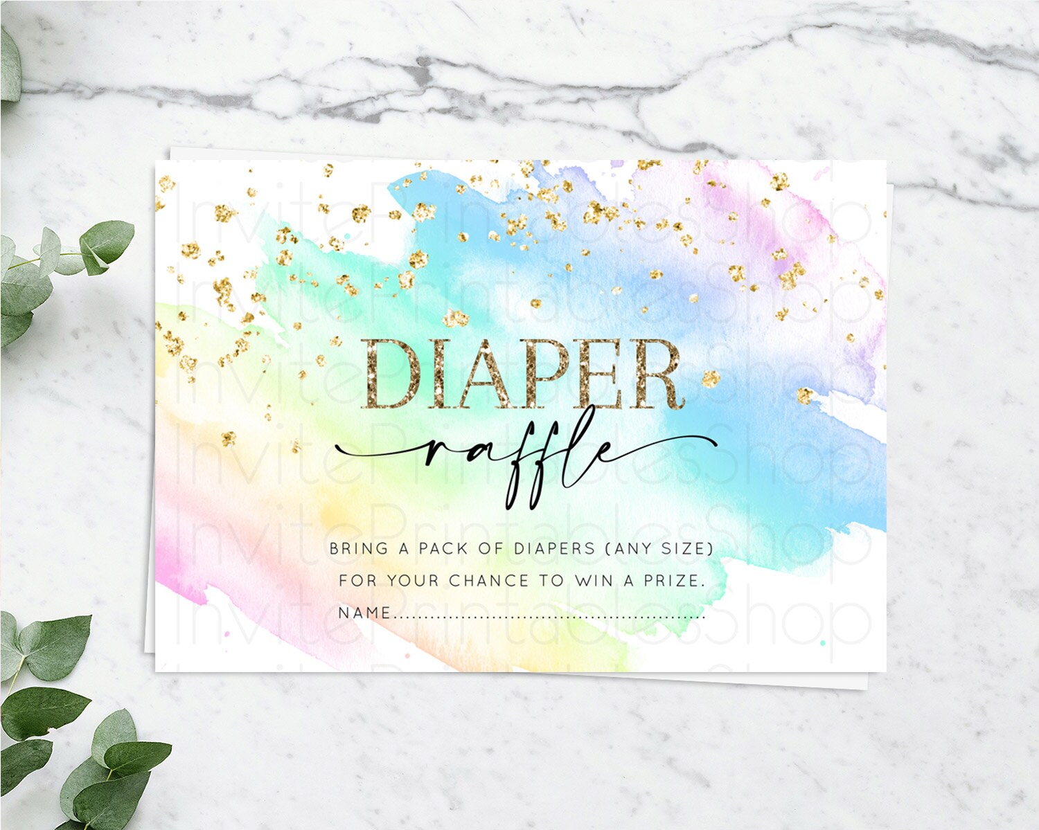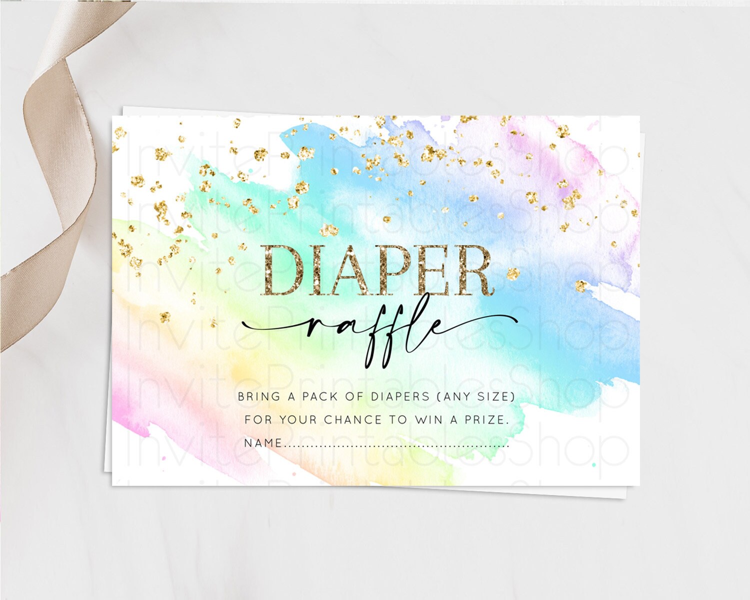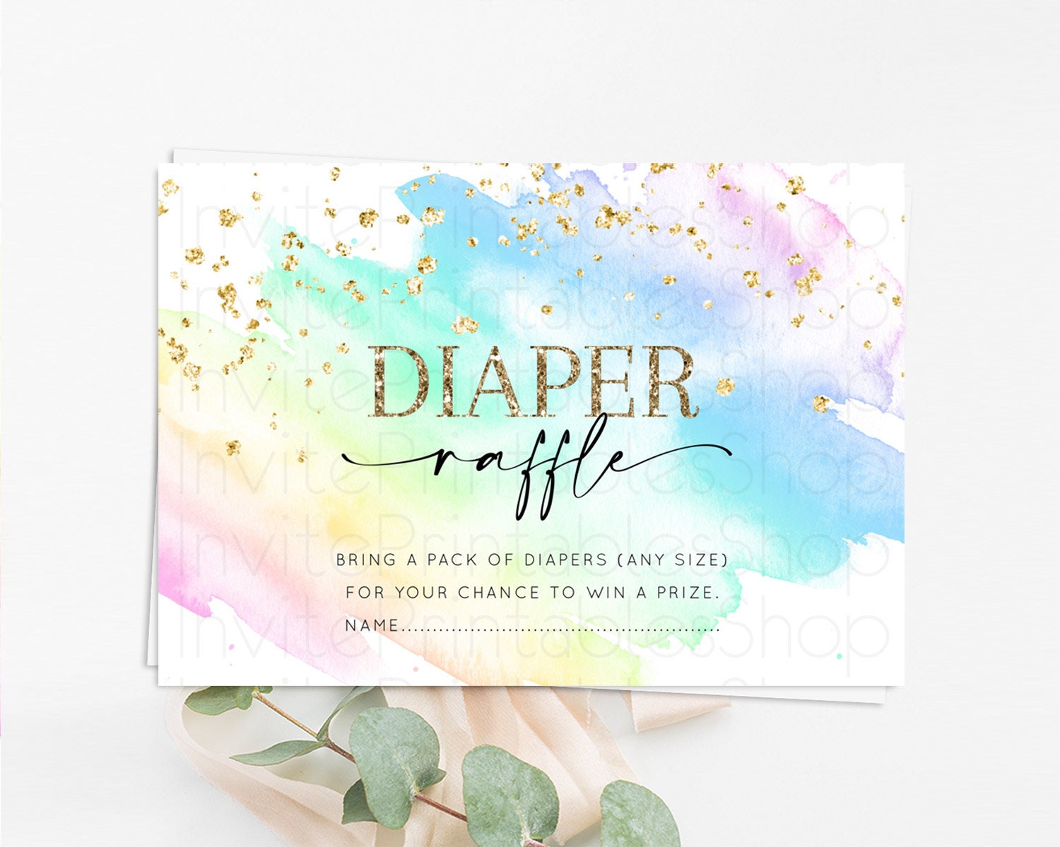 Pastel Diaper Raffle Card Pastel Rainbow Diaper Raffle Insert Colorful Ombre Watercolor Diaper Ticket Confetti Glitter Raffle Game D10640