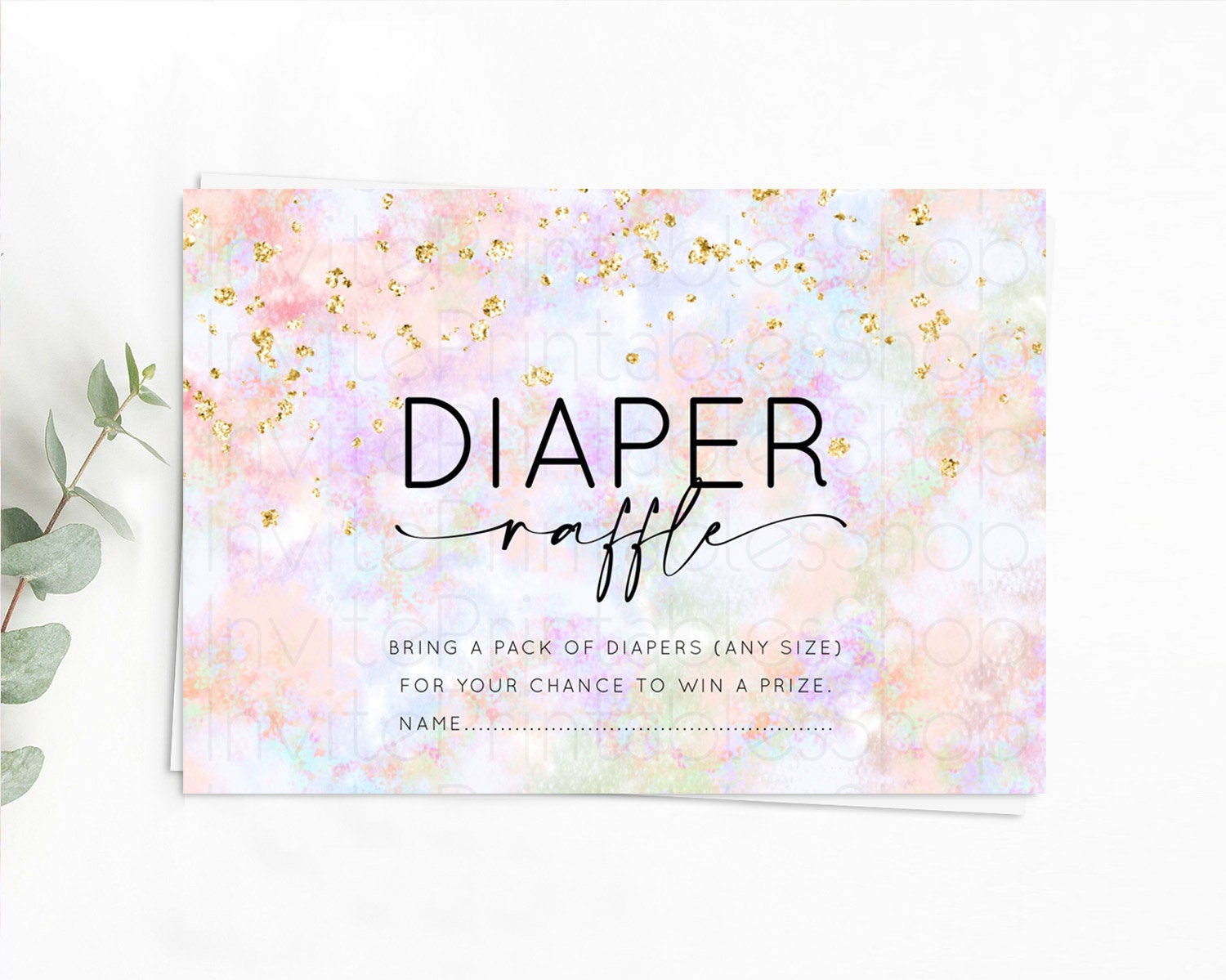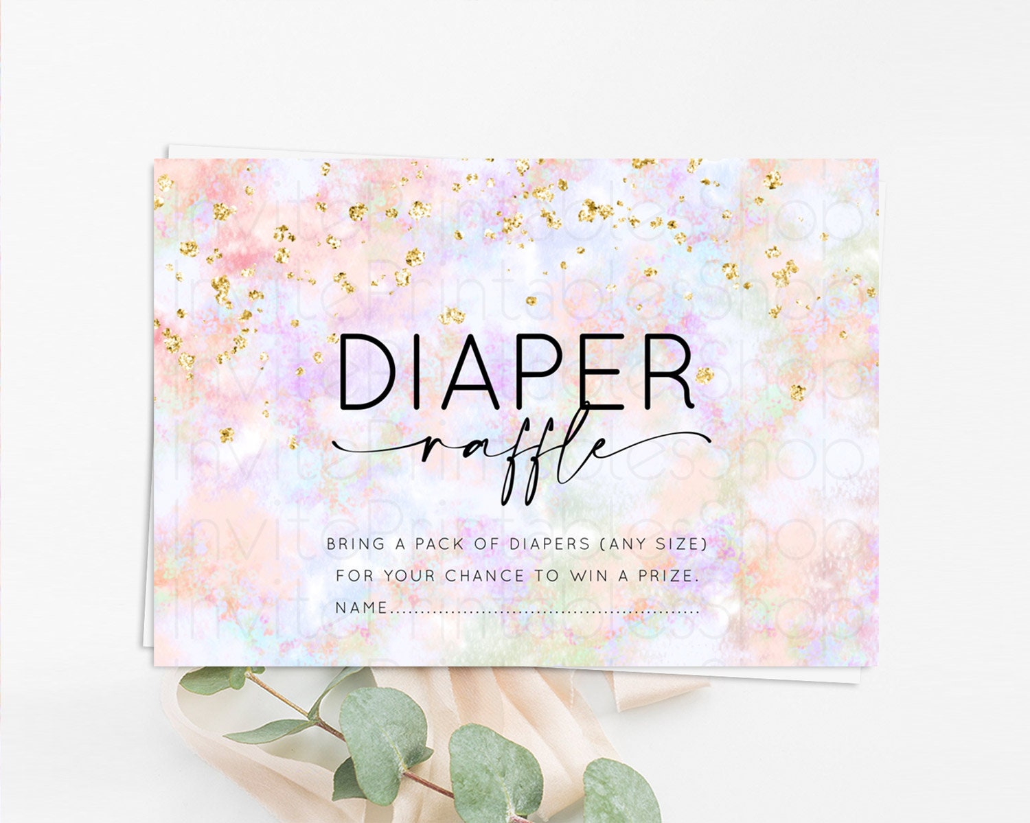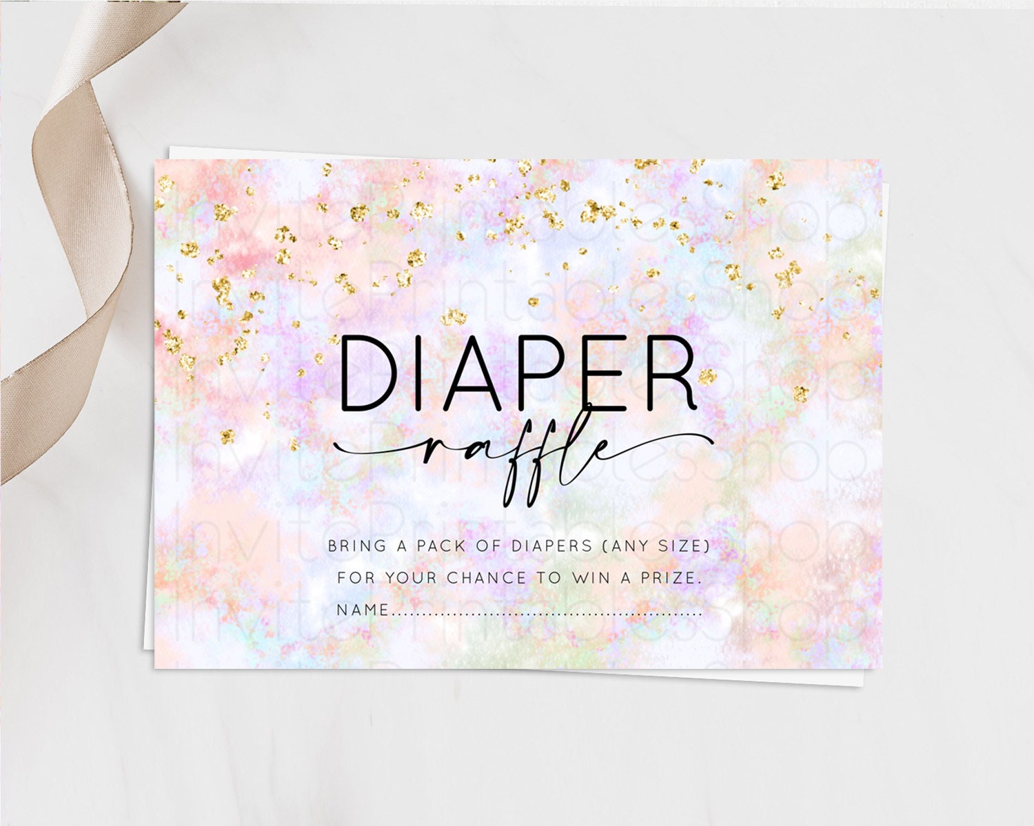 Pastel Diaper Raffle Card Pastel Rainbow Diaper Raffle Insert Colorful Ombre Watercolor Diaper Ticket Confetti Glitter Raffle Game D10649