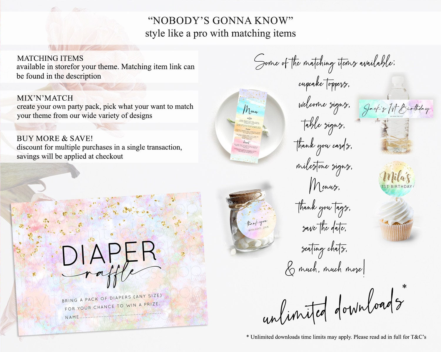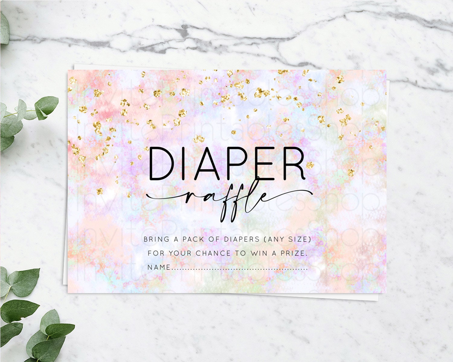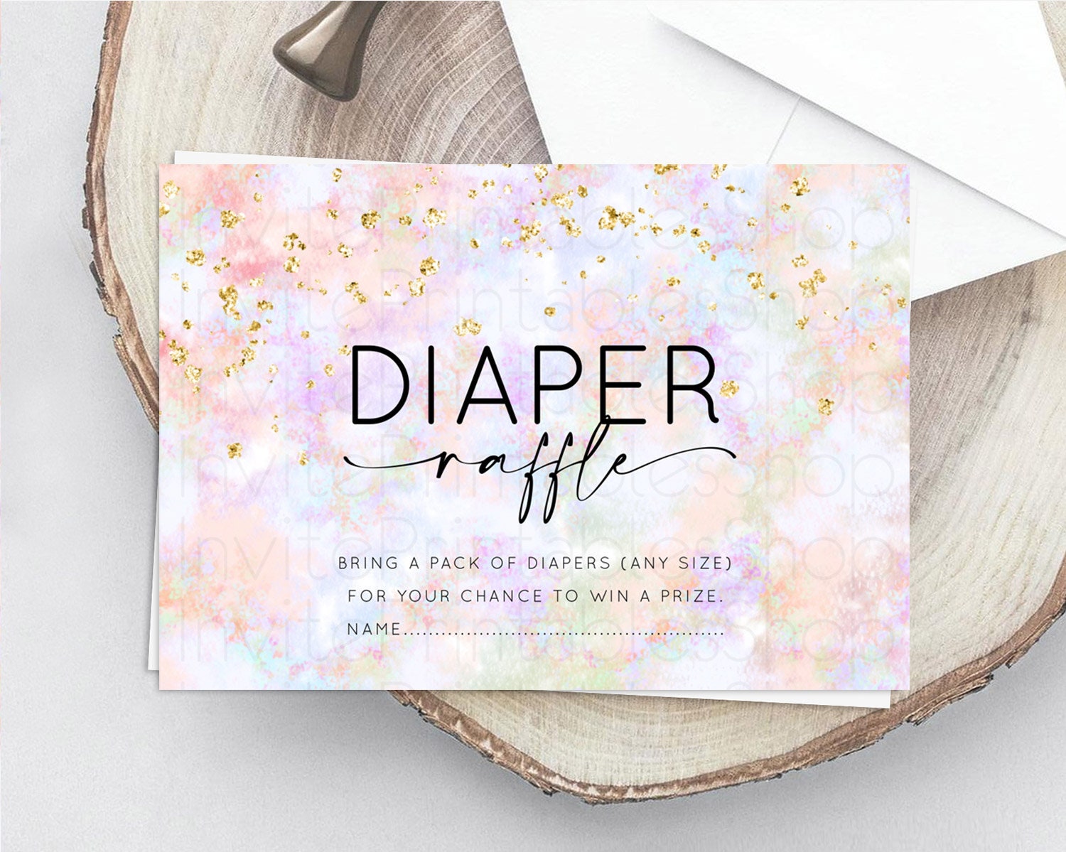 Pastel Diaper Raffle Card Pastel Rainbow Diaper Raffle Insert Colorful Ombre Watercolor Diaper Ticket Confetti Glitter Raffle Game D10649