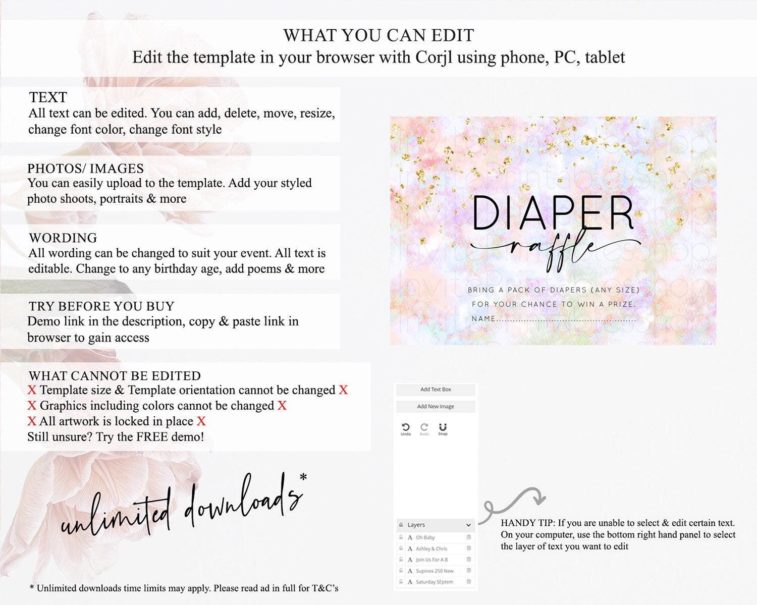 • After purchase, Corjl emails your editing link. Allow up to 15 minutes for delivery.