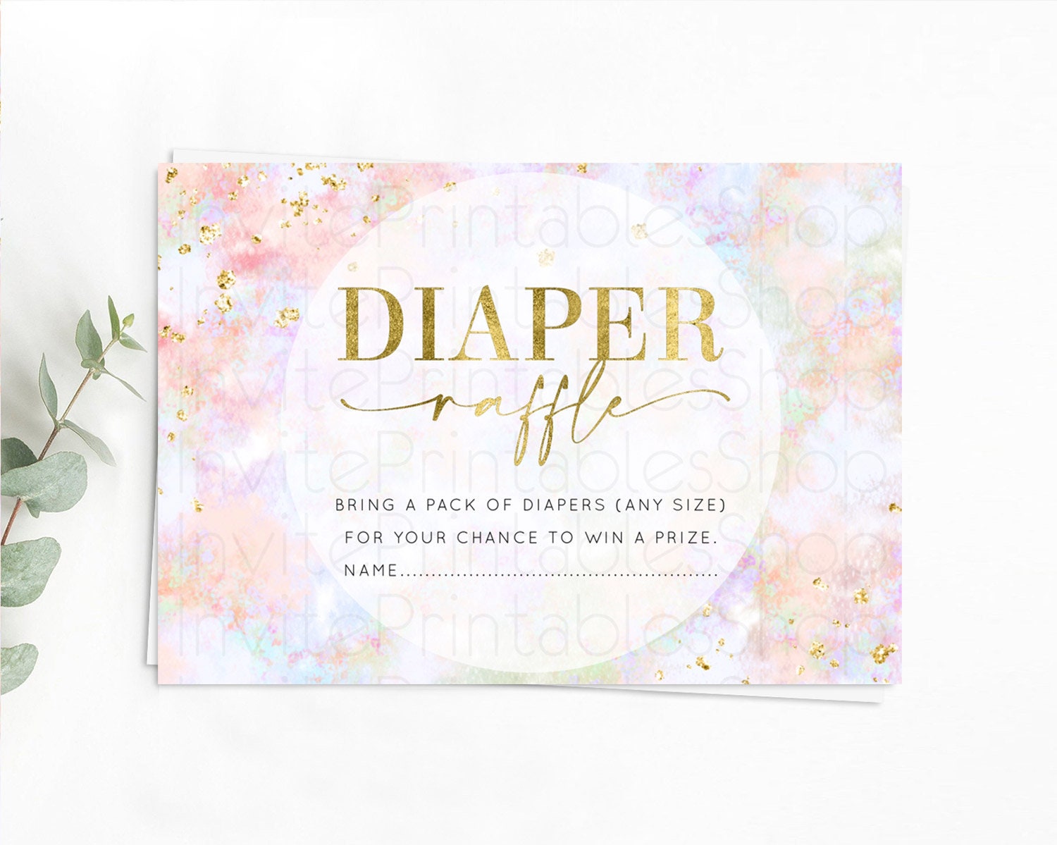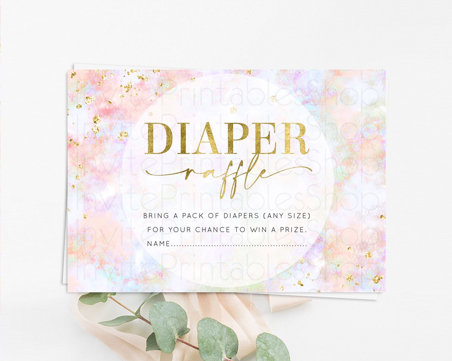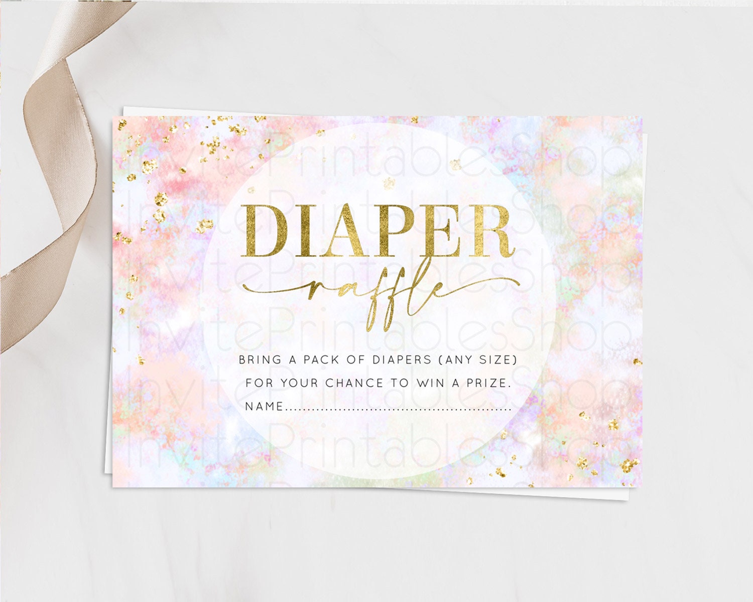 Pastel Diaper Raffle Card Pastel Rainbow Diaper Raffle Insert Colorful Ombre Watercolor Diaper Ticket Confetti Glitter Raffle Game D10649