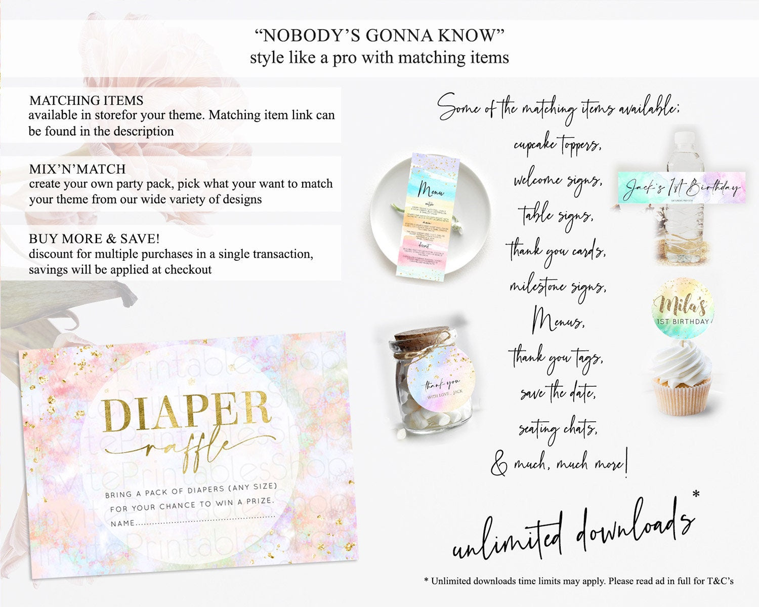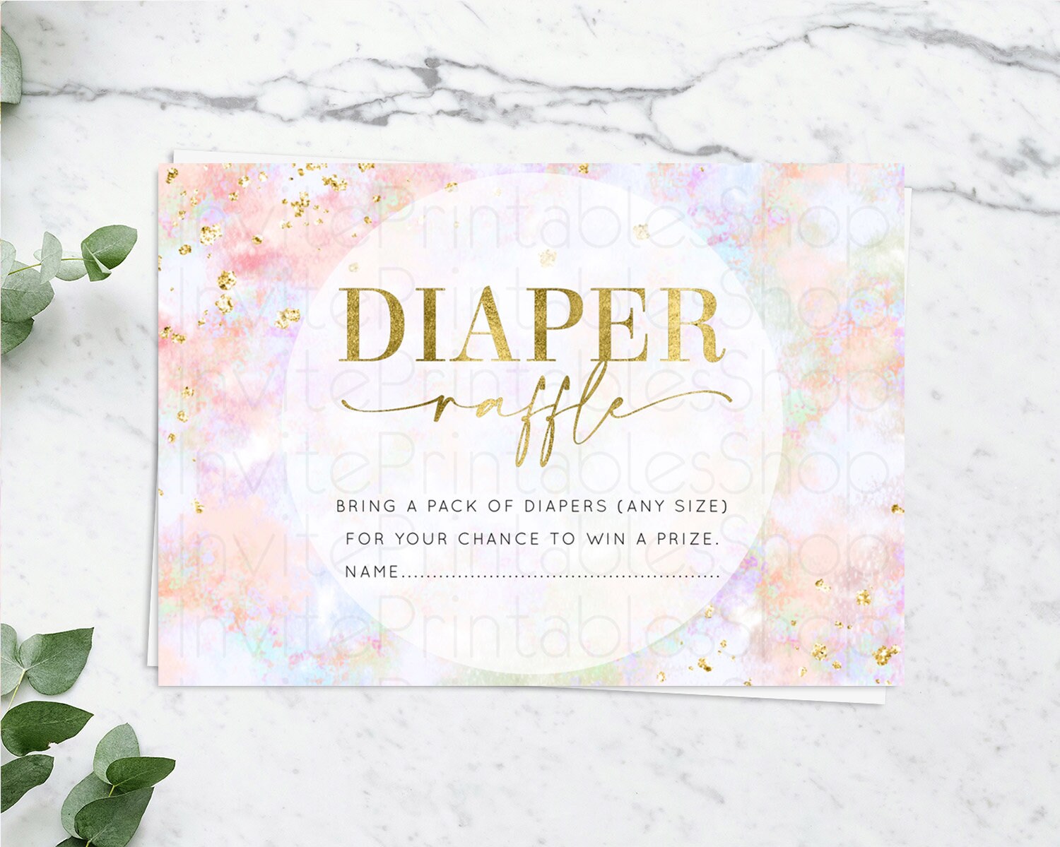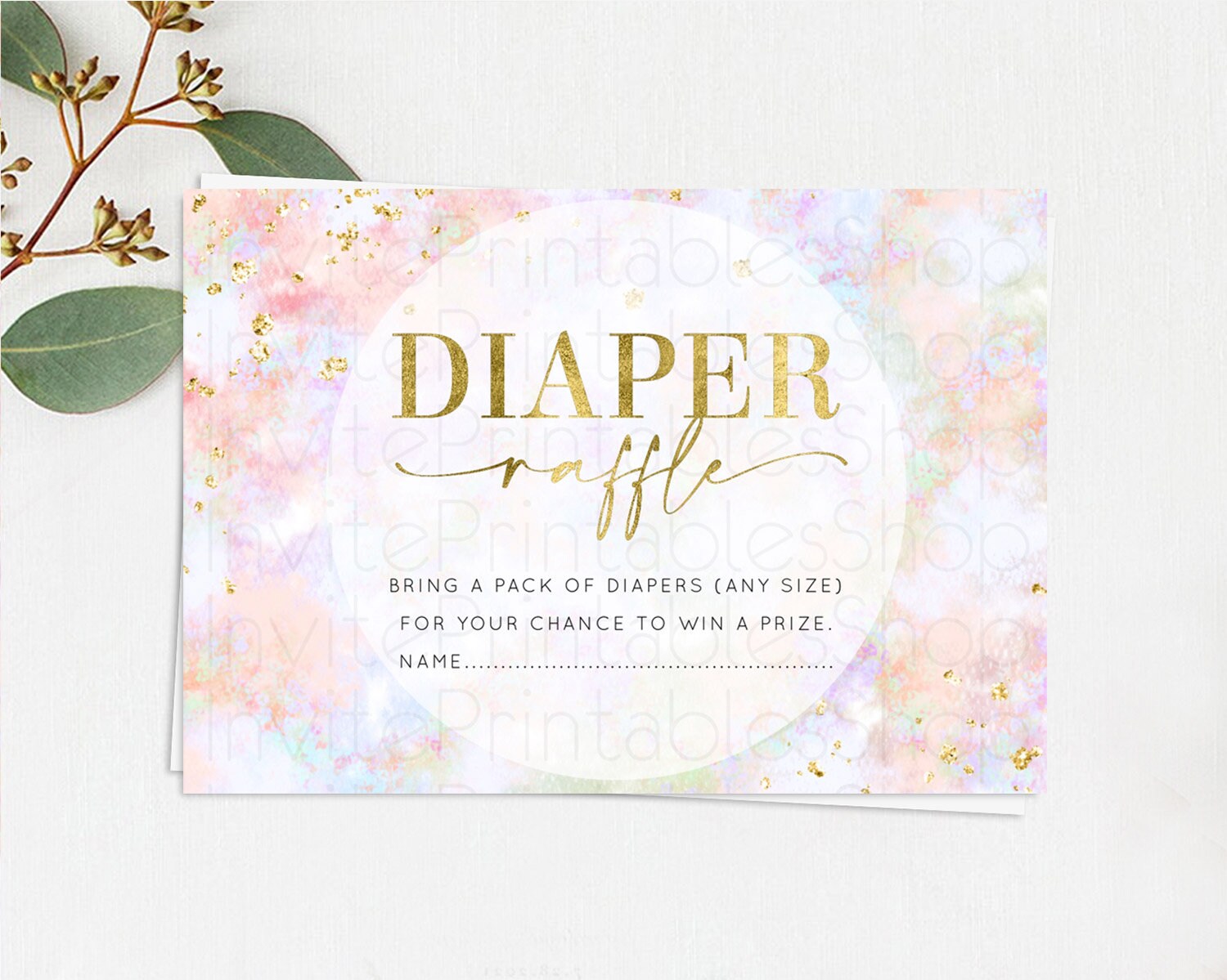 Pastel Diaper Raffle Card Pastel Rainbow Diaper Raffle Insert Colorful Ombre Watercolor Diaper Ticket Confetti Glitter Raffle Game D10649