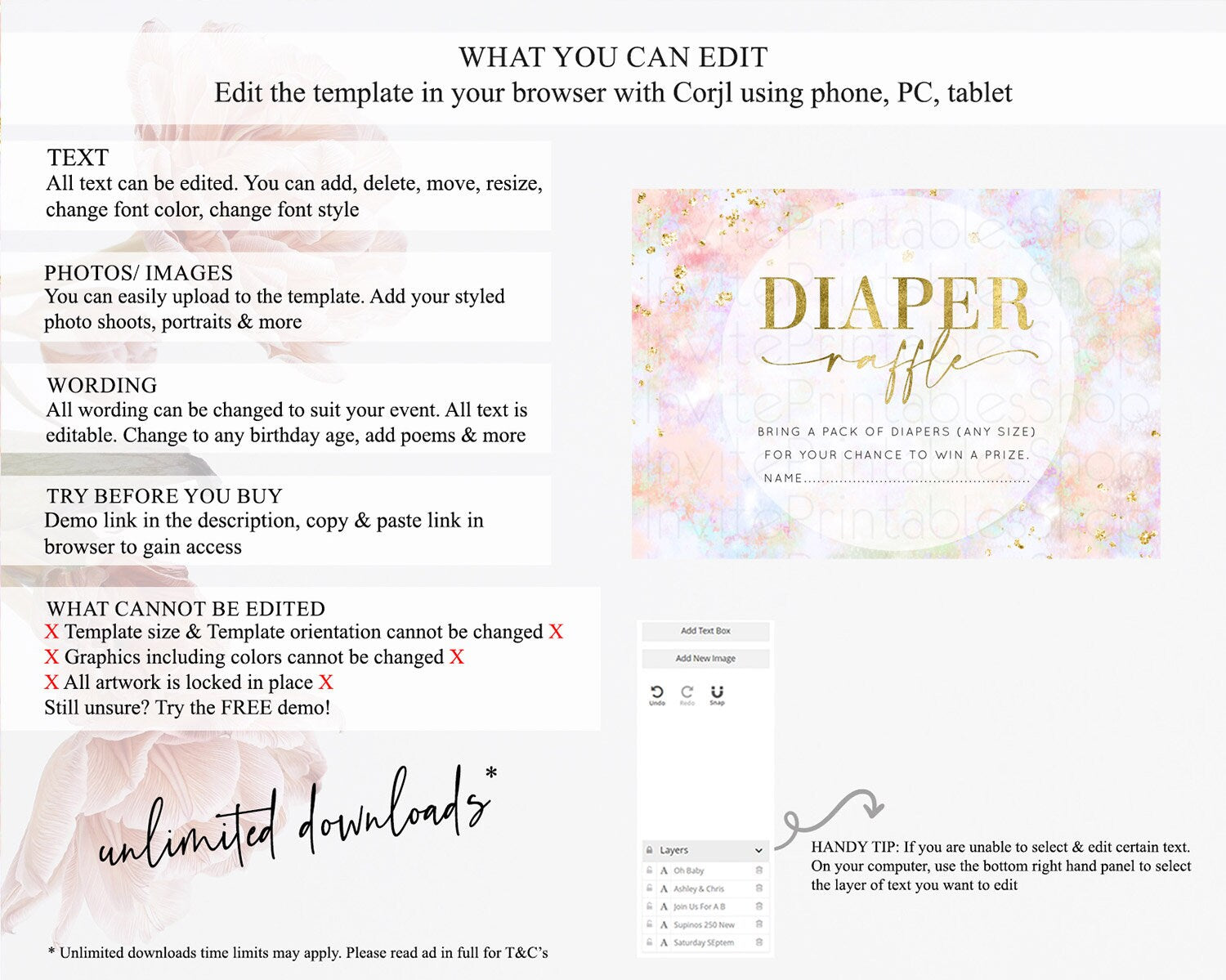 • After purchase, Corjl emails your editing link. Allow up to 15 minutes for delivery.