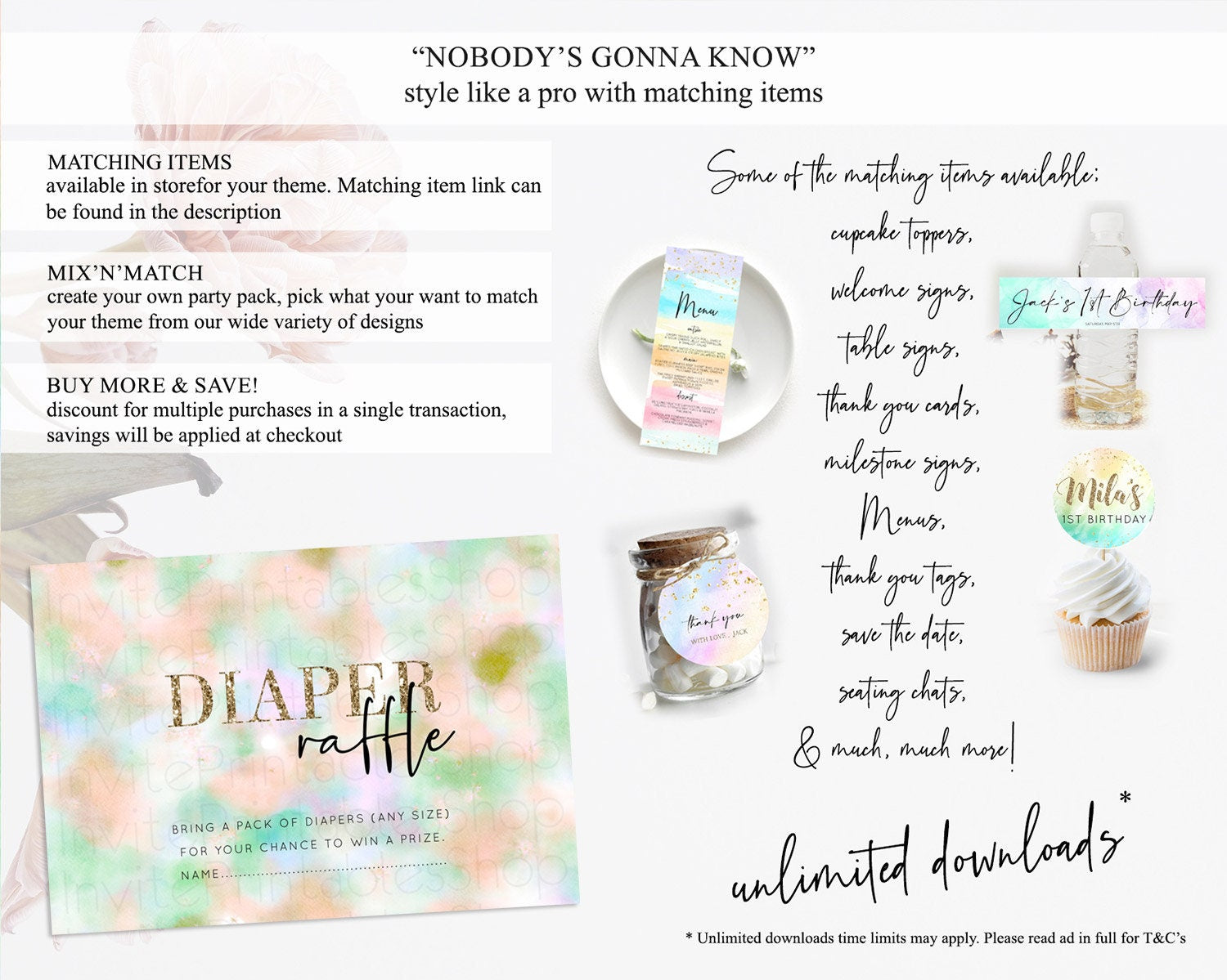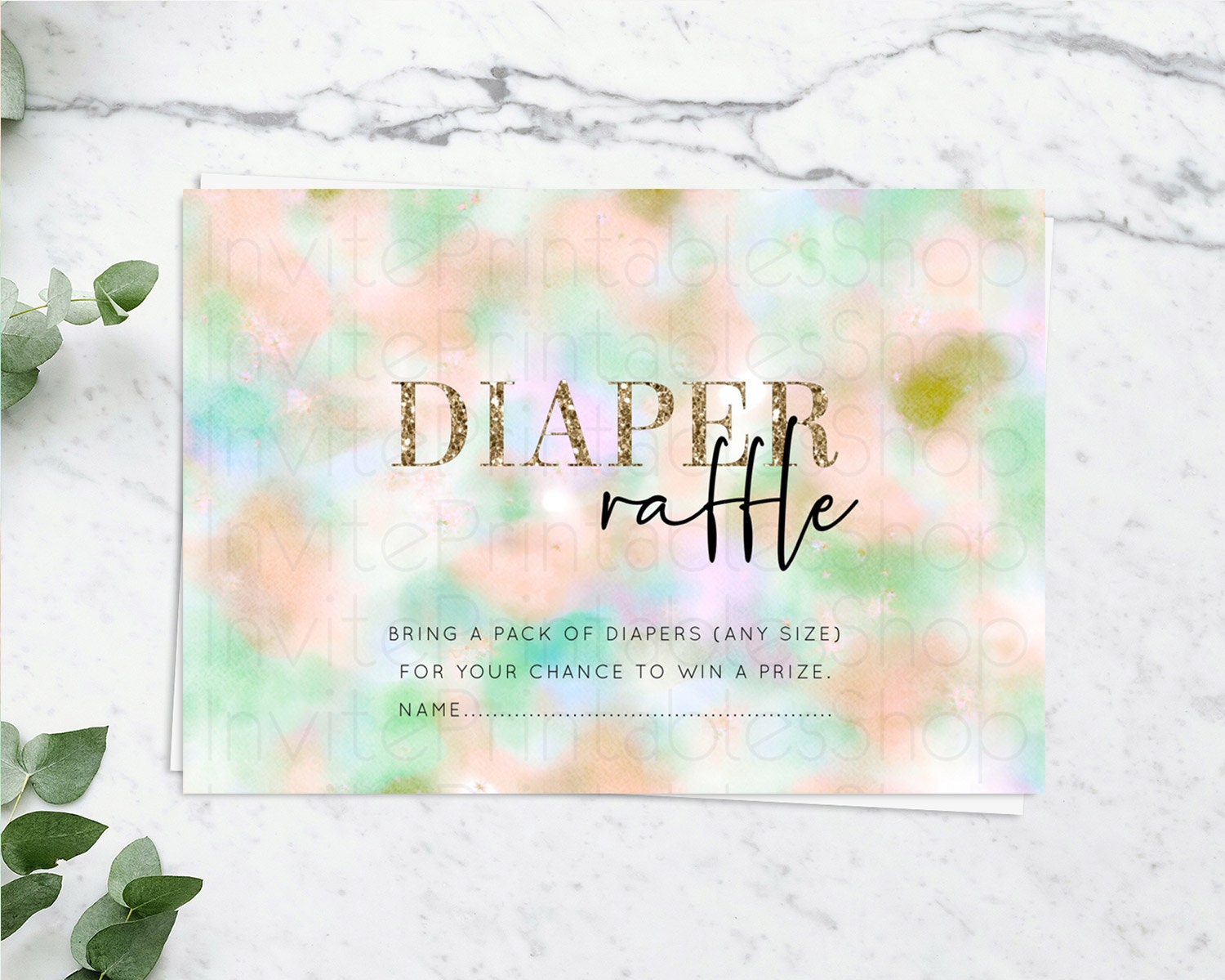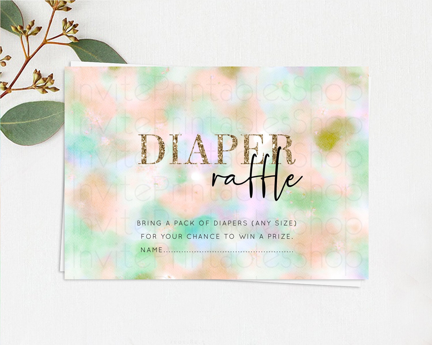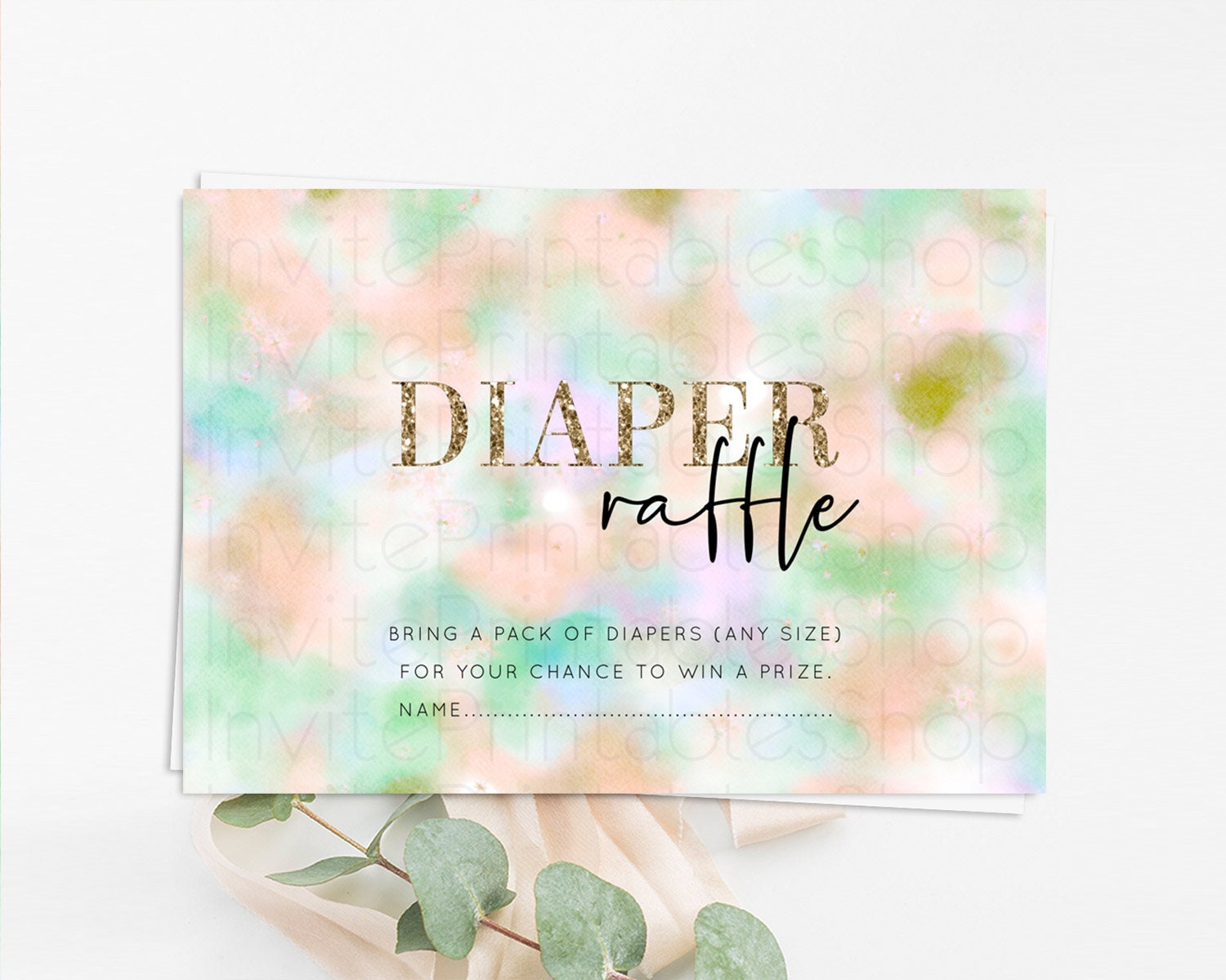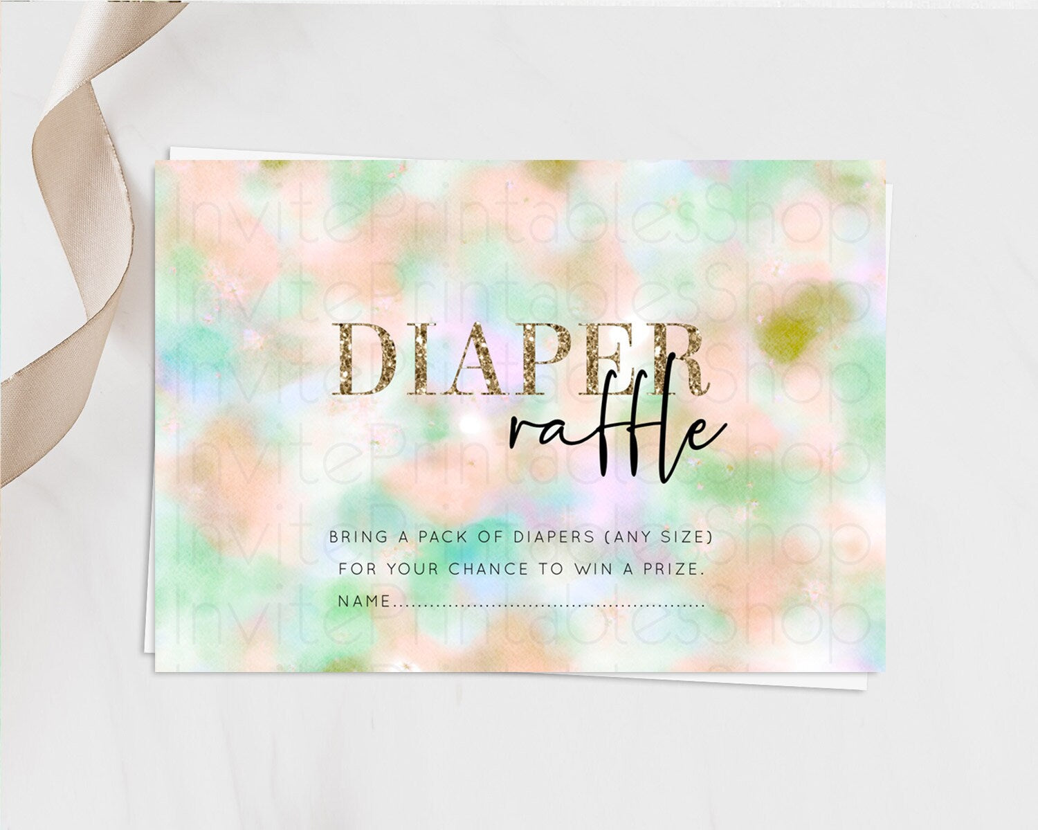 Pastel Diaper Raffle Card Pastel Rainbow Diaper Raffle Insert Colorful Ombre Watercolor Diaper Ticket Confetti Glitter Raffle Game D10693