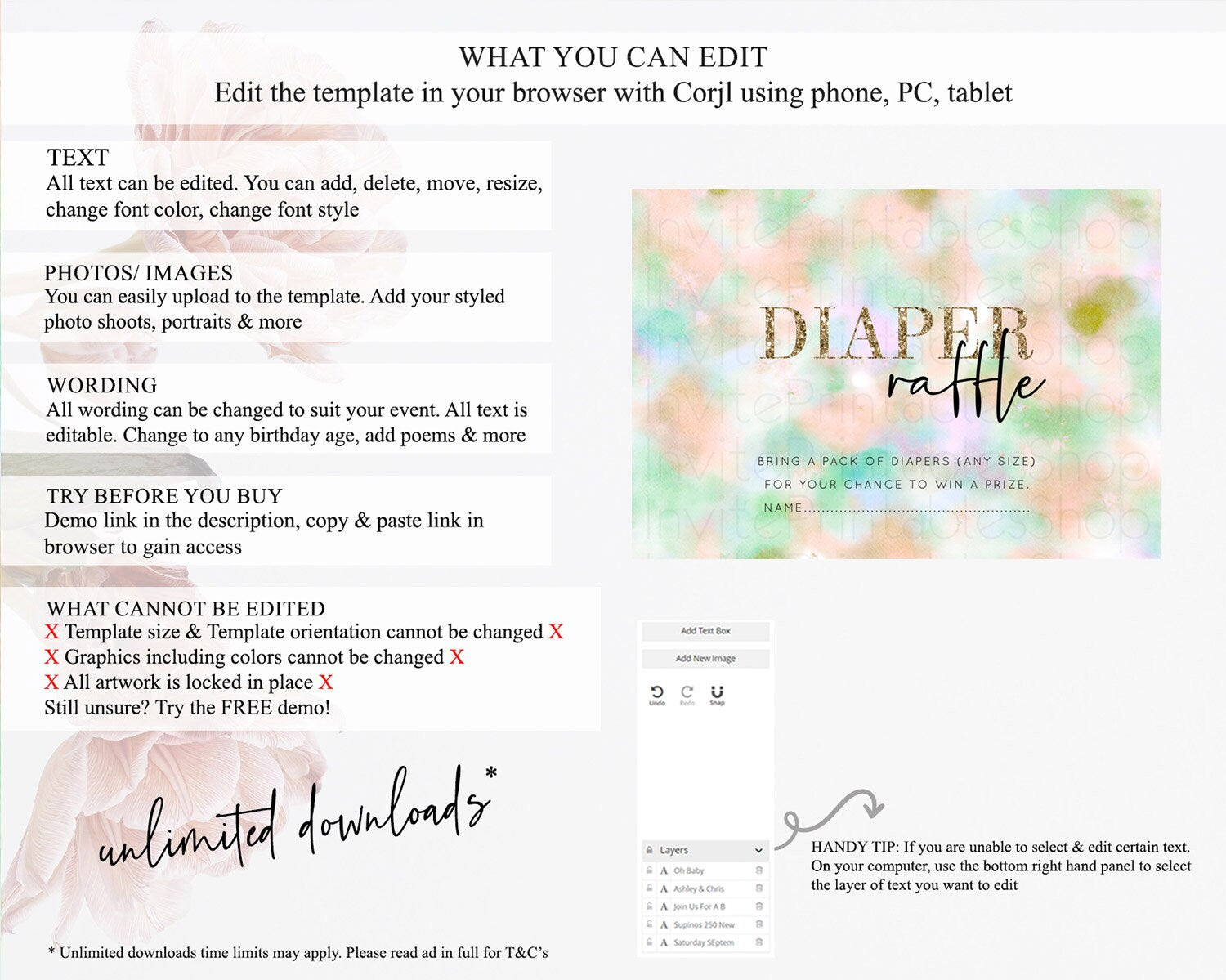 • After purchase, Corjl emails your editing link. Allow up to 15 minutes for delivery.