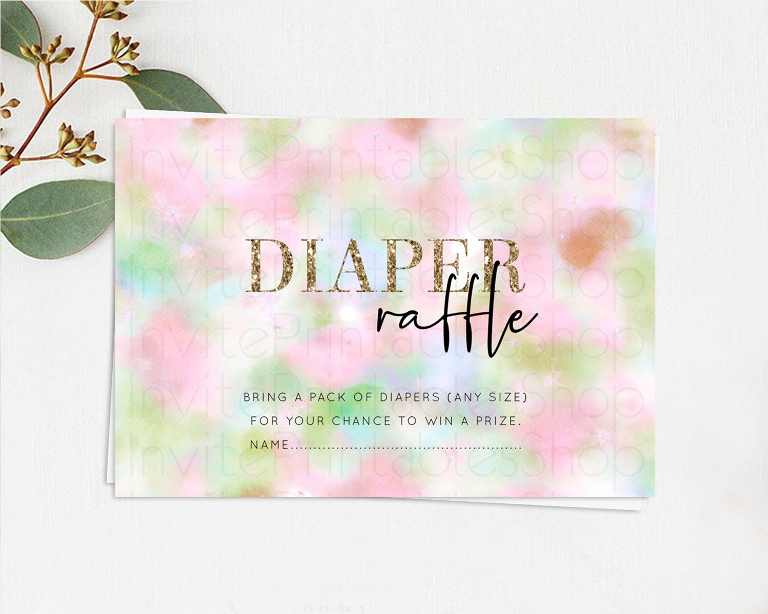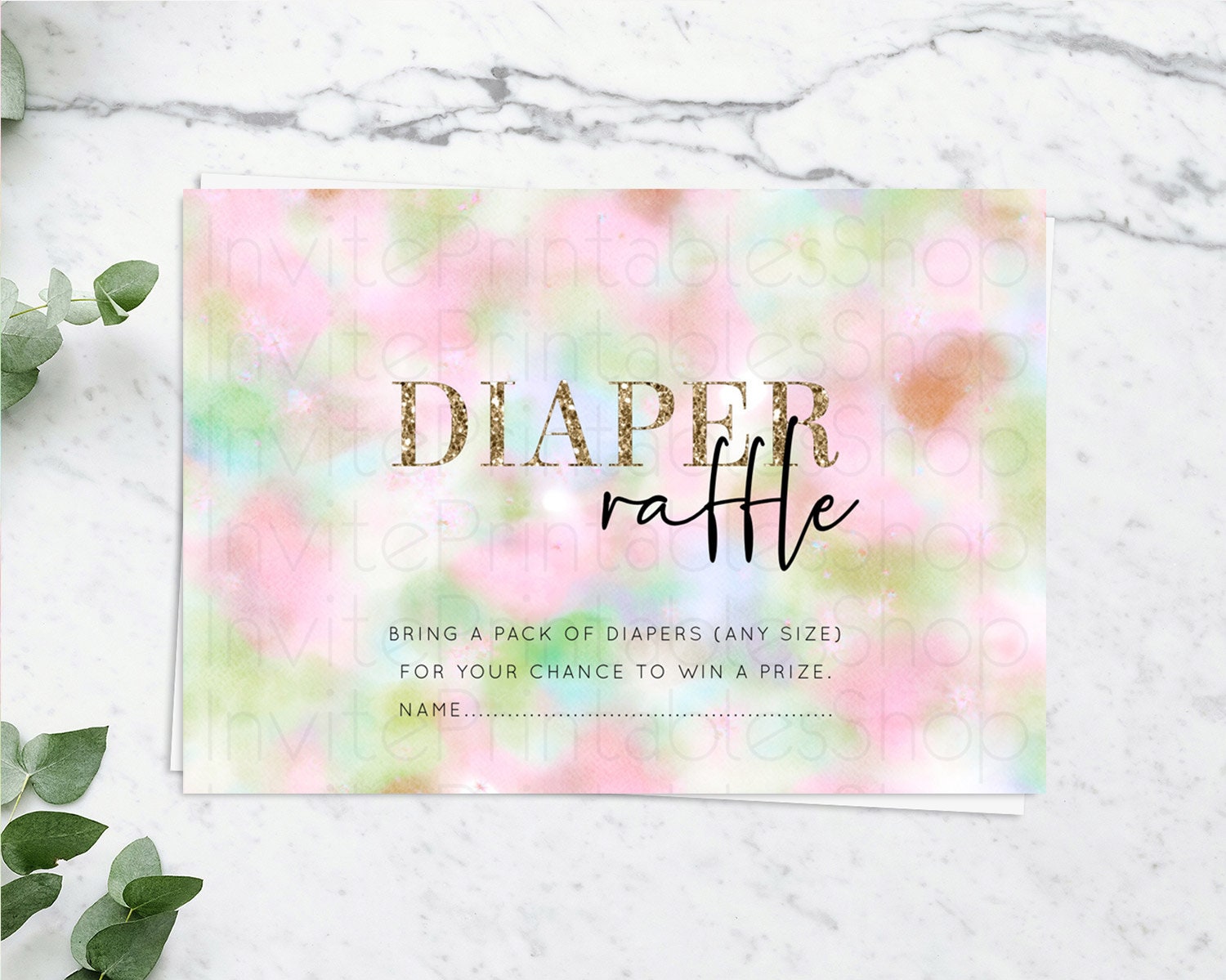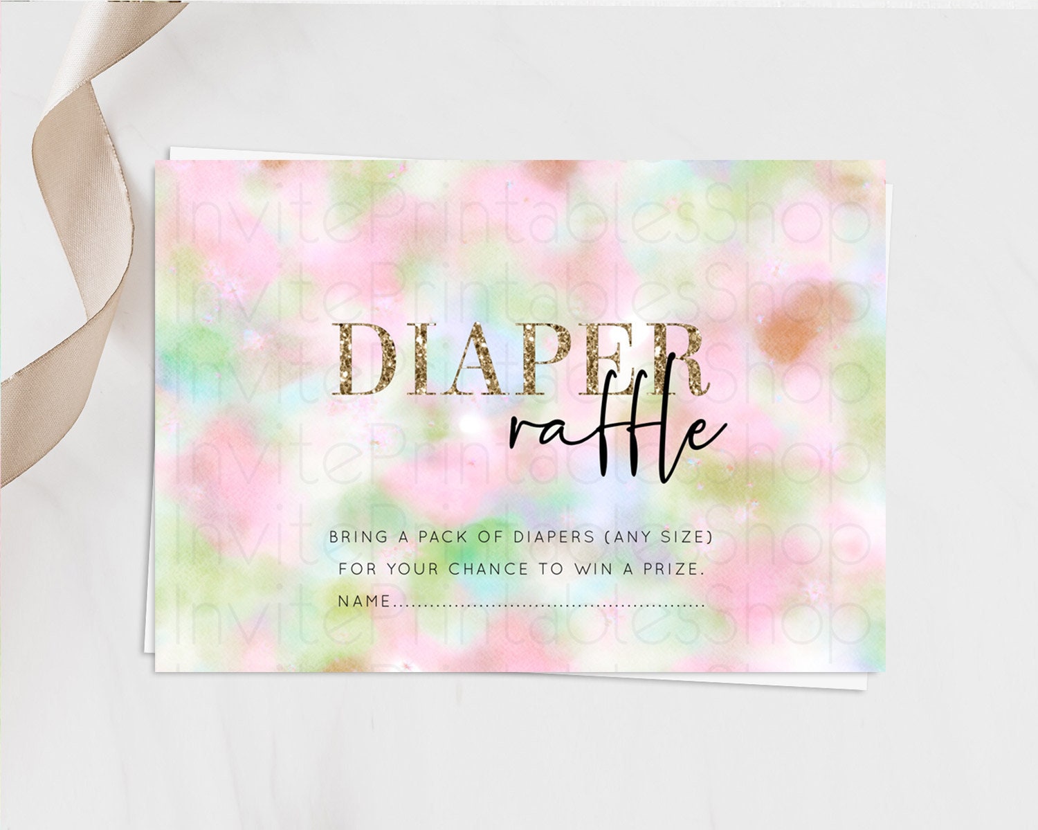 Pastel Diaper Raffle Card Pastel Rainbow Diaper Raffle Insert Colorful Ombre Watercolor Diaper Ticket Confetti Glitter Raffle Game D10698