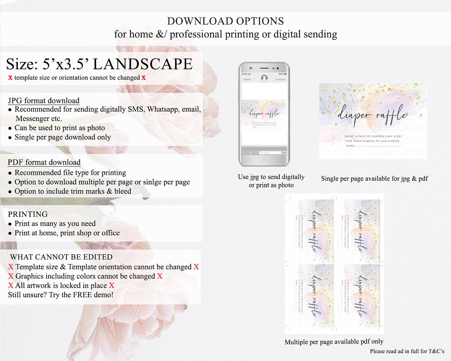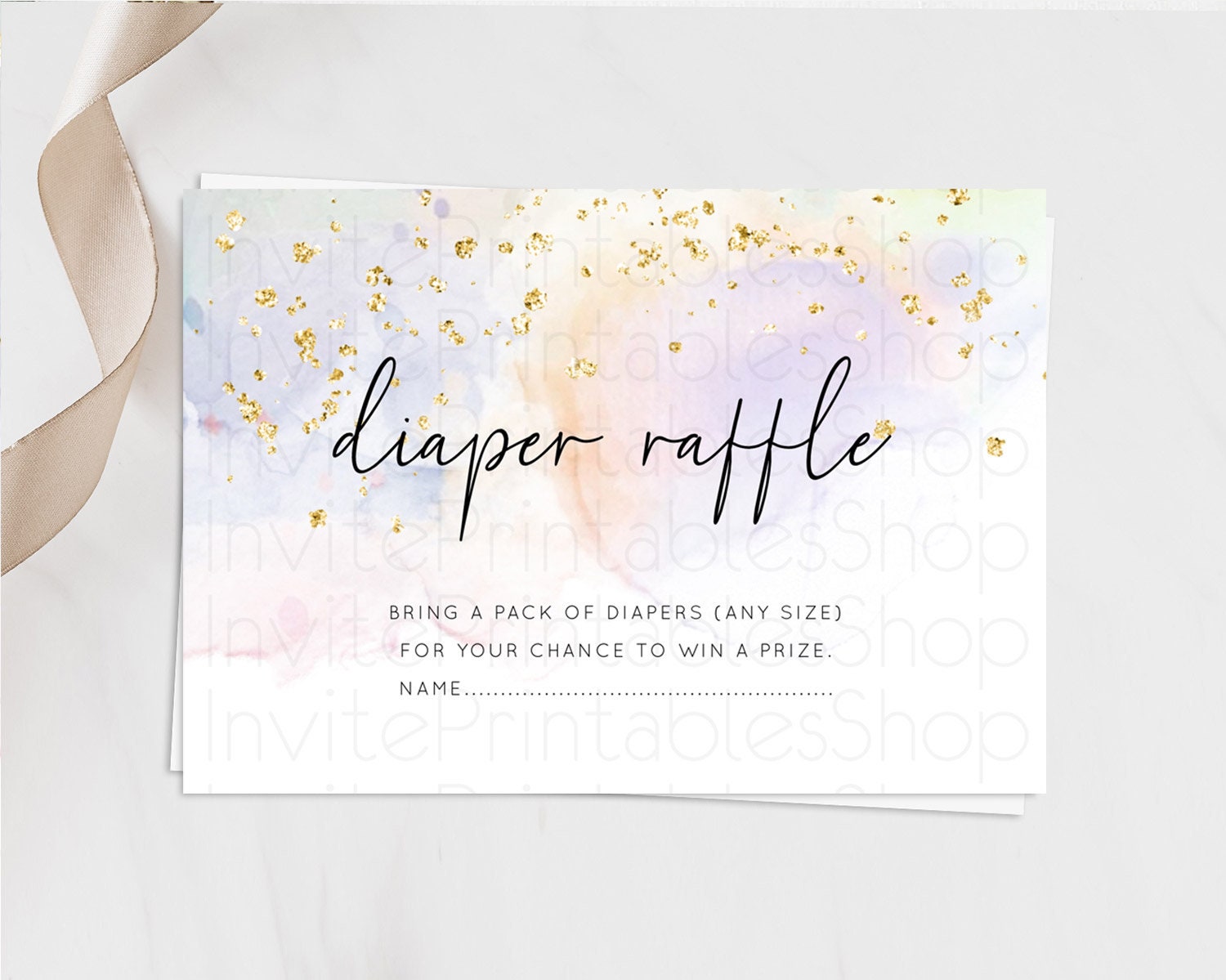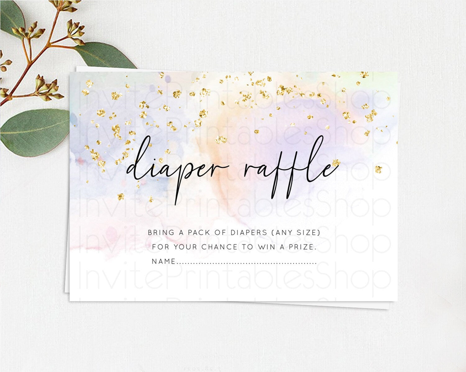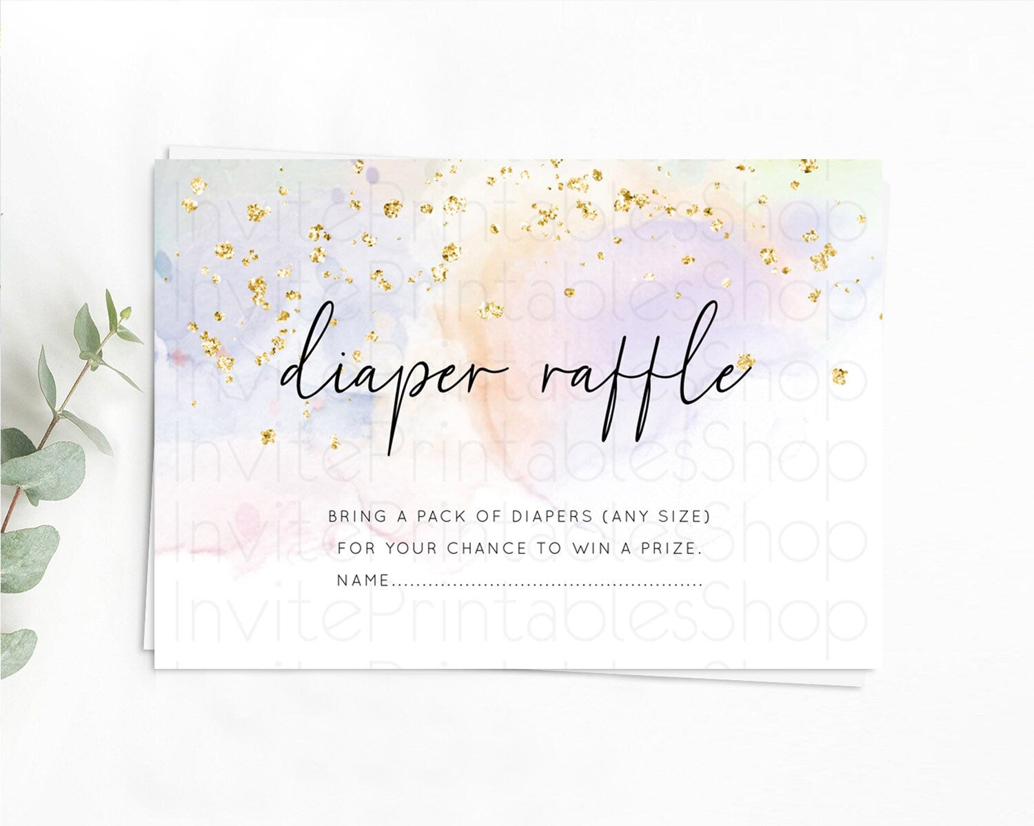 Pastel Diaper Raffle Card Pastel Rainbow Diaper Raffle Insert Colorful Ombre Watercolor Diaper Ticket Confetti Glitter Raffle Game D10769