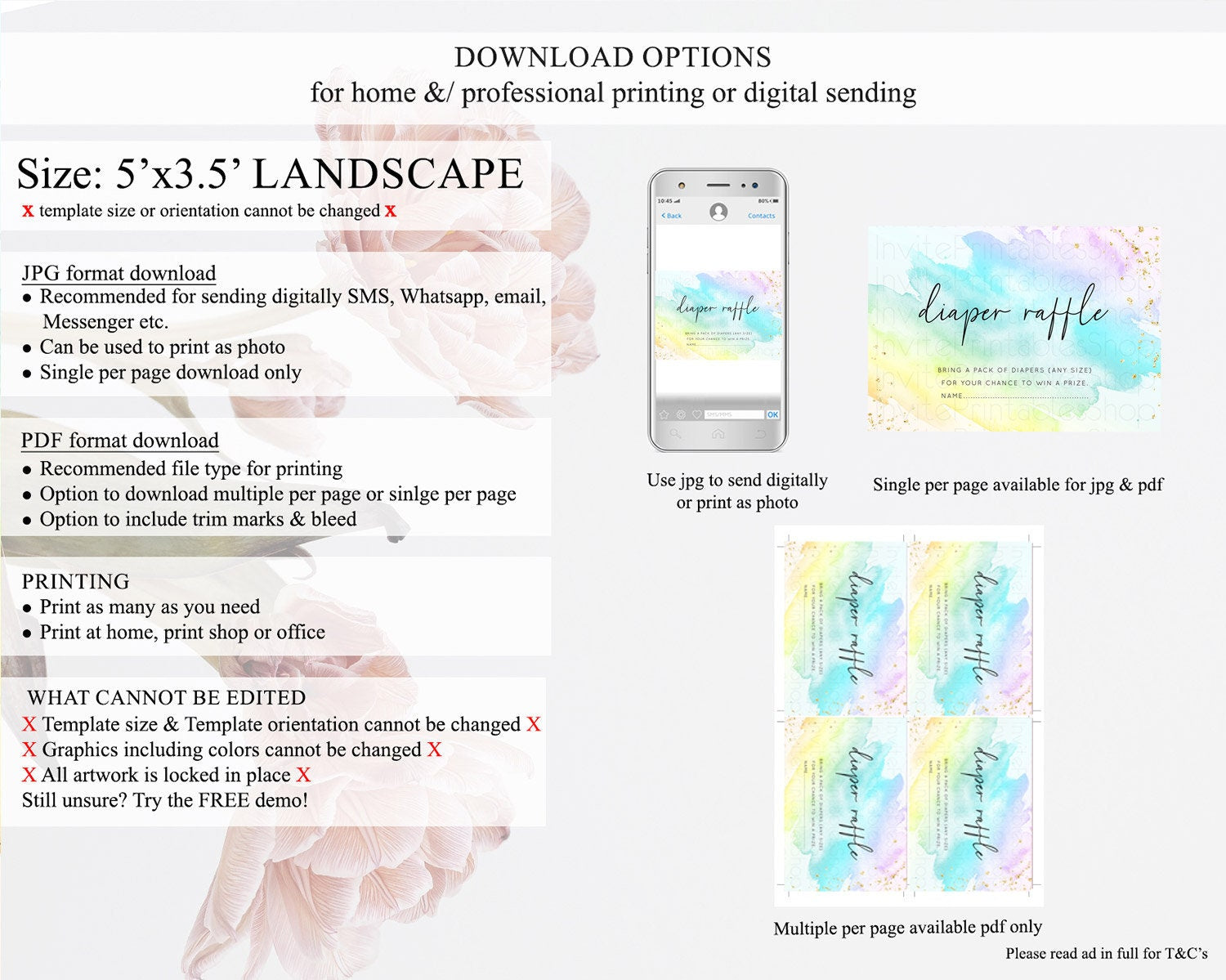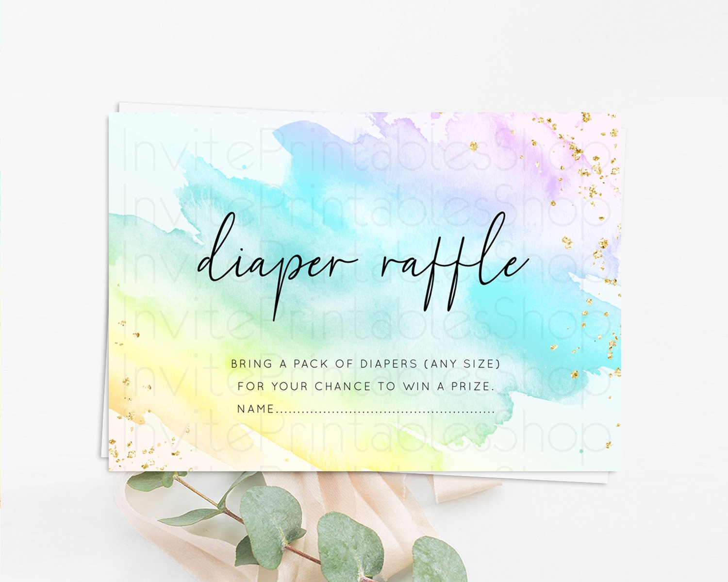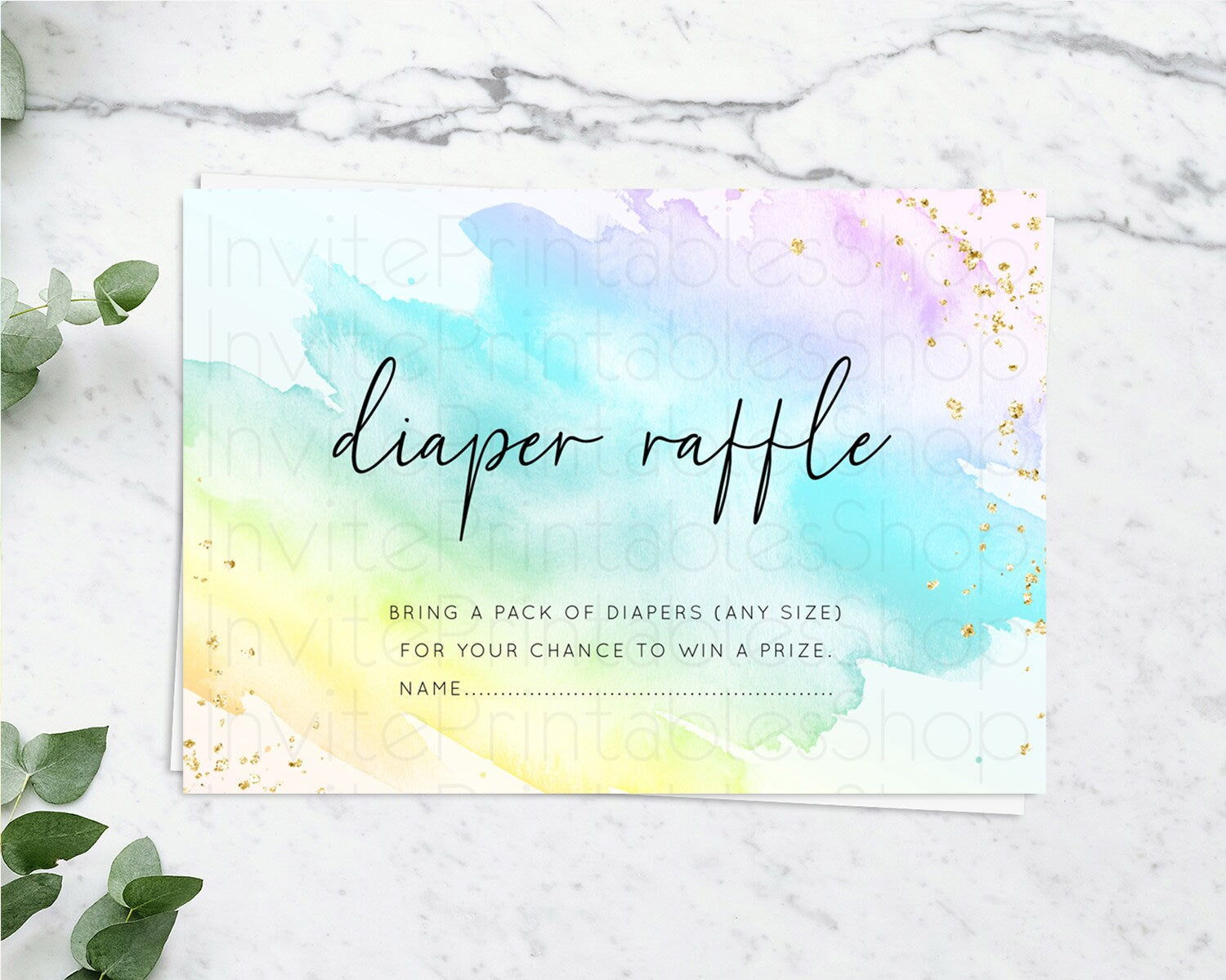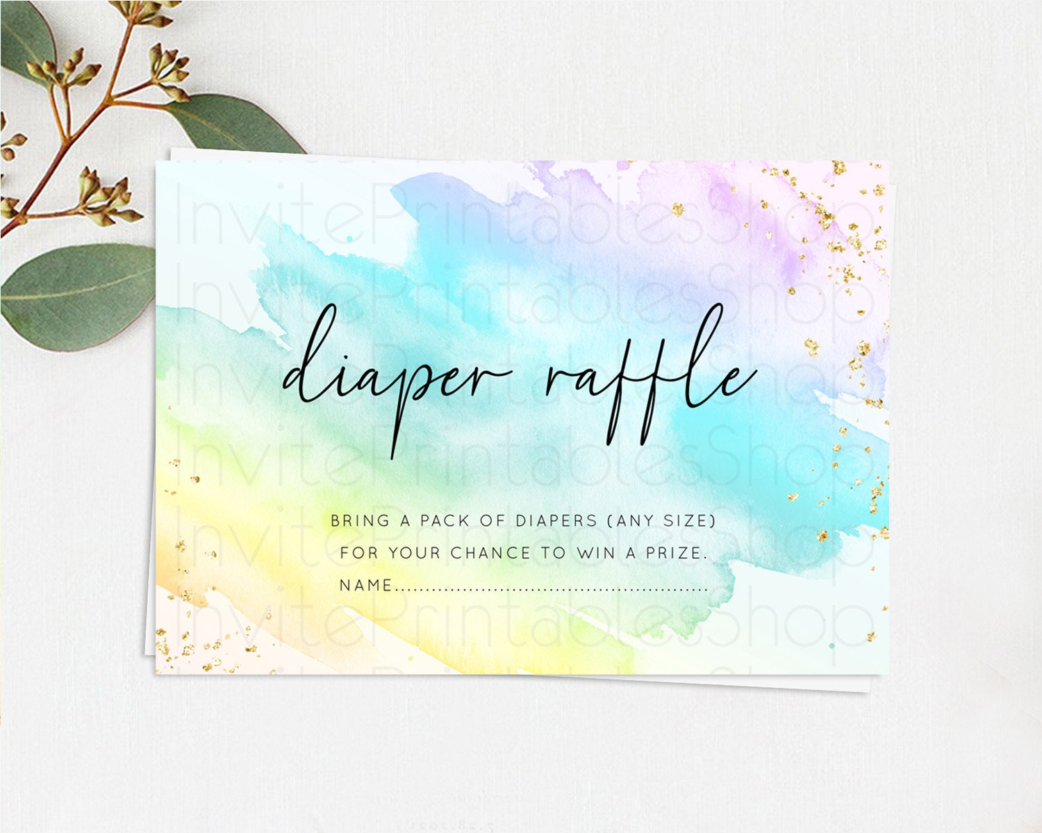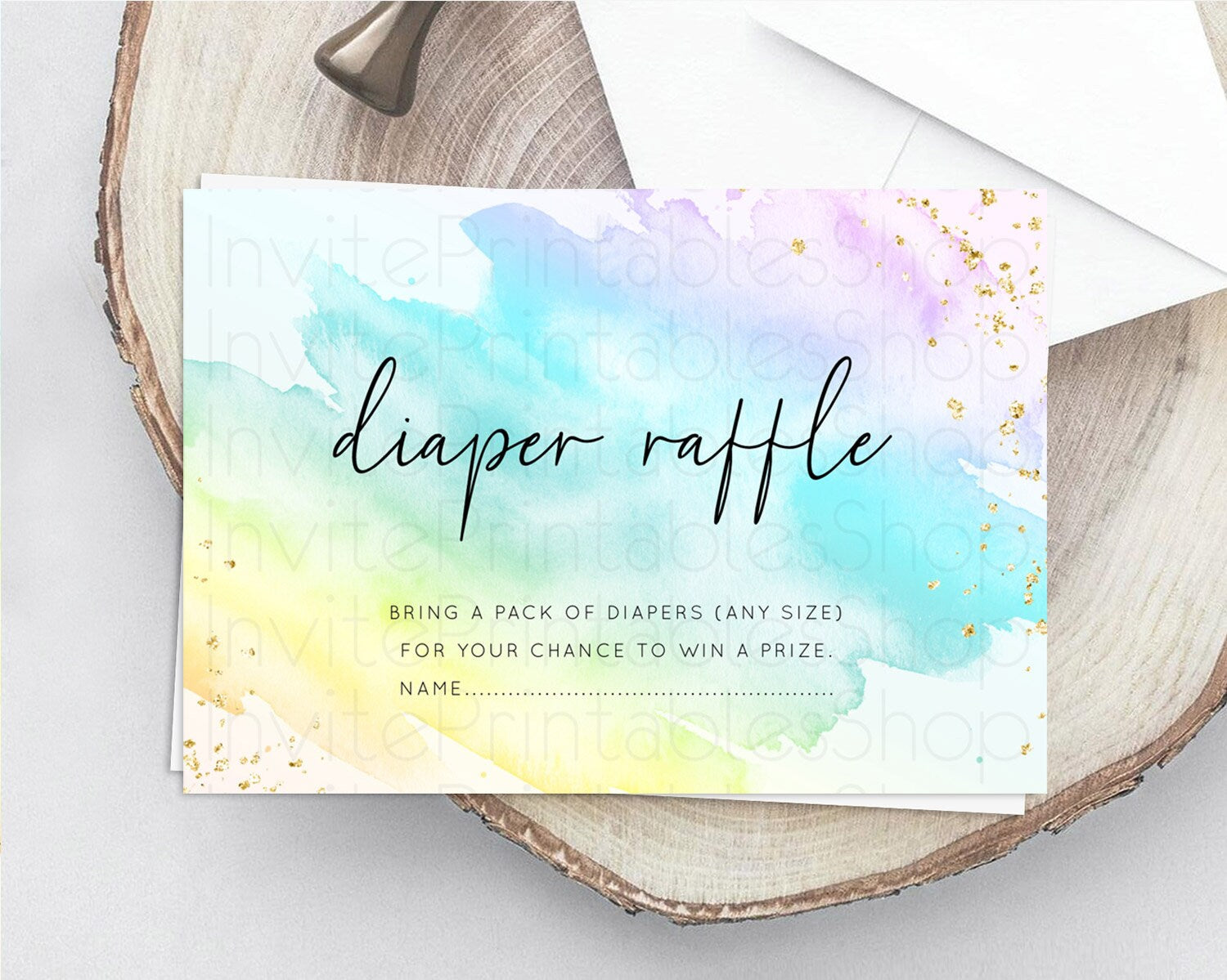 Pastel Diaper Raffle Card Pastel Rainbow Diaper Raffle Insert Colorful Ombre Watercolor Diaper Ticket Confetti Glitter Raffle Game D10773