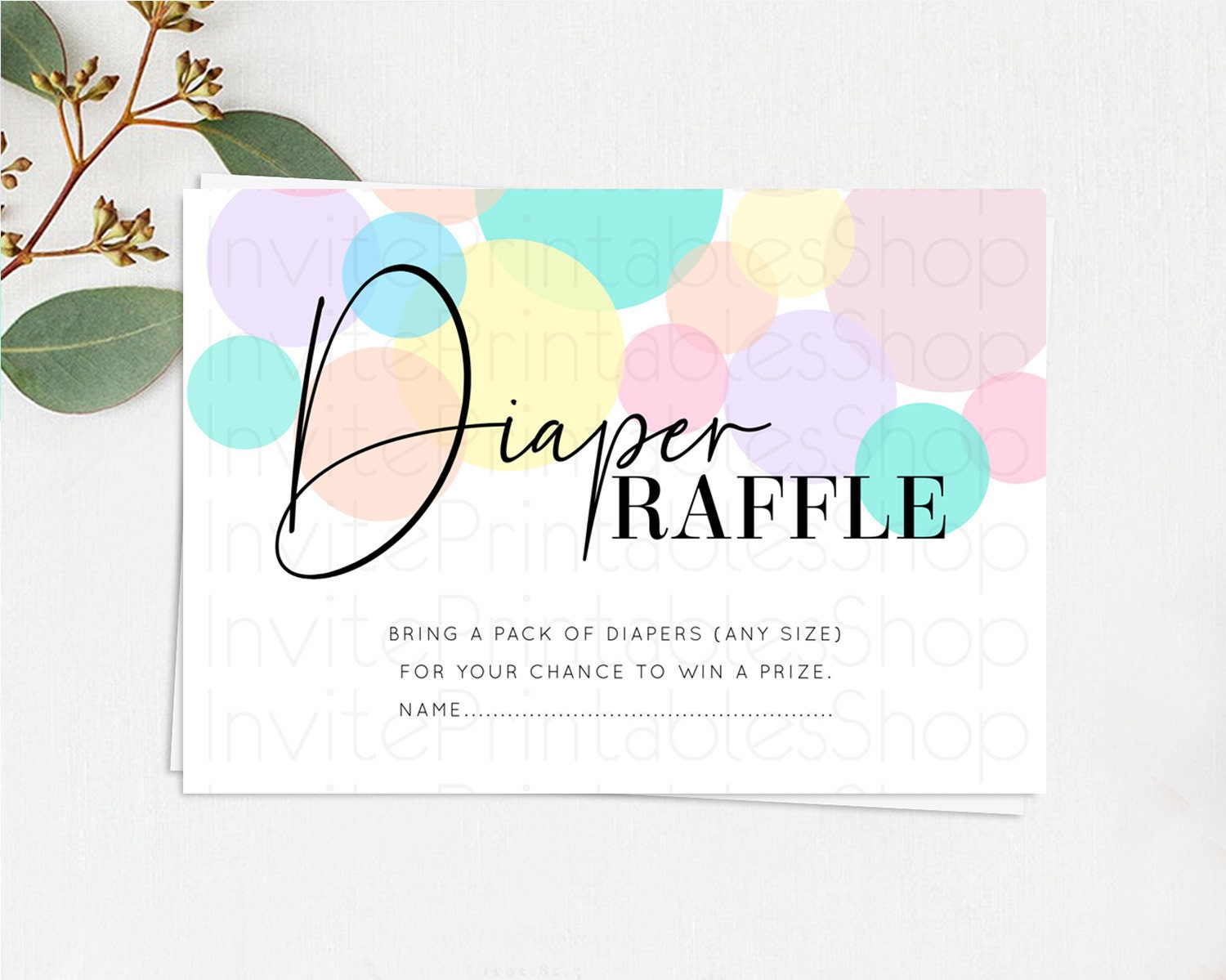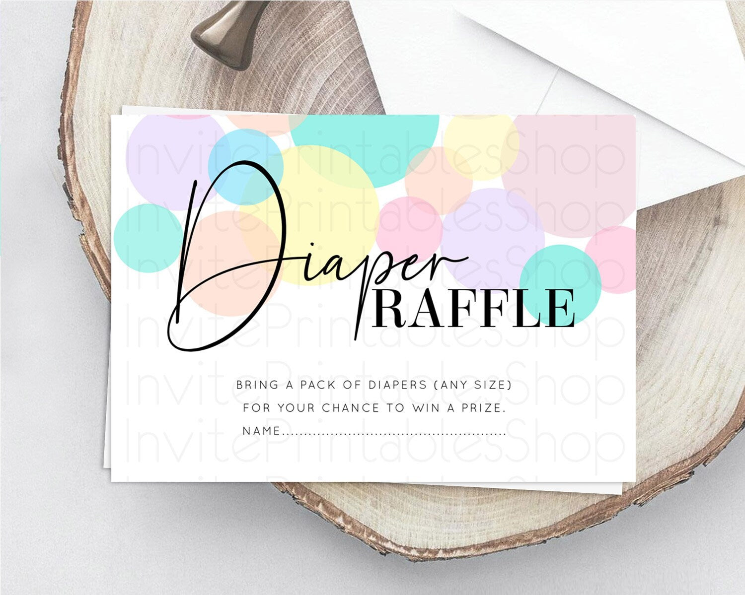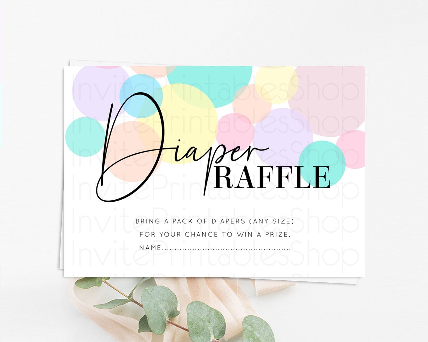 Pastel Diaper Raffle Card Pastel Rainbow Diaper Raffle Insert Colorful Ombre Watercolor Diaper Ticket Confetti Glitter Raffle Game D10784