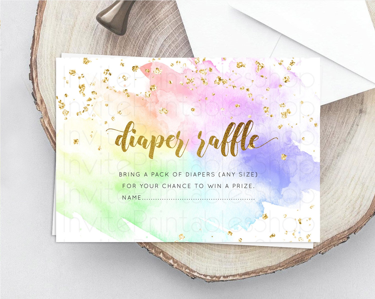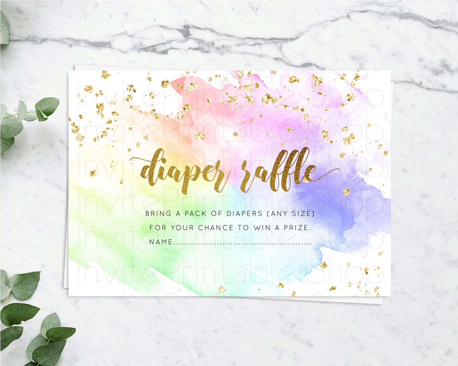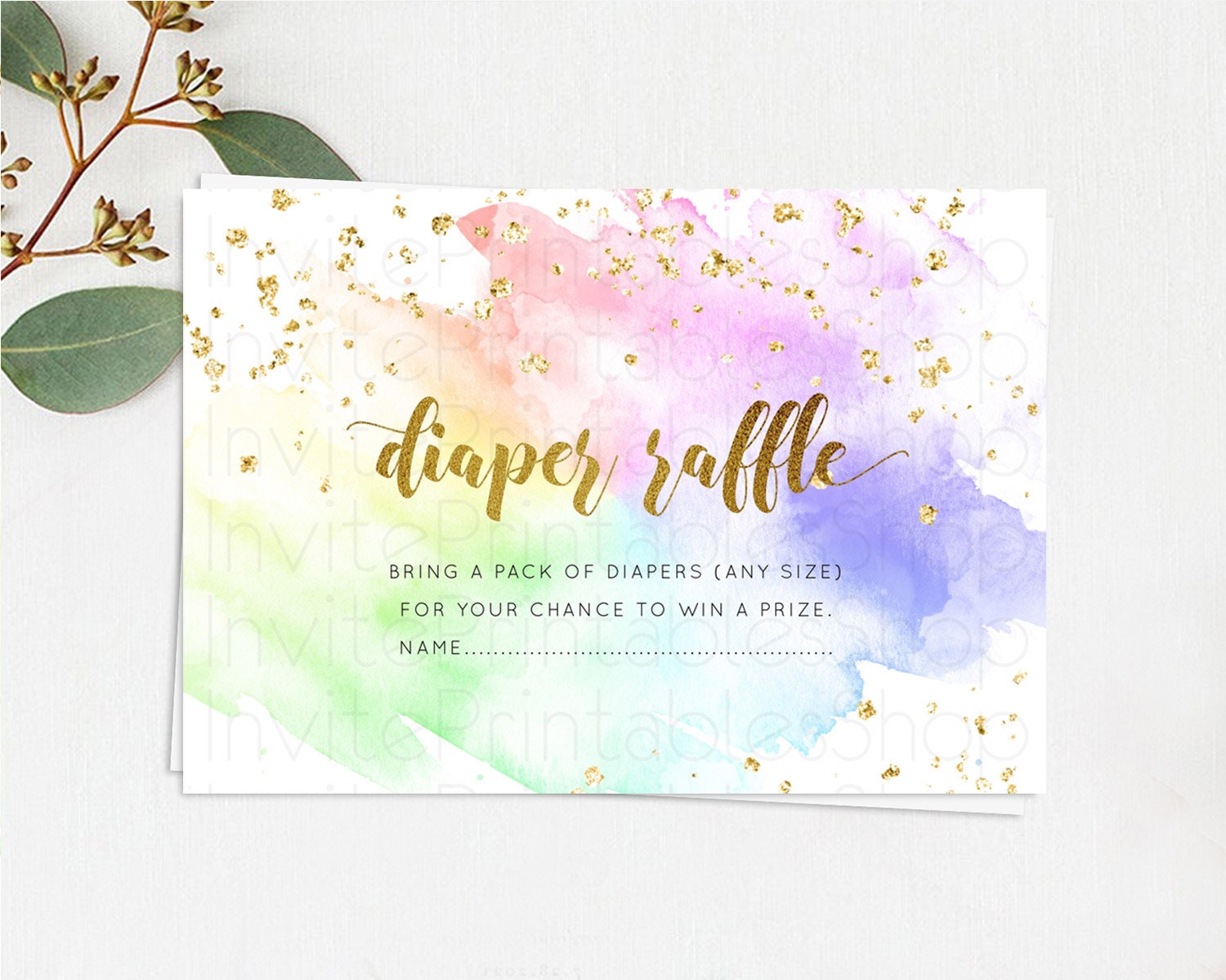 Pastel Diaper Raffle Card Pastel Rainbow Diaper Raffle Insert Colorful Ombre Watercolor Diaper Ticket Confetti Glitter Raffle Game D10876