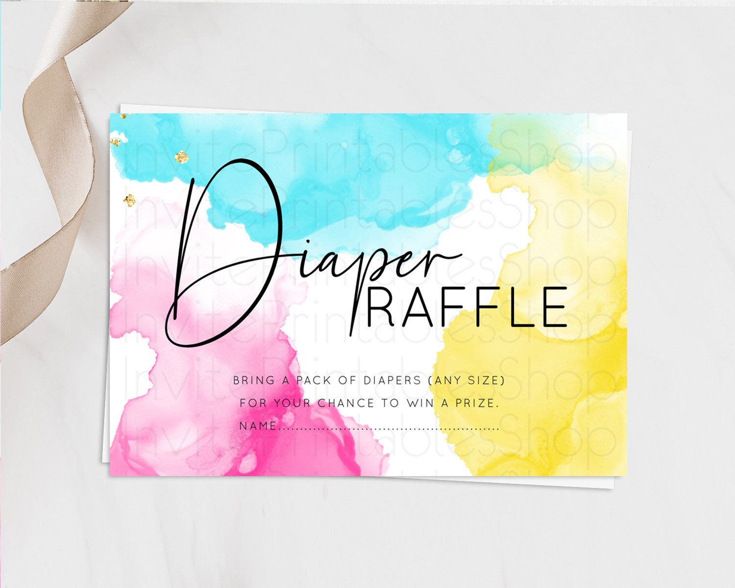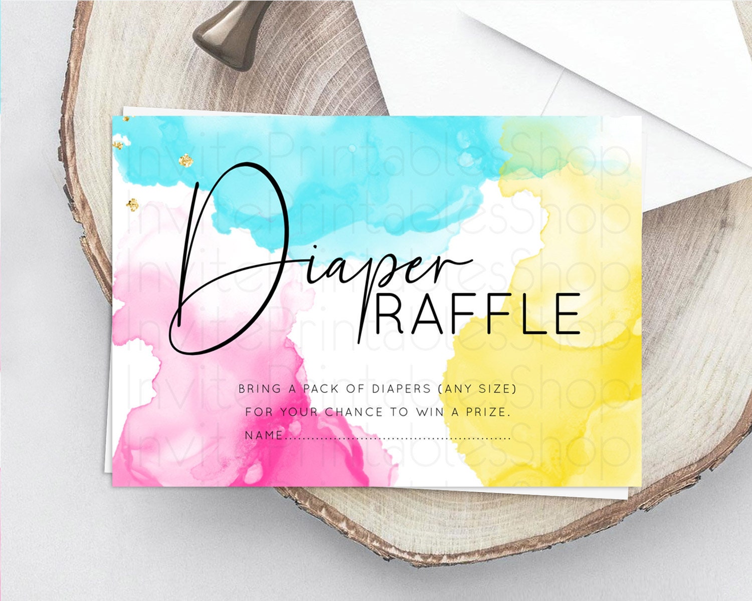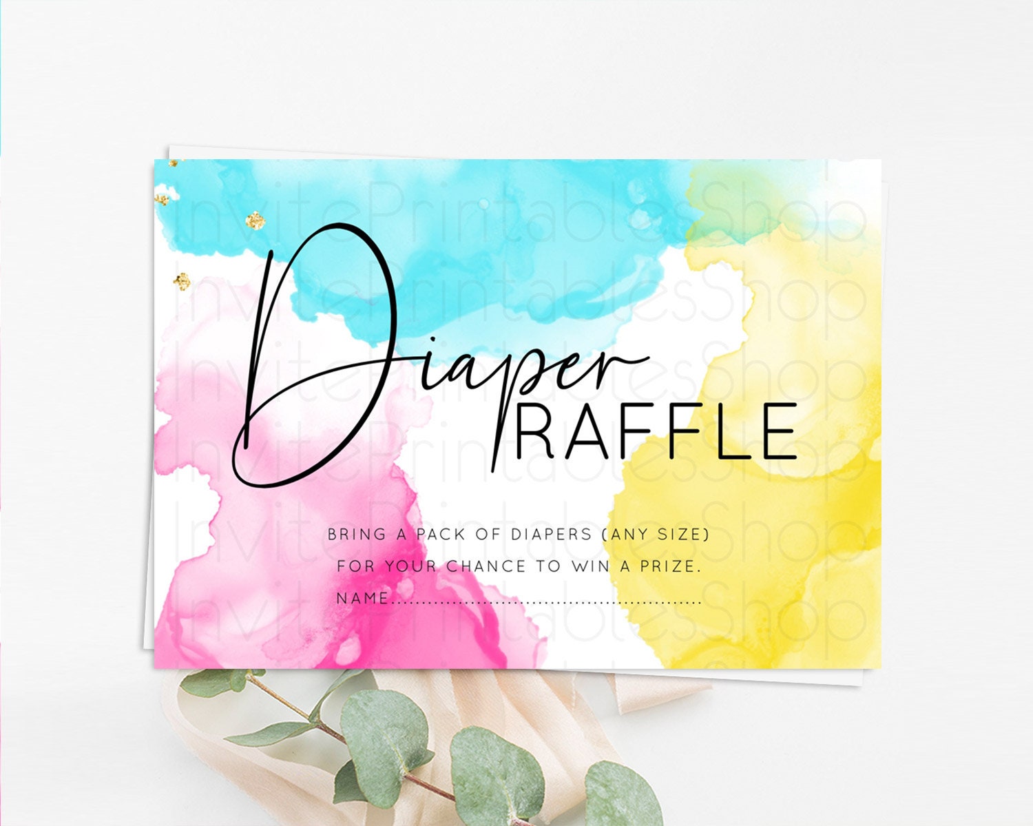 Pastel Diaper Raffle Card Pastel Rainbow Diaper Raffle Insert Colorful Ombre Watercolor Diaper Ticket Confetti Glitter Raffle Game D10898