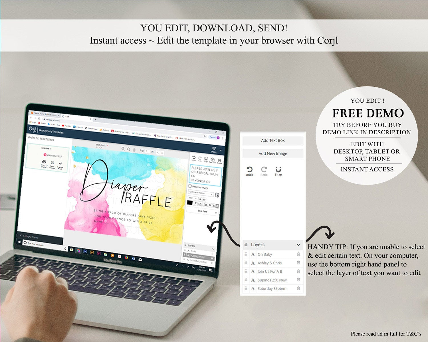 • After purchase, Corjl emails your editing link. Allow up to 15 minutes for delivery.