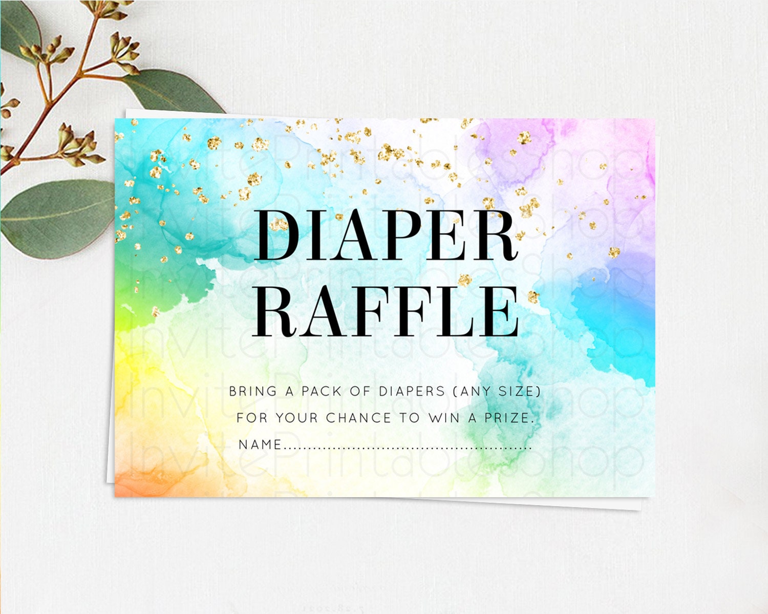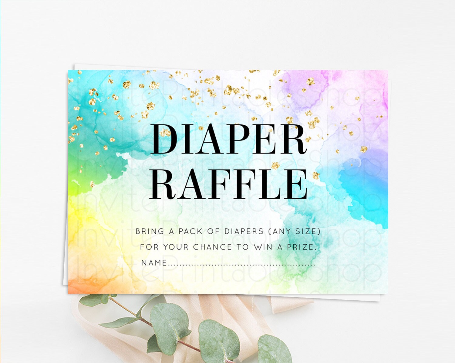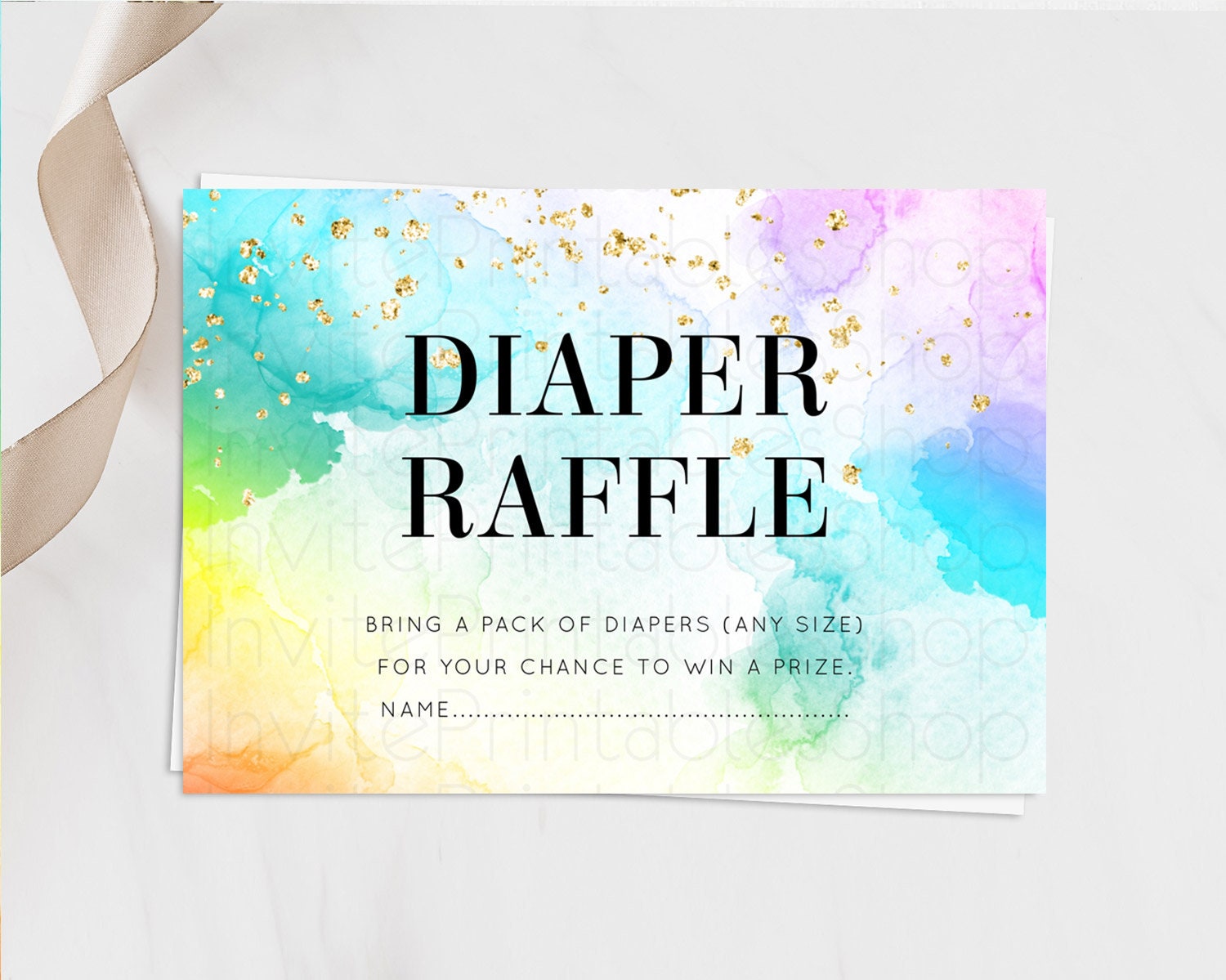 Pastel Diaper Raffle Card Pastel Rainbow Diaper Raffle Insert Colorful Ombre Watercolor Diaper Ticket Confetti Glitter Raffle Game D10961